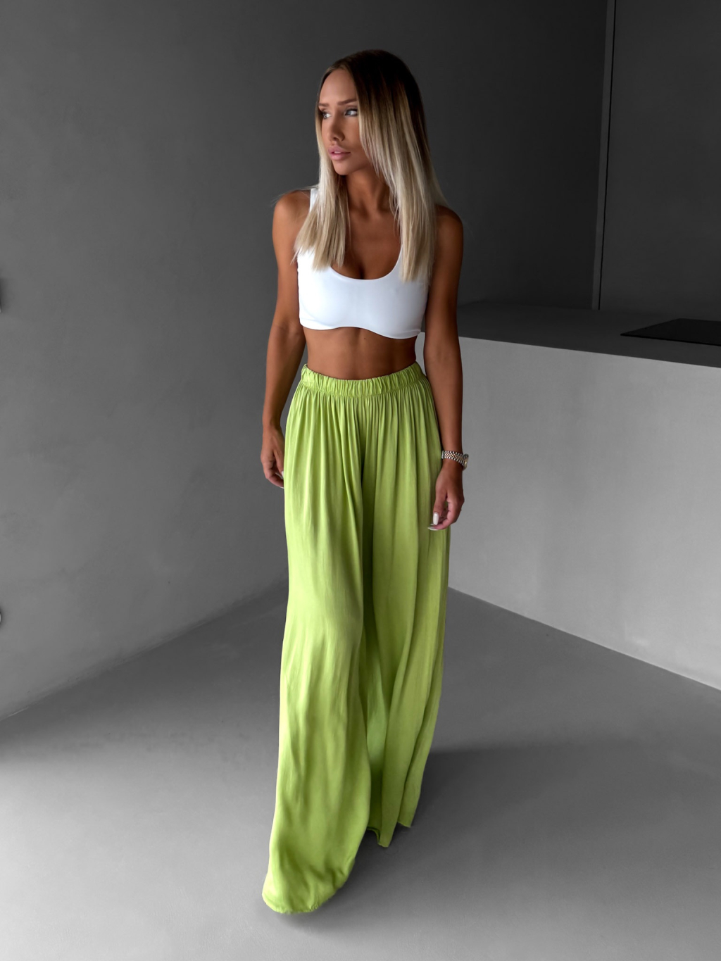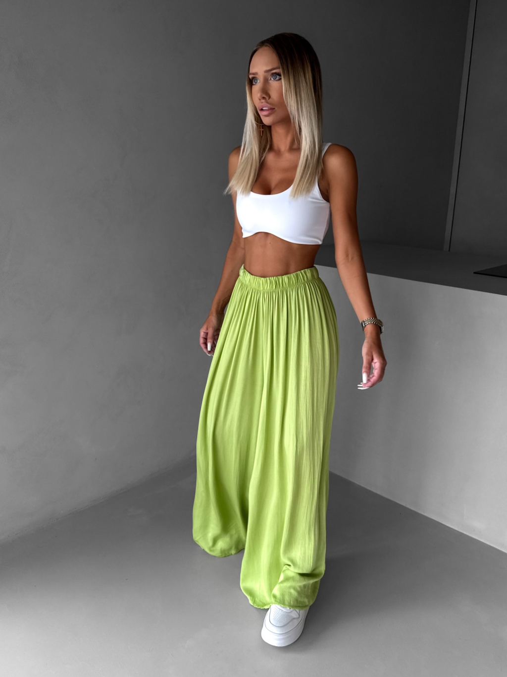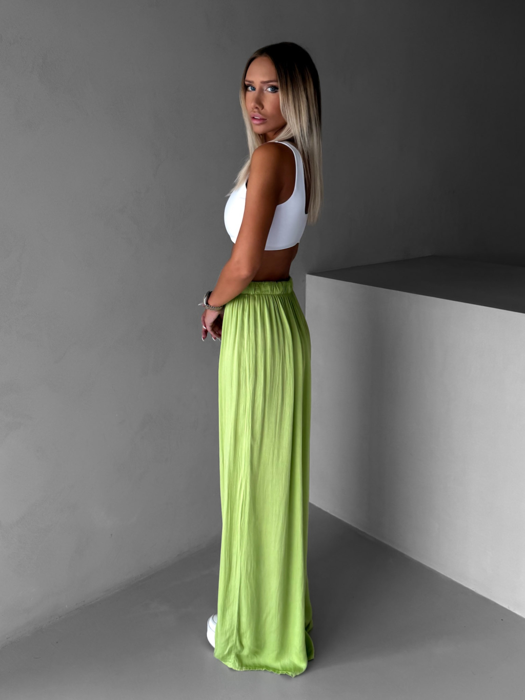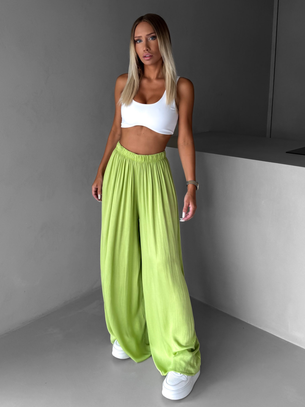 Zelené široké volné dlouhé kalhoty OLVIRA