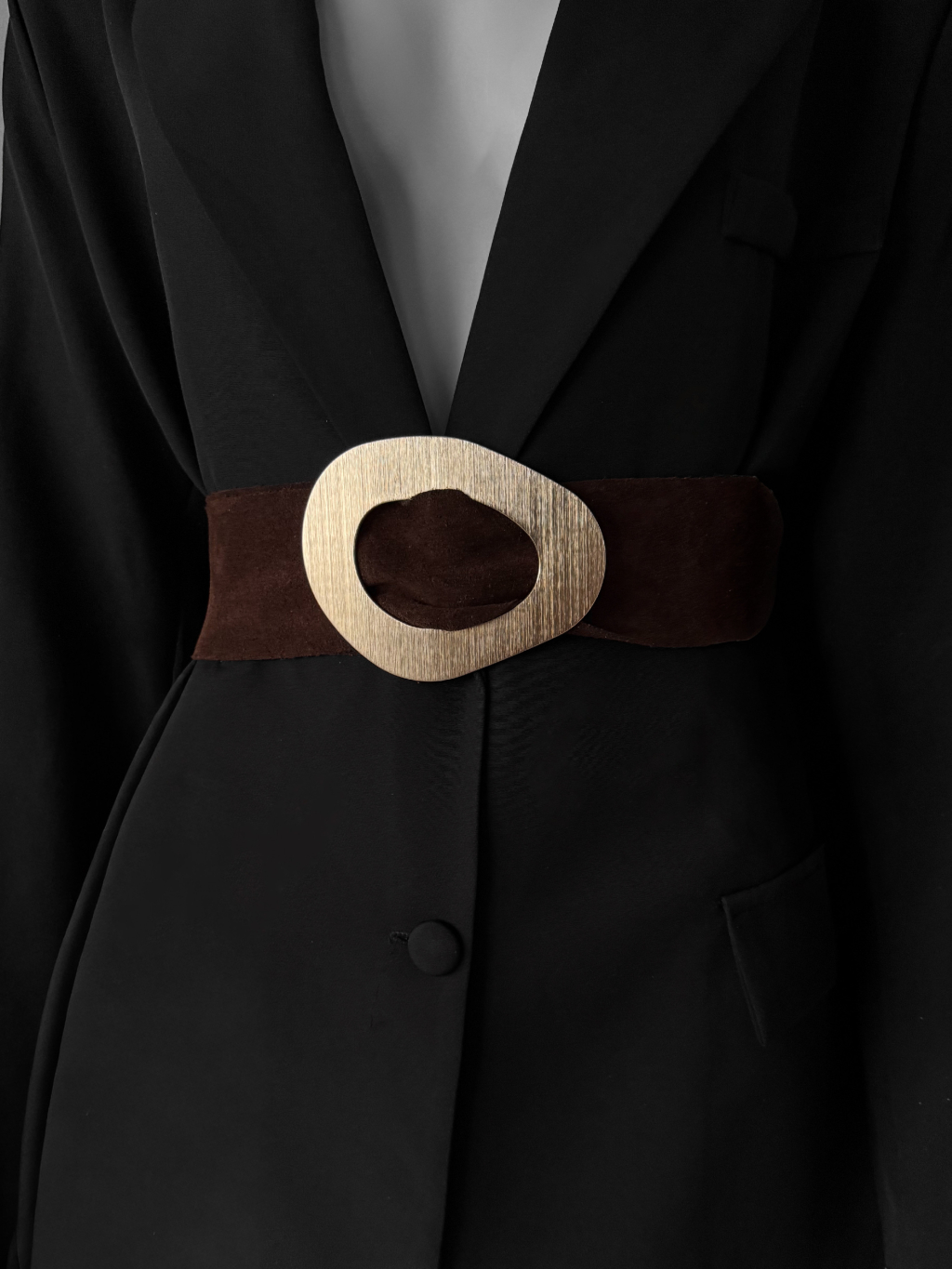 Tmavě hnědý elegantní semišový pásek XELMINA