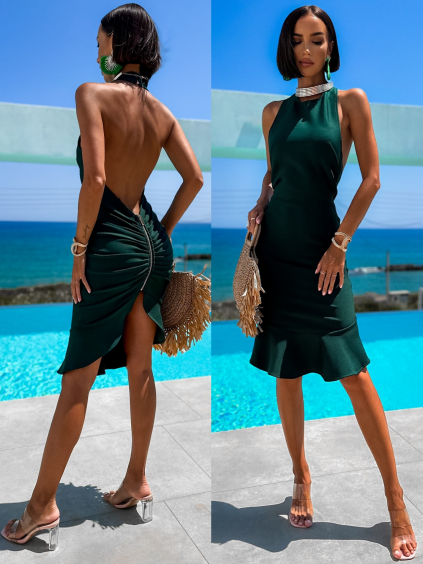 Mentolové lesklé šaty DOLOMIT s průstřihy