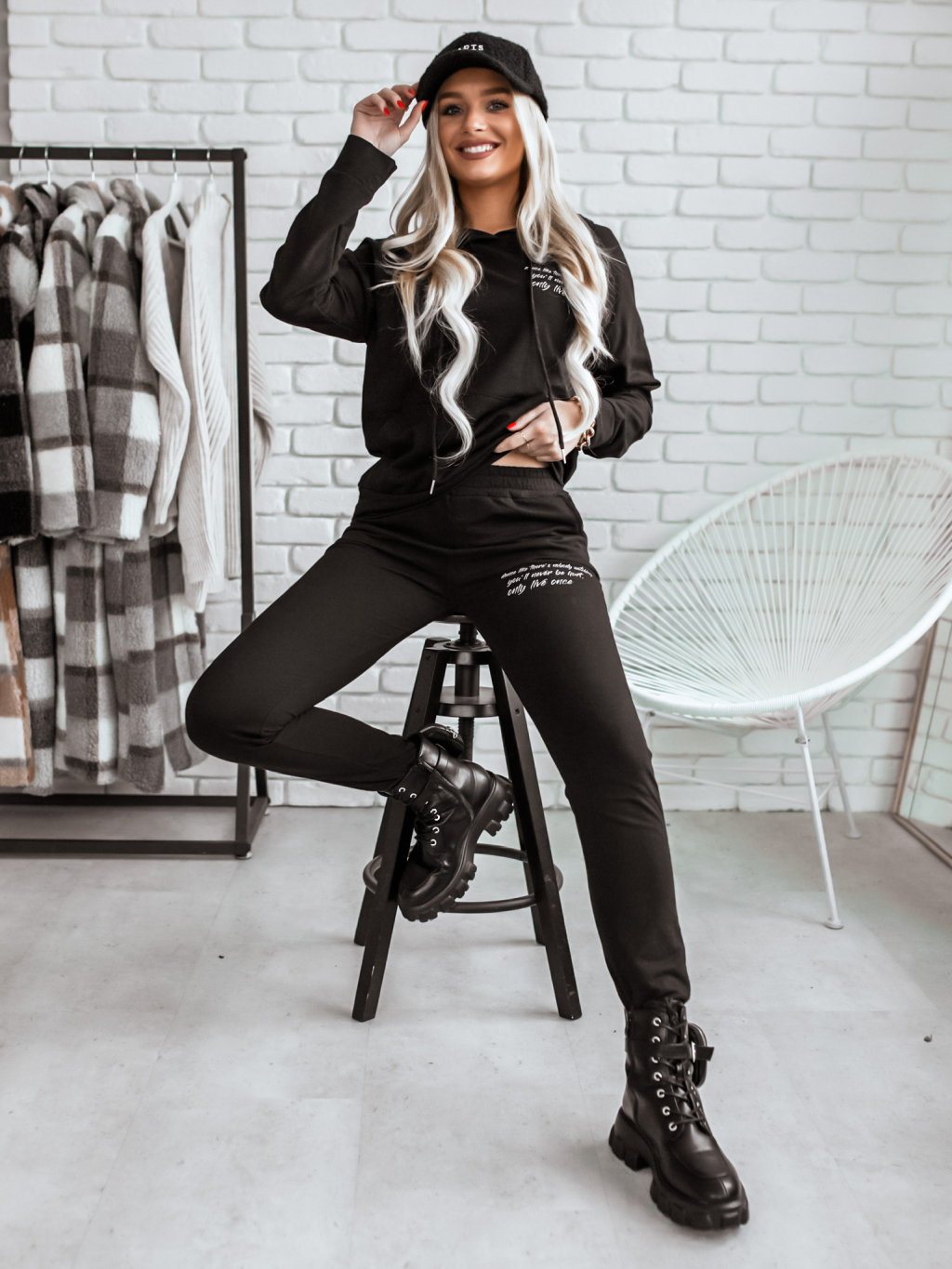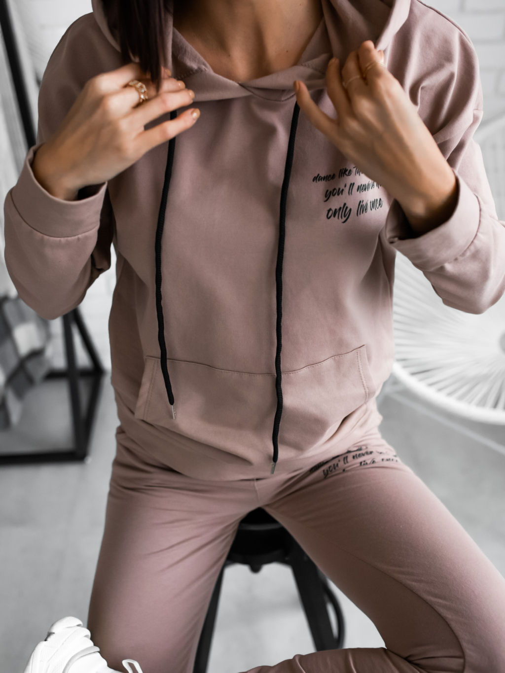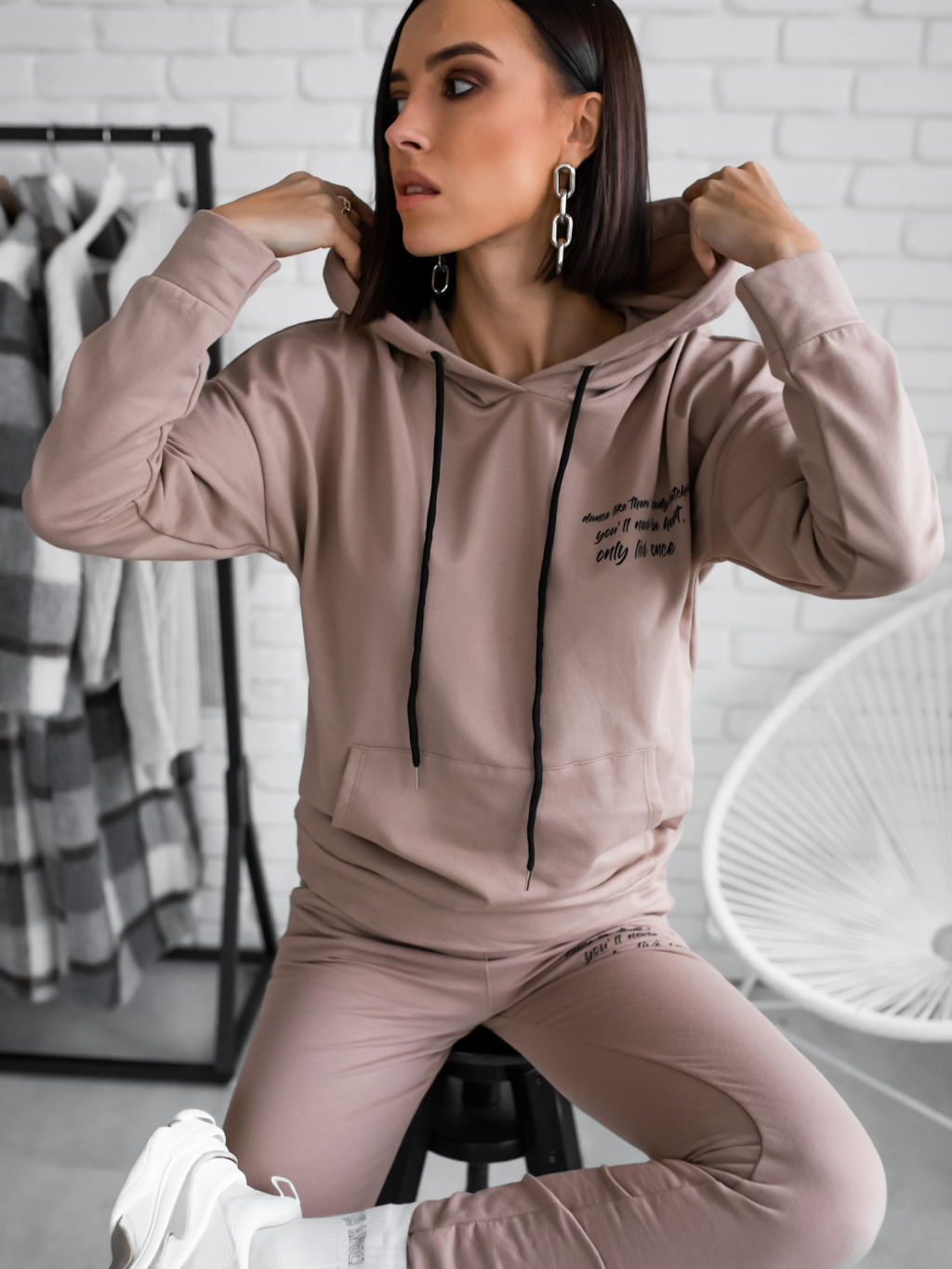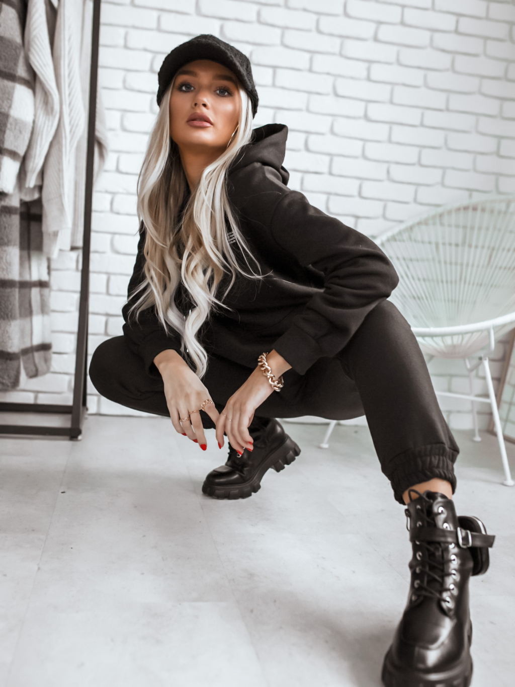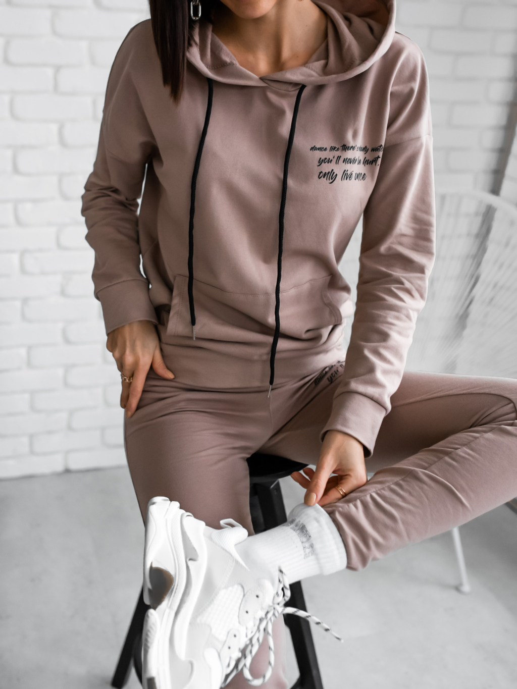 Jedná se o lehce kombinovatelný kousek, který Vám nesmí chybět v šatníku. Souprava je z kvalitního strečového materiálu, který Vám zajistí komfort a pohodlí. Pokud se budete chtít cítit maximálně sexy, tak se nebojte vzít k naší soupravě podpatky a dokonalý outfit je na světě. Její výhodou je flexibilita, kdy lze nosit kalhoty a mikinu zvlášť. Na jedinečnosti jí přidává nápis na levé straně. Skvěle se hodí ke combat boots i k teniskám, kterých máme v nabídce mnoho druhů. Teplákovou soupravu Watching jsme si pro Vás připravili ve dvou barevných variantách.