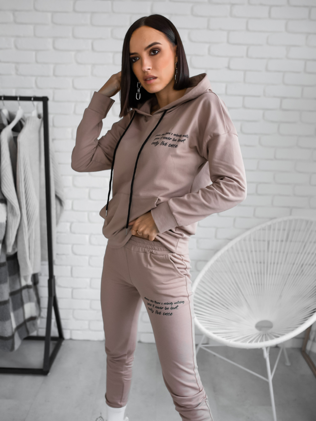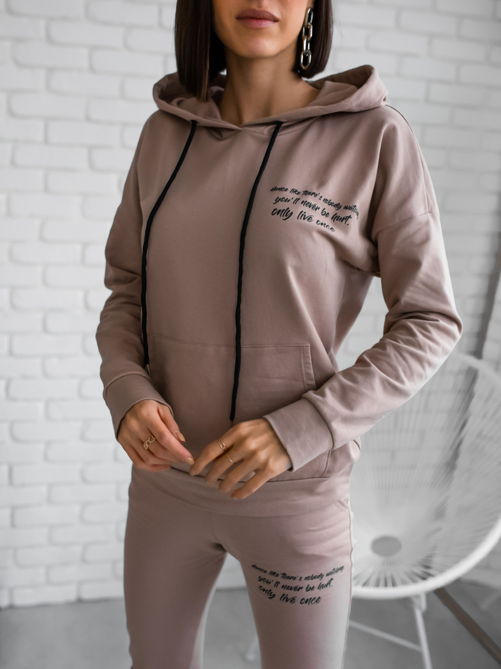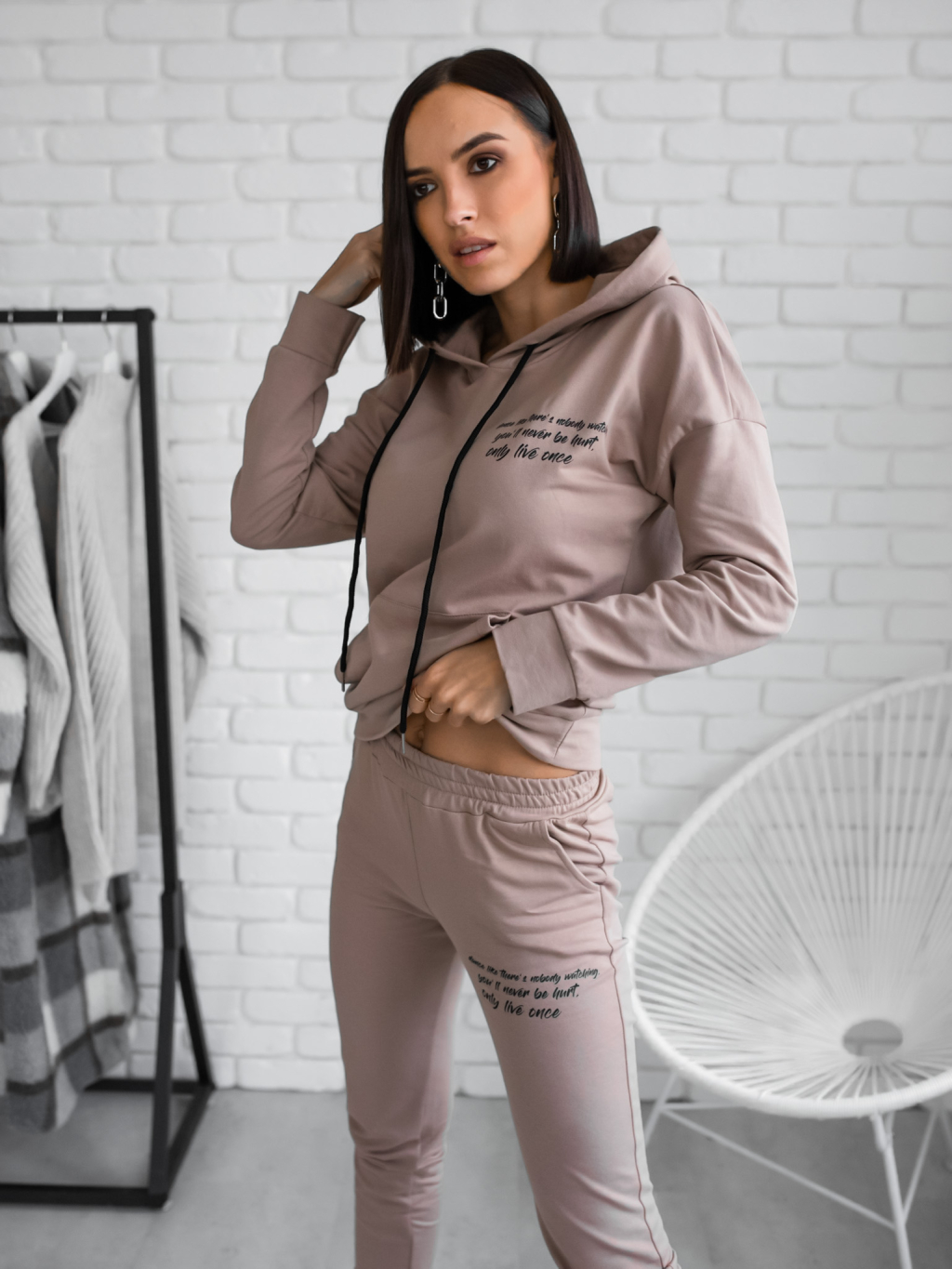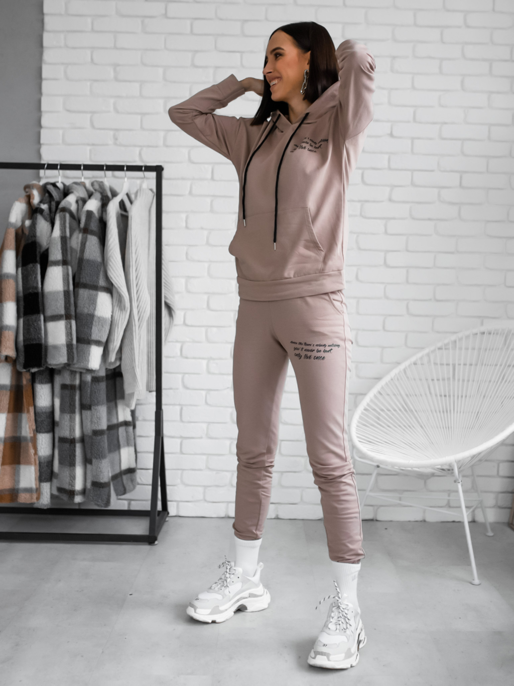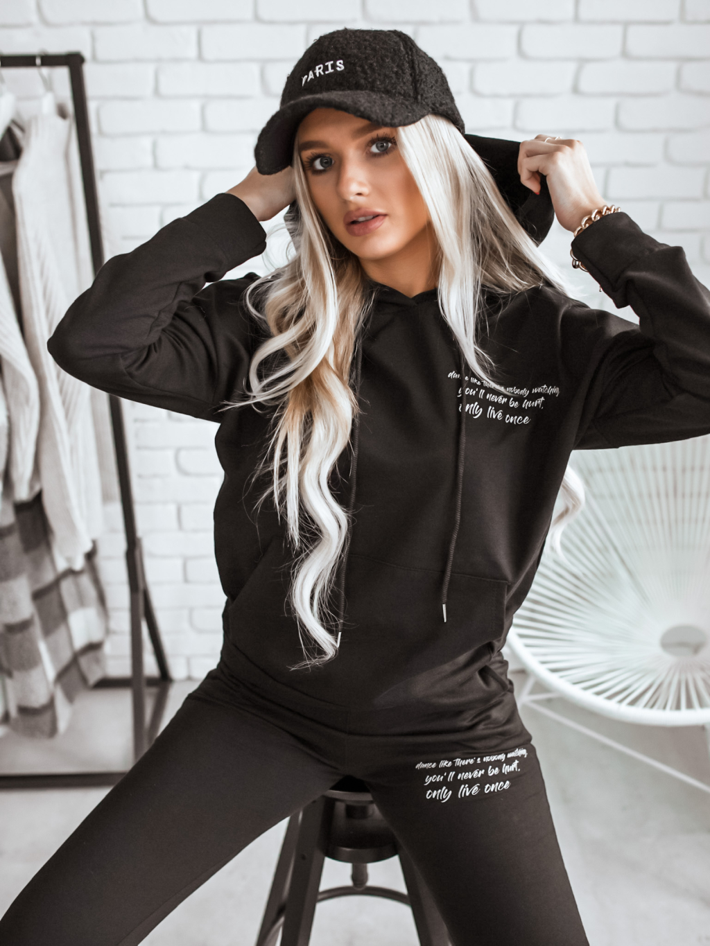 Jedná se o lehce kombinovatelný kousek, který Vám nesmí chybět v šatníku. Souprava je z kvalitního strečového materiálu, který Vám zajistí komfort a pohodlí. Pokud se budete chtít cítit maximálně sexy, tak se nebojte vzít k naší soupravě podpatky a dokonalý outfit je na světě. Její výhodou je flexibilita, kdy lze nosit kalhoty a mikinu zvlášť. Na jedinečnosti jí přidává nápis na levé straně. Skvěle se hodí ke combat boots i k teniskám, kterých máme v nabídce mnoho druhů. Teplákovou soupravu Watching jsme si pro Vás připravili ve dvou barevných variantách.