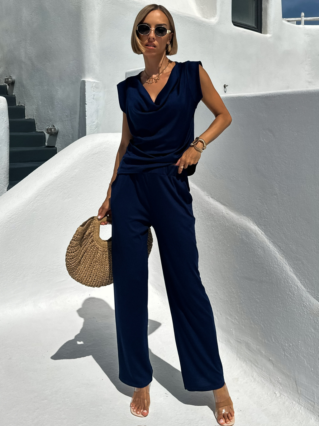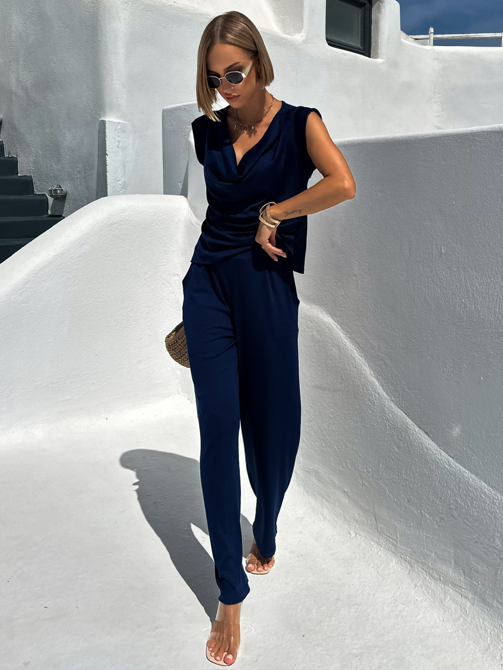Tmavě modrý kalhotový elastický komplet s topem DITMAR