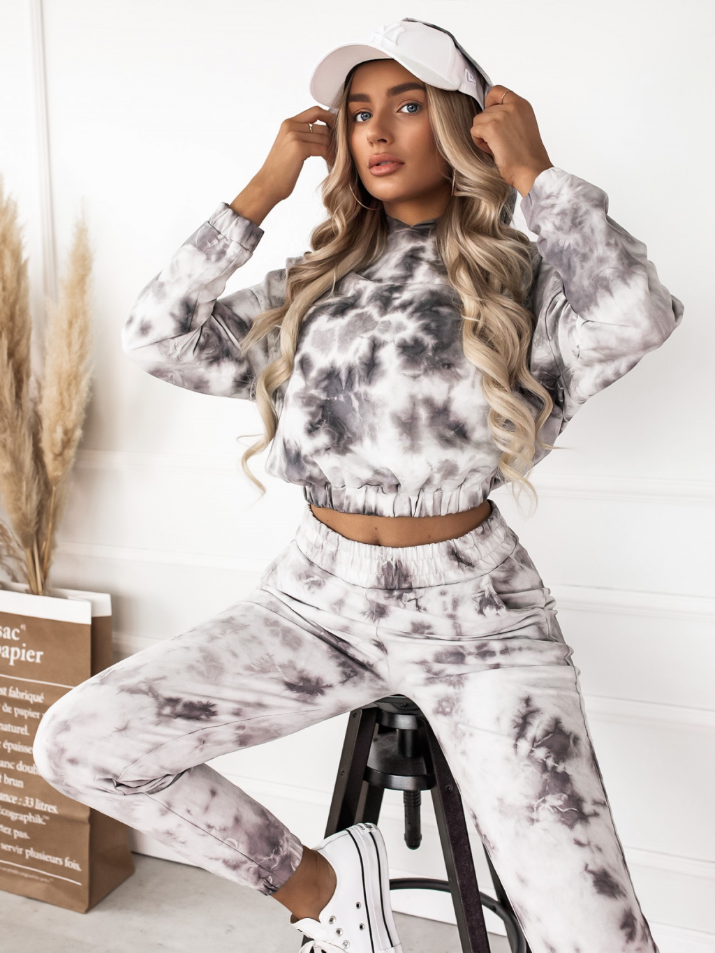 Batikovaná bavlněná souprava FLINT šedá
