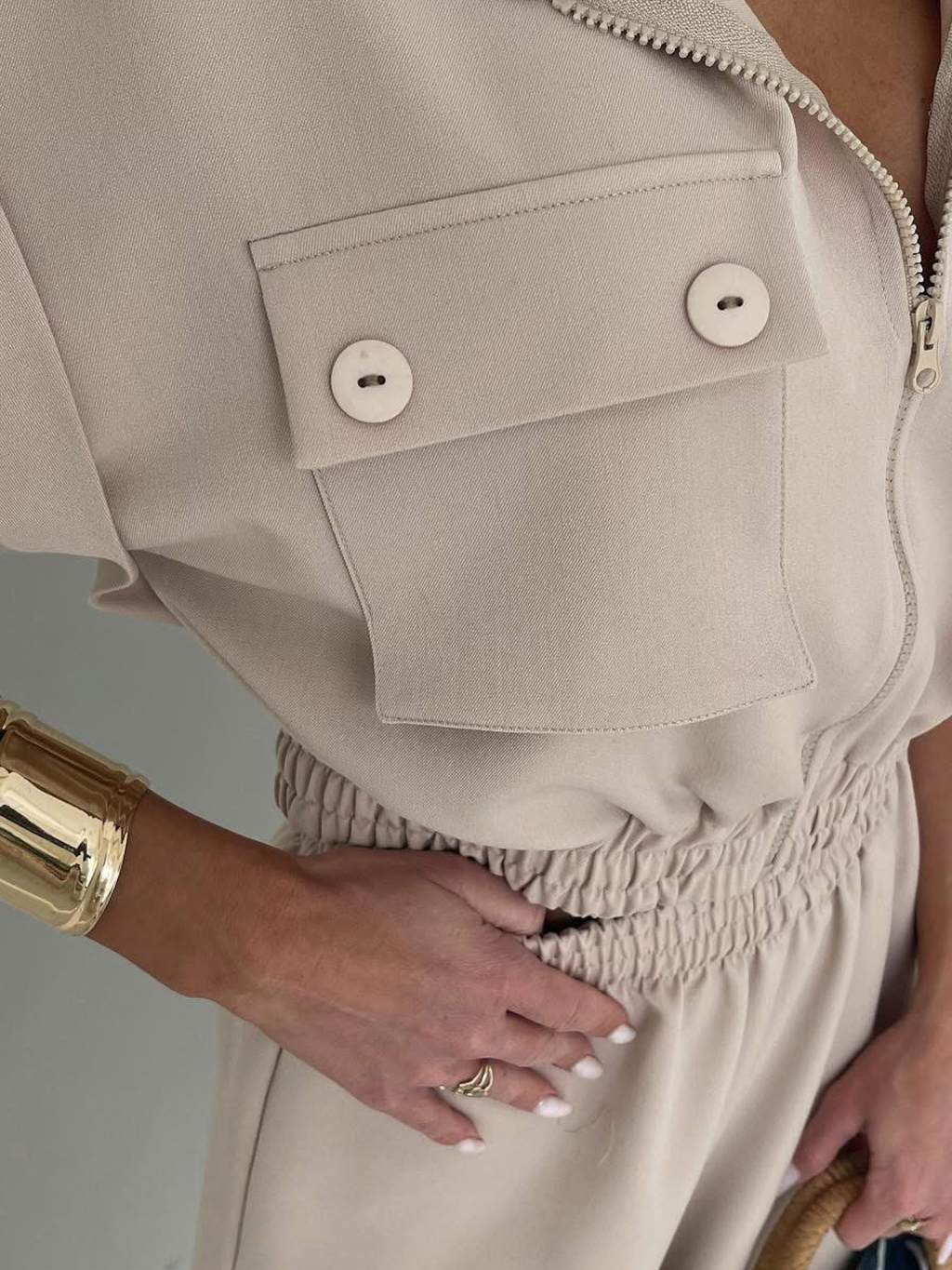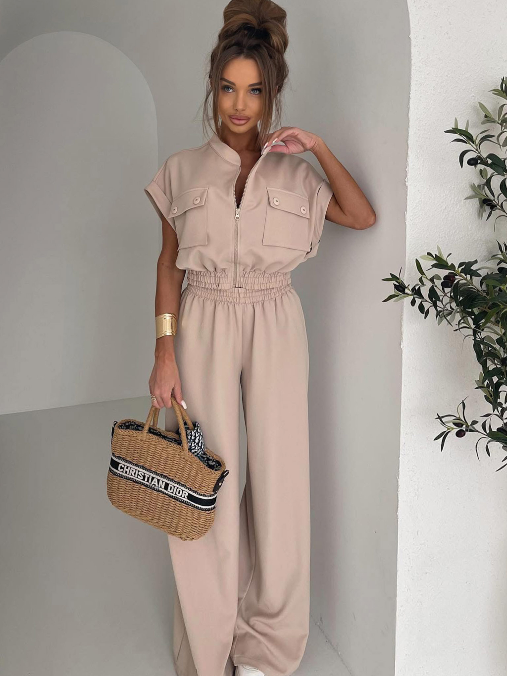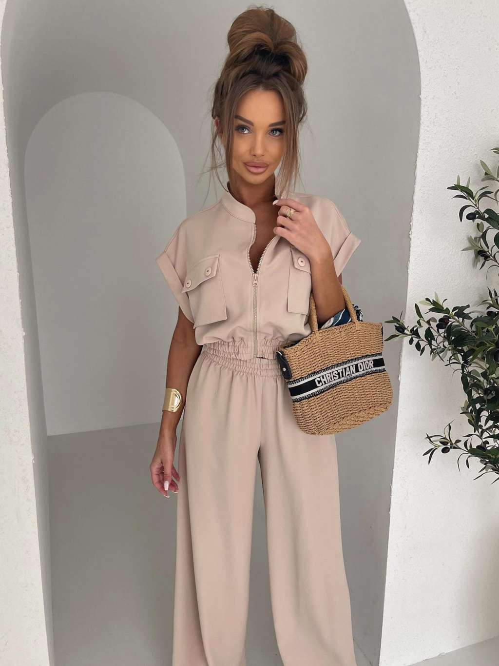 Béžový luxusní kalhotový komplet BILLOW