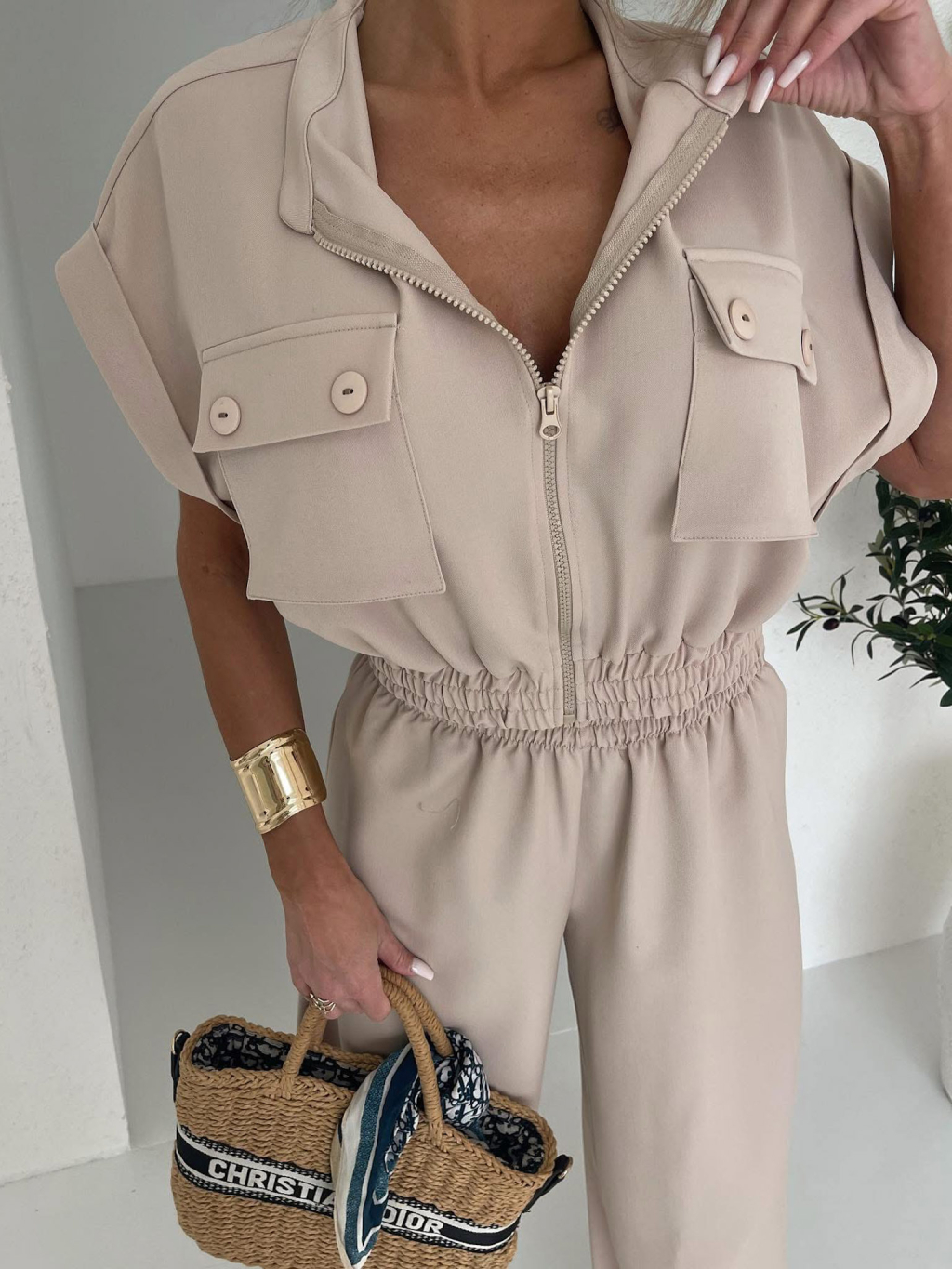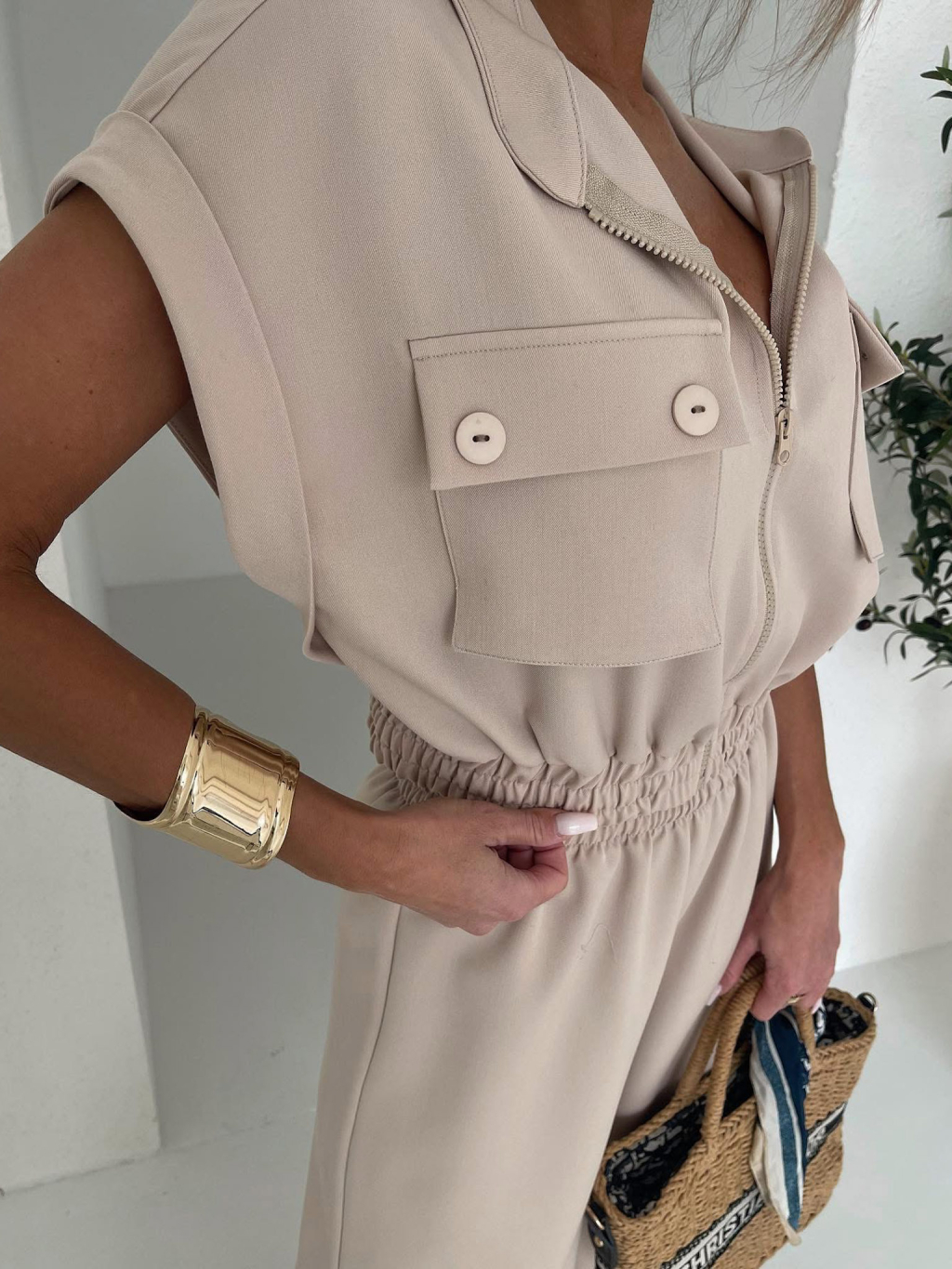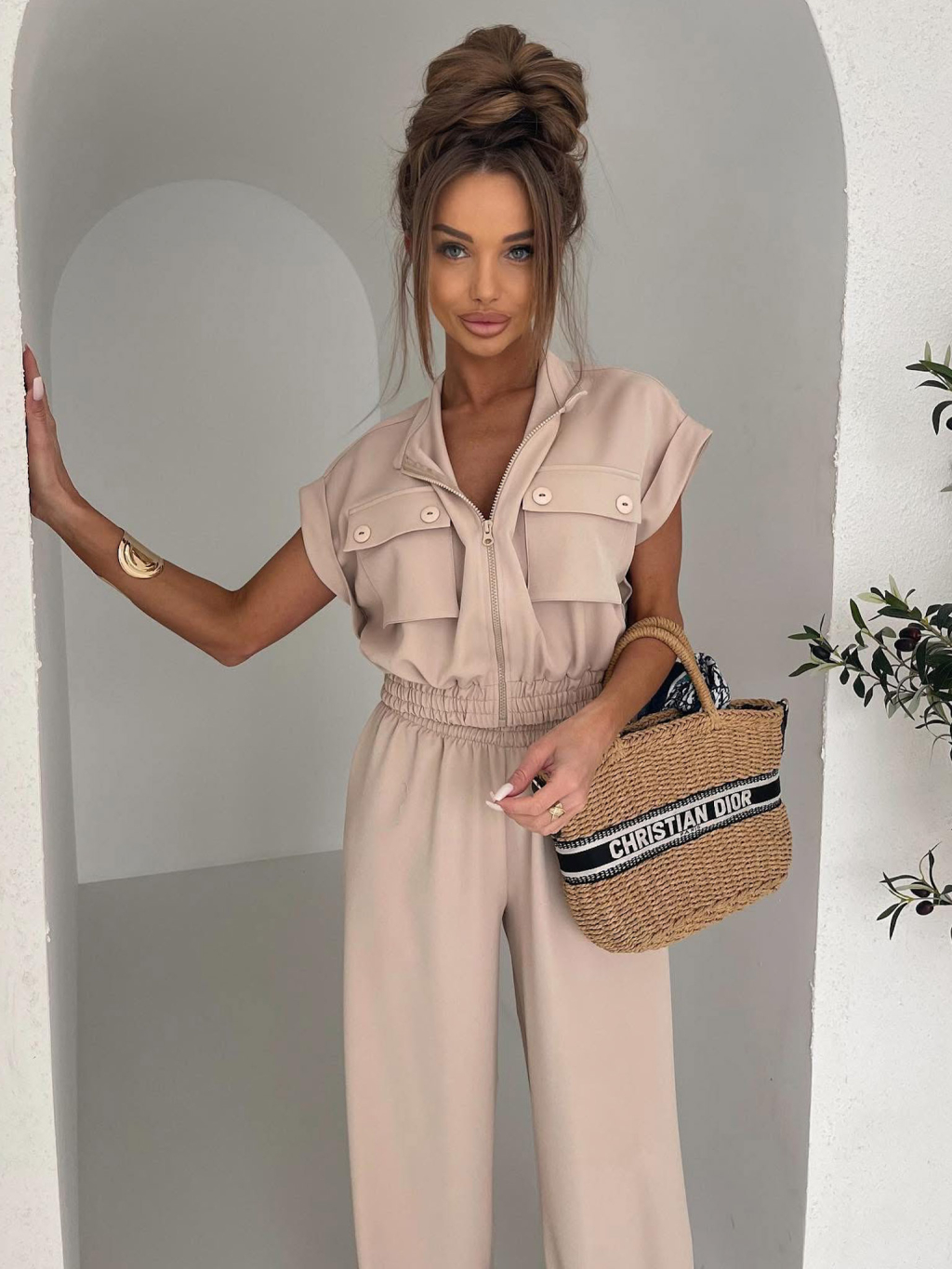 Béžový luxusní kalhotový komplet BILLOW