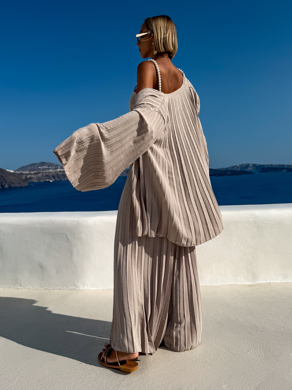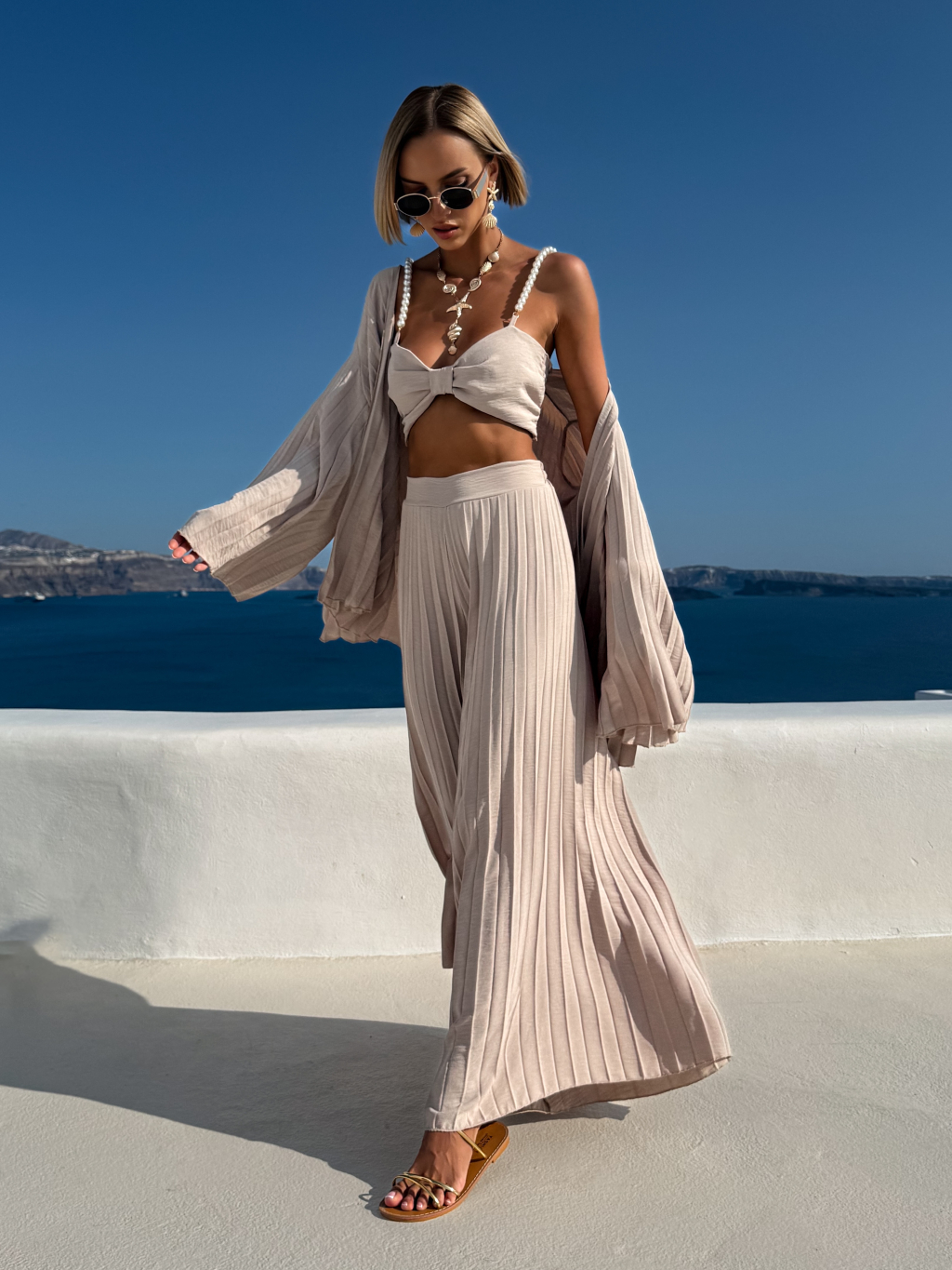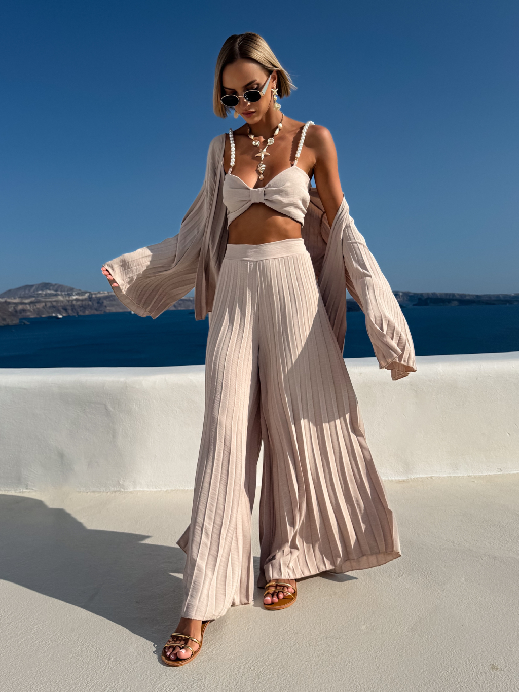 Béžový plisovaný vzdušný komplet MERYSE