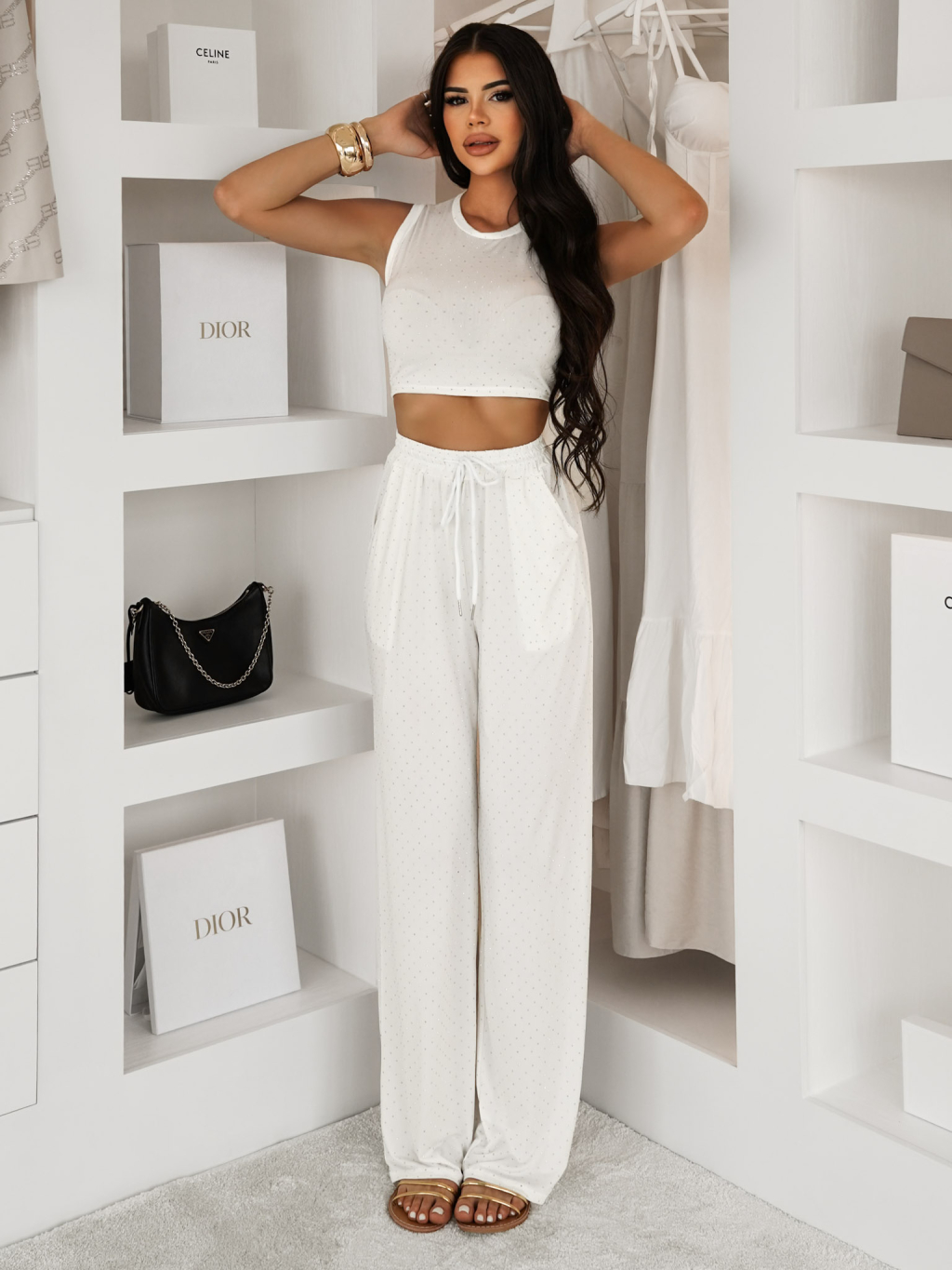 Bílý kalhotový komplet KRAVÉTH s kamínky