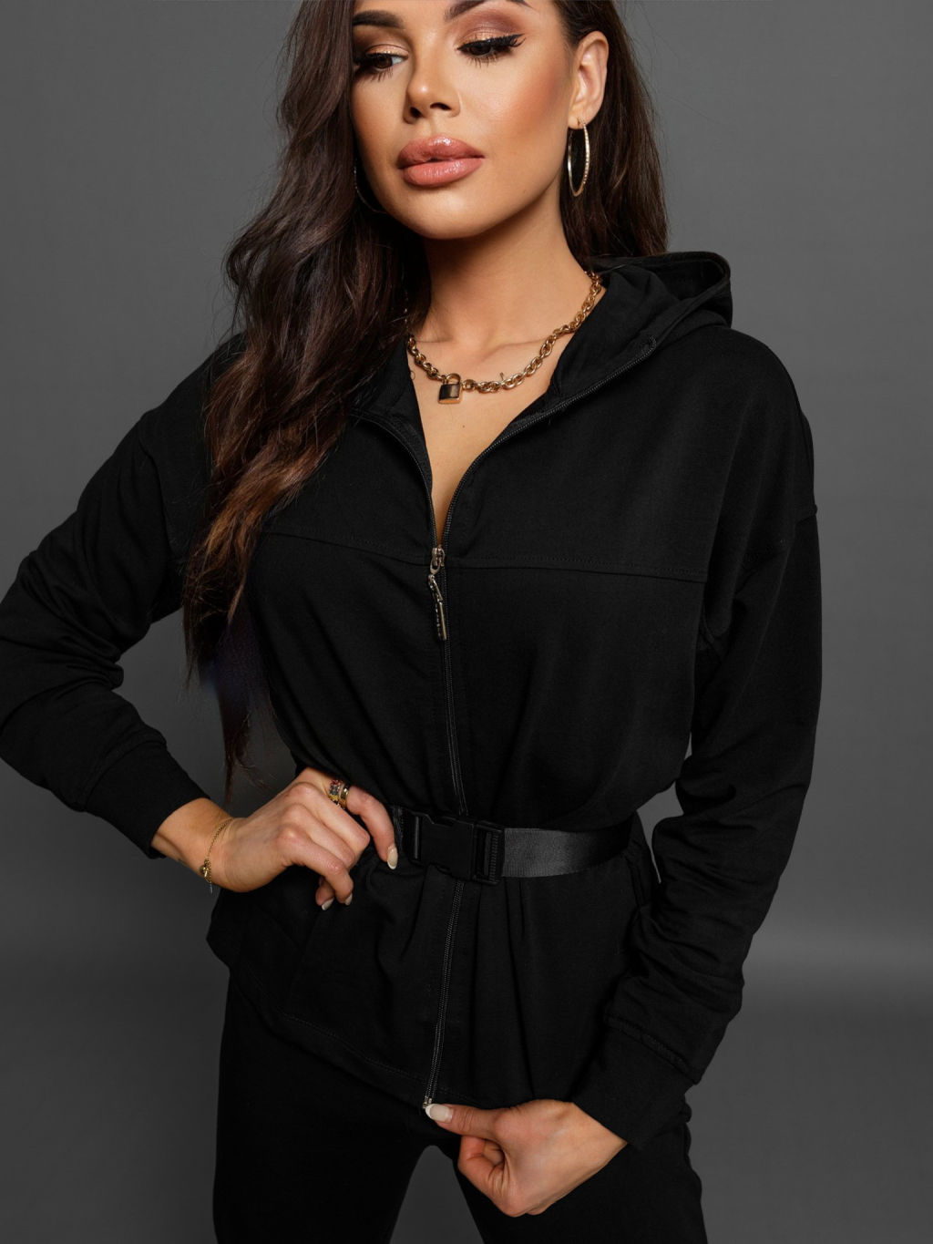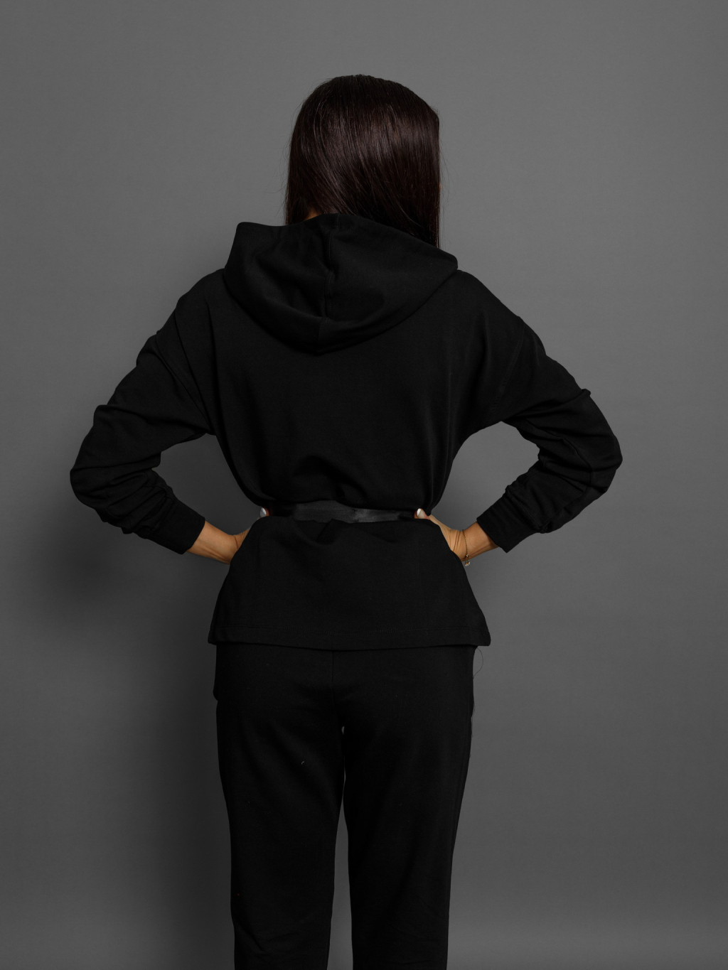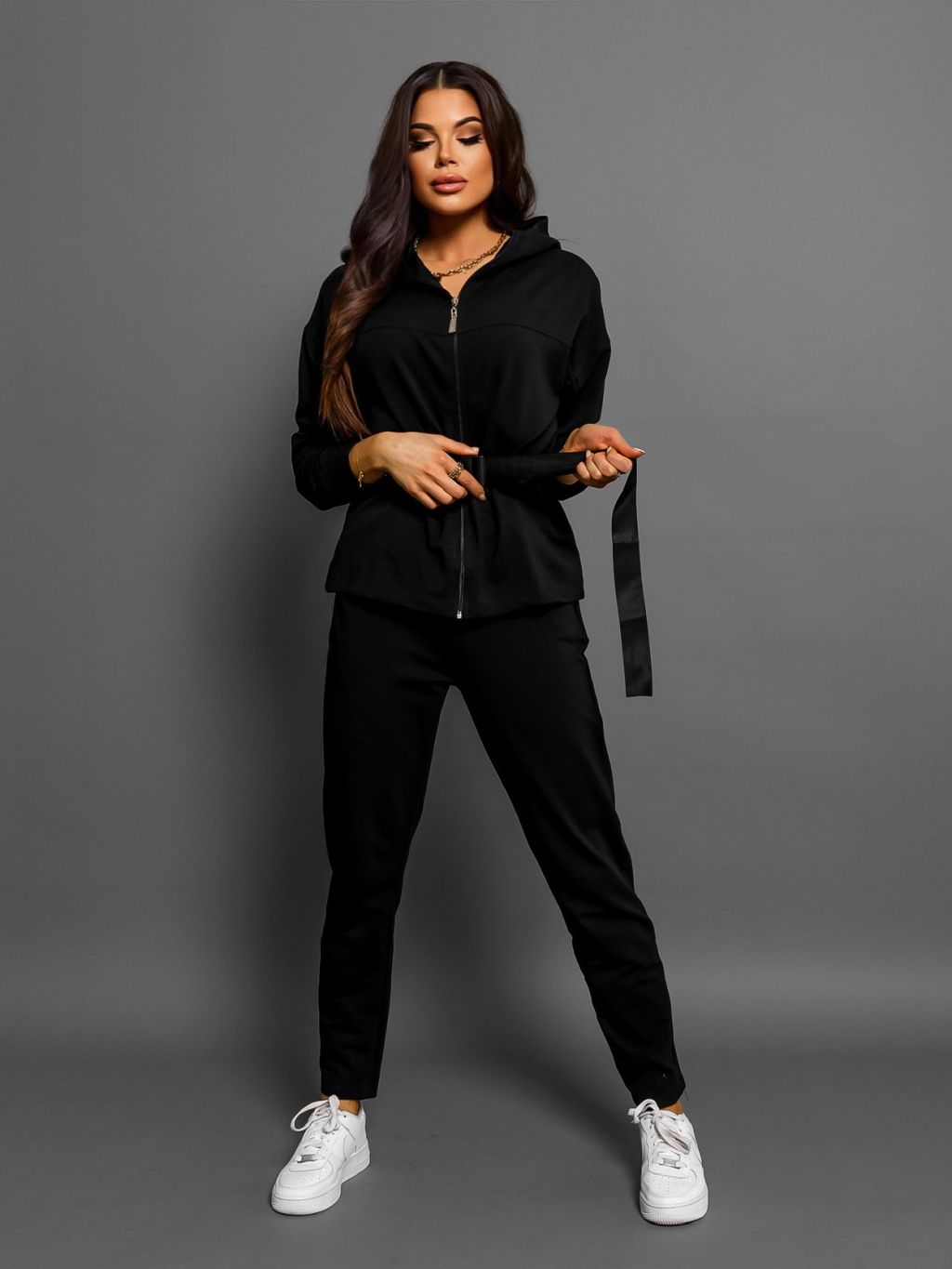 Černá tepláková souprava FANNIE se stahovacím páskem