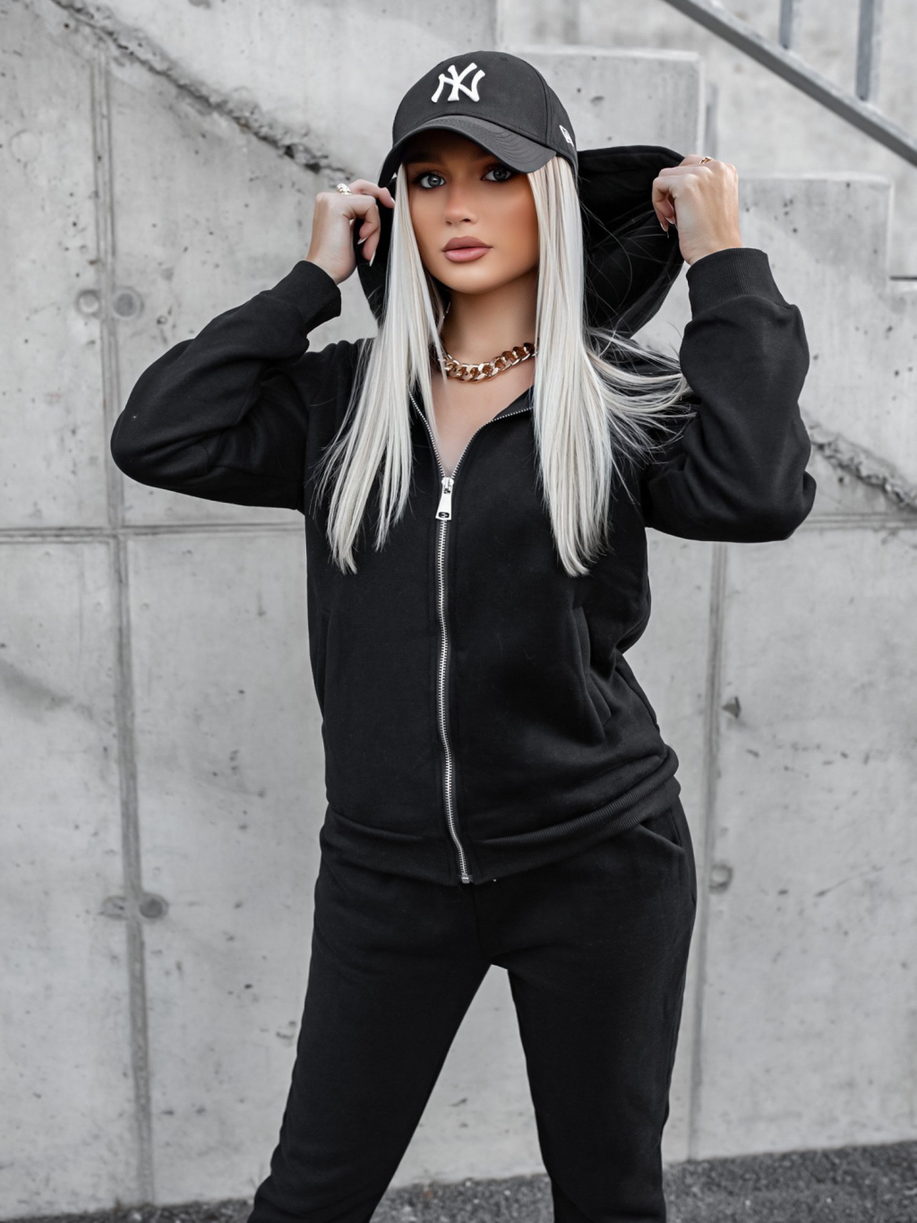 Součástí soupravy je vesta, mikina a tepláky.