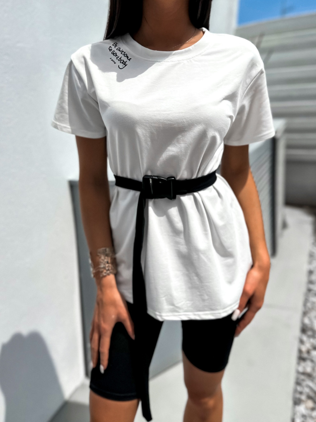 Černobílý dvoudílný komplet AWESOME s páskem