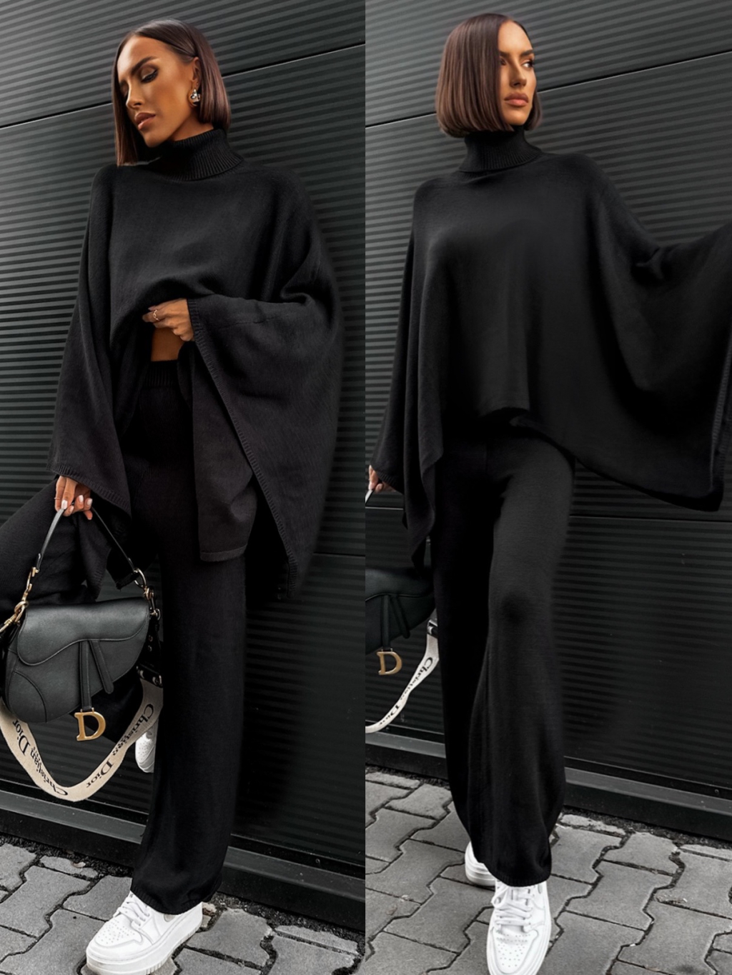 Černý dvoudílný svetrový komplet DORUK