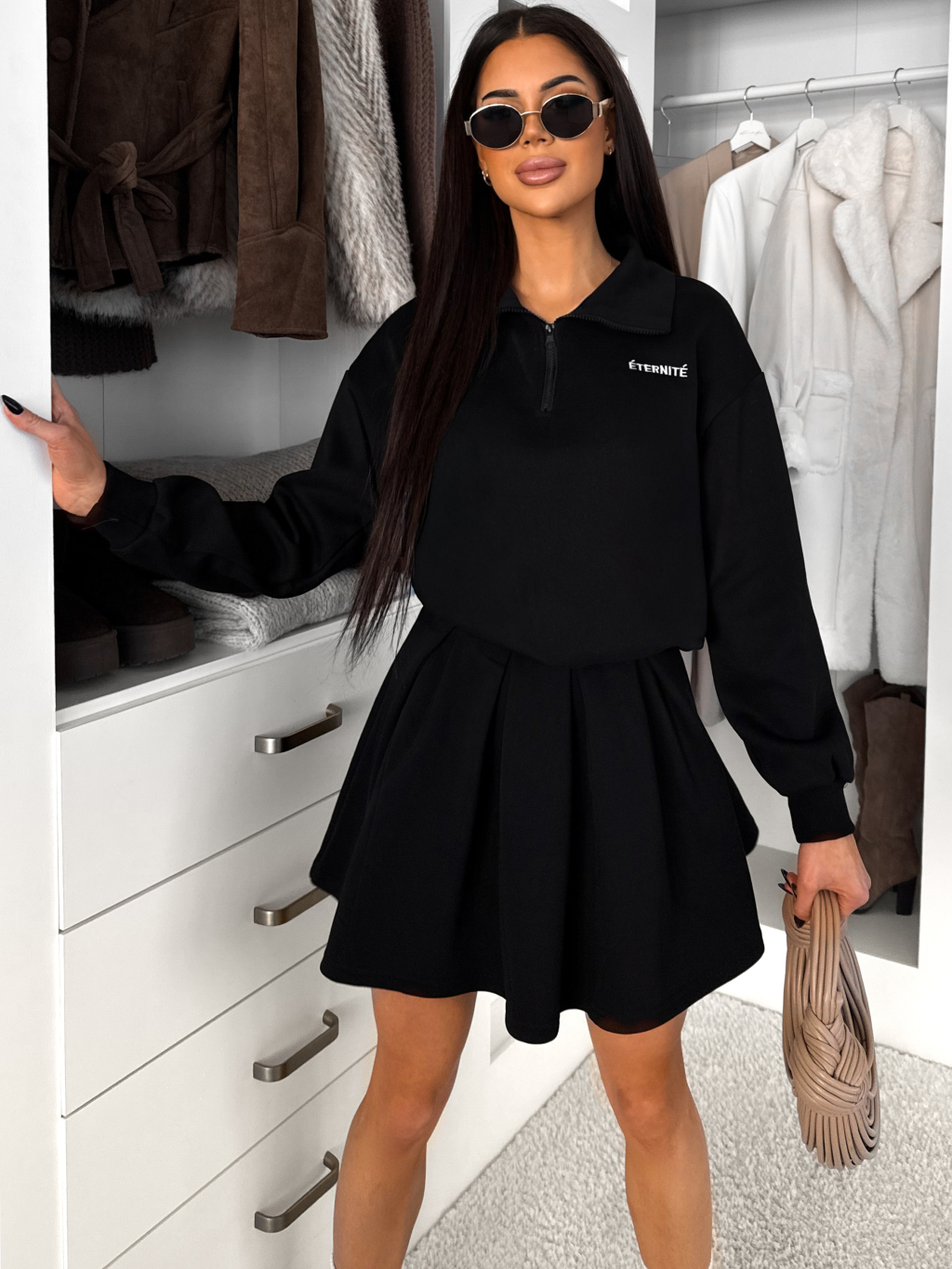 Černý teplákový komplet LUNIVON se sukní