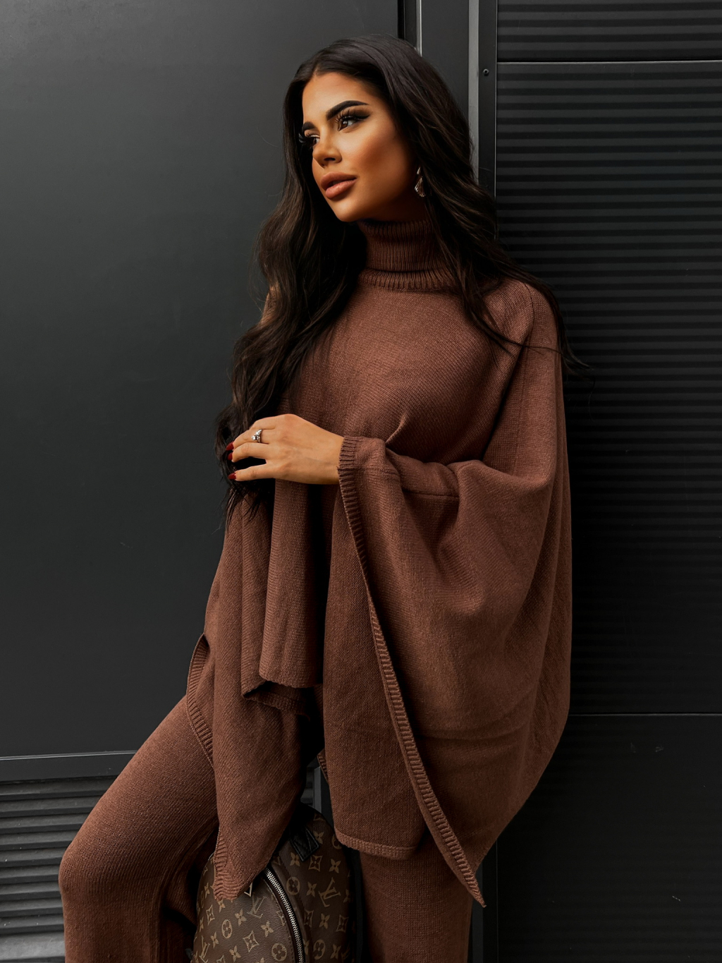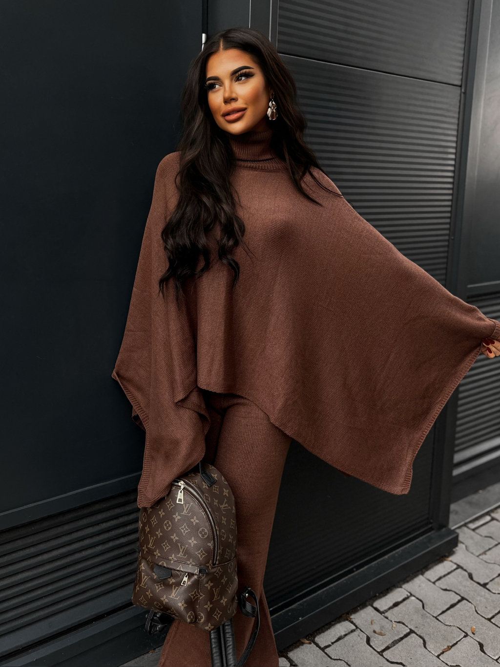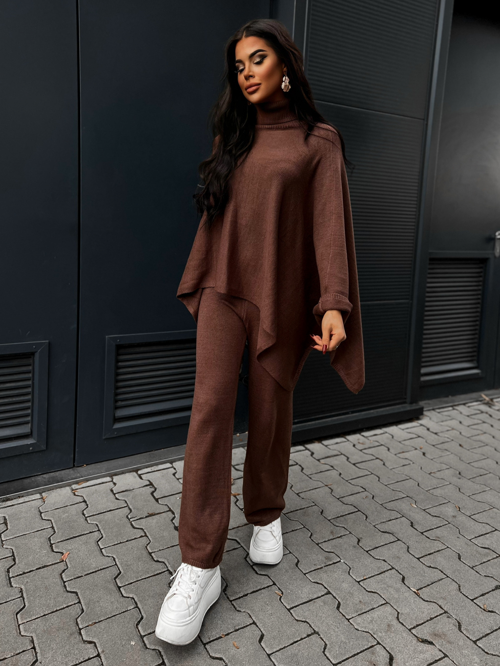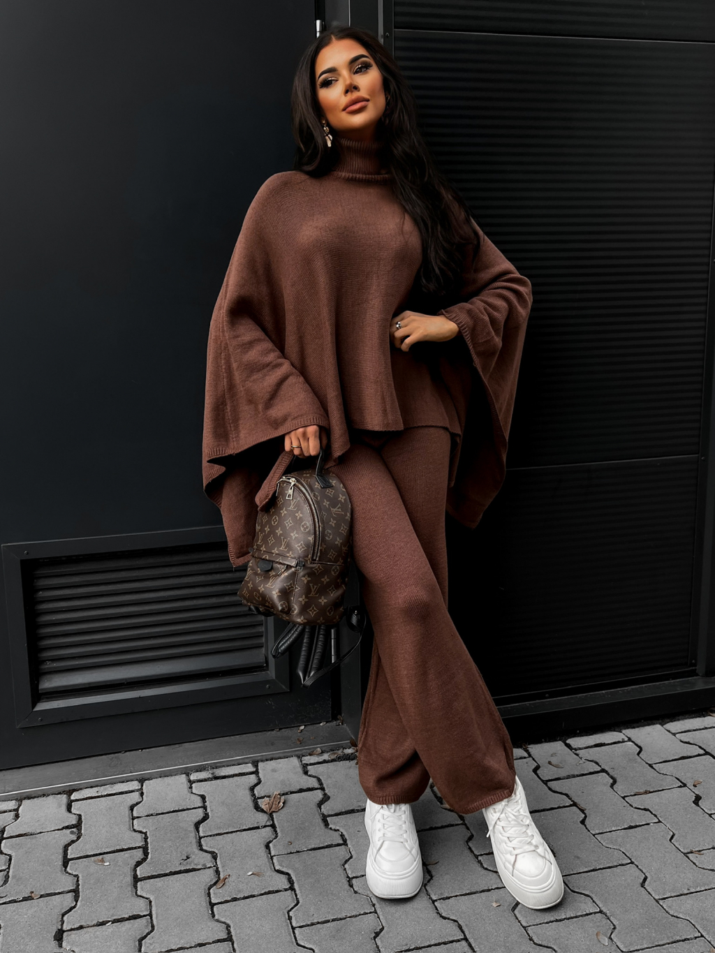 Hnědý dvoudílný svetrový komplet DORUK