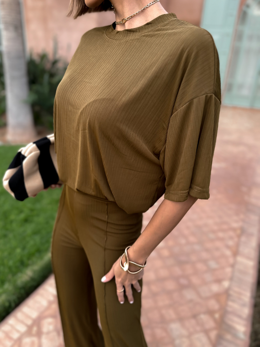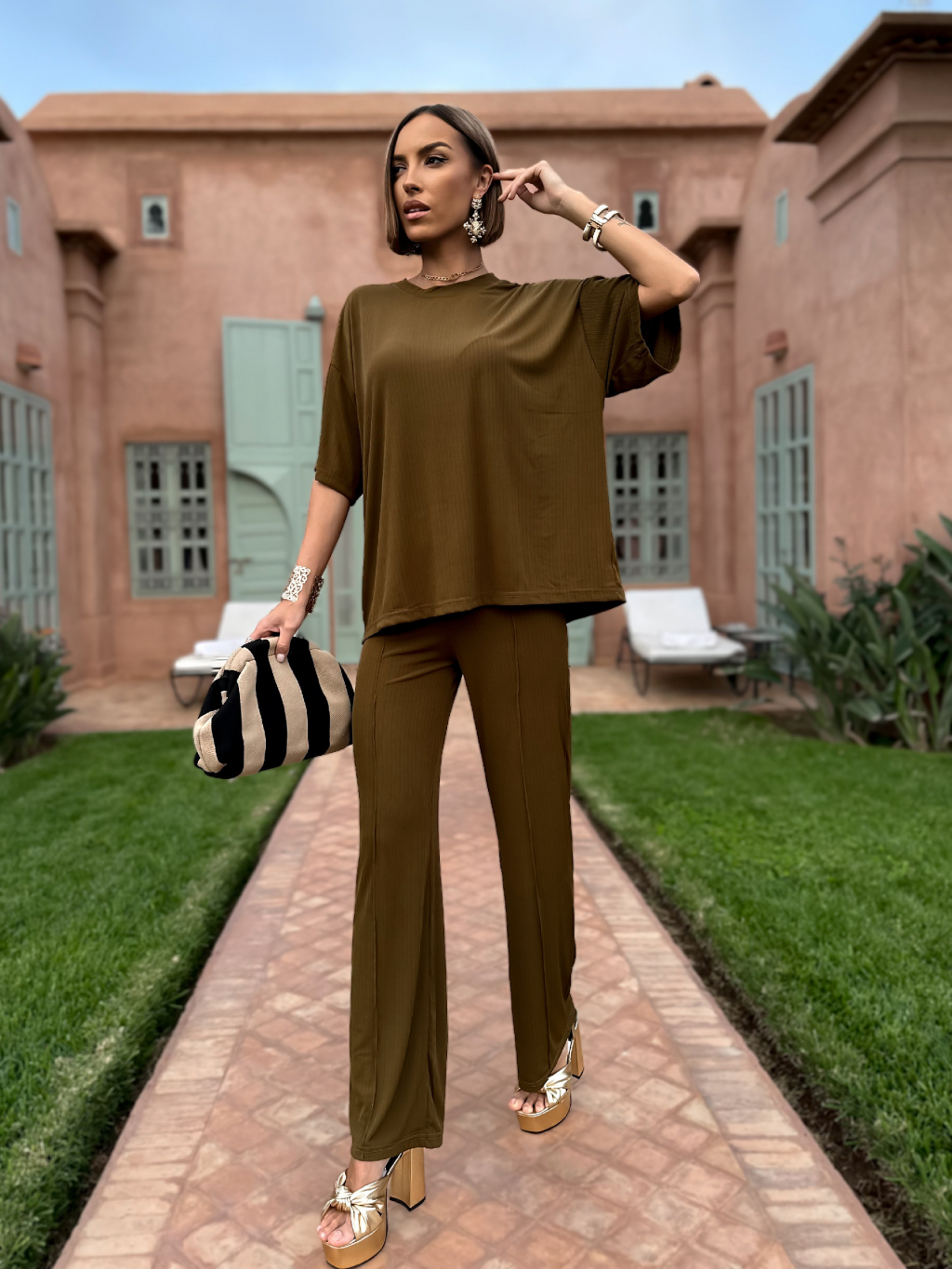 Hnědý pohodlný kalhotový komplet NICHOLE