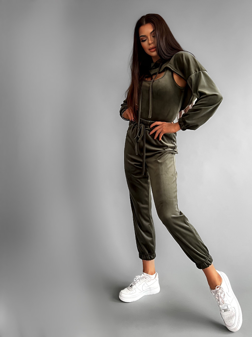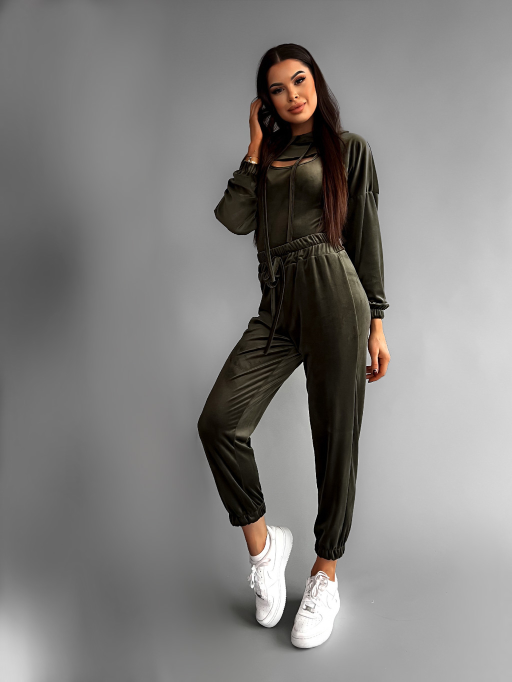 Khaki semišová trojdílná tepláková souprava TRIUMPH