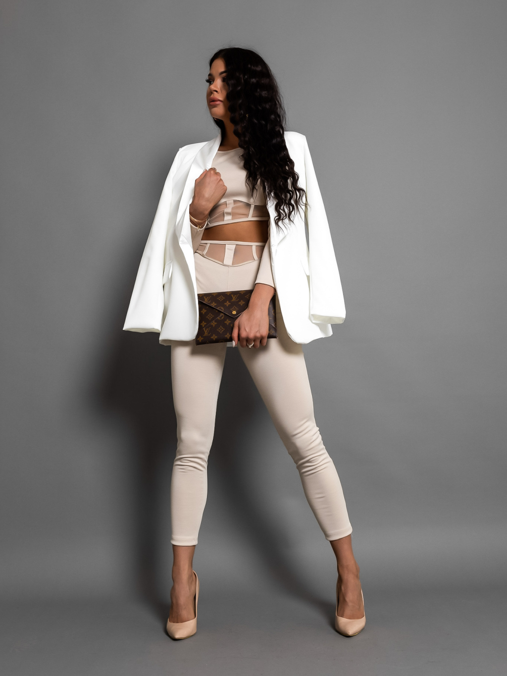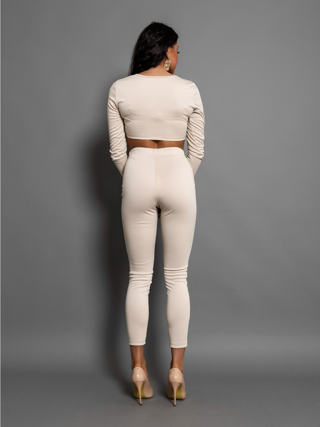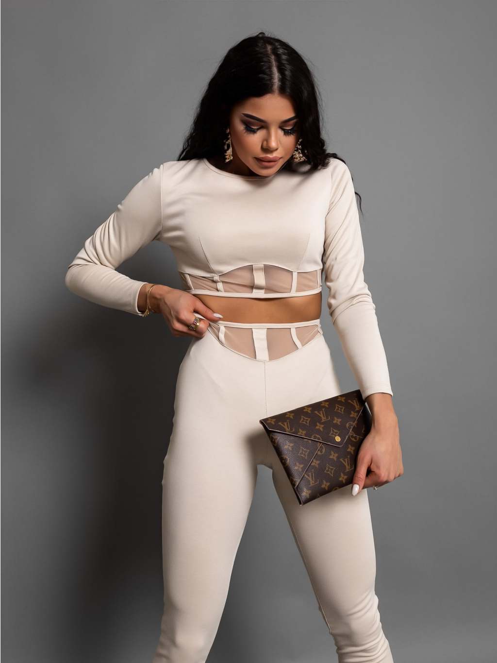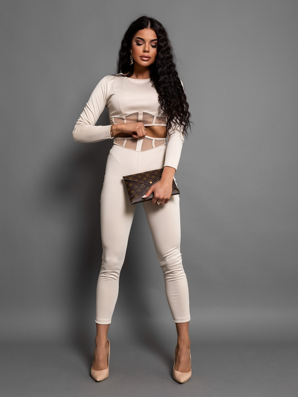Krémový dvoudílný komplet LISBETH s dlouhým rukávem
