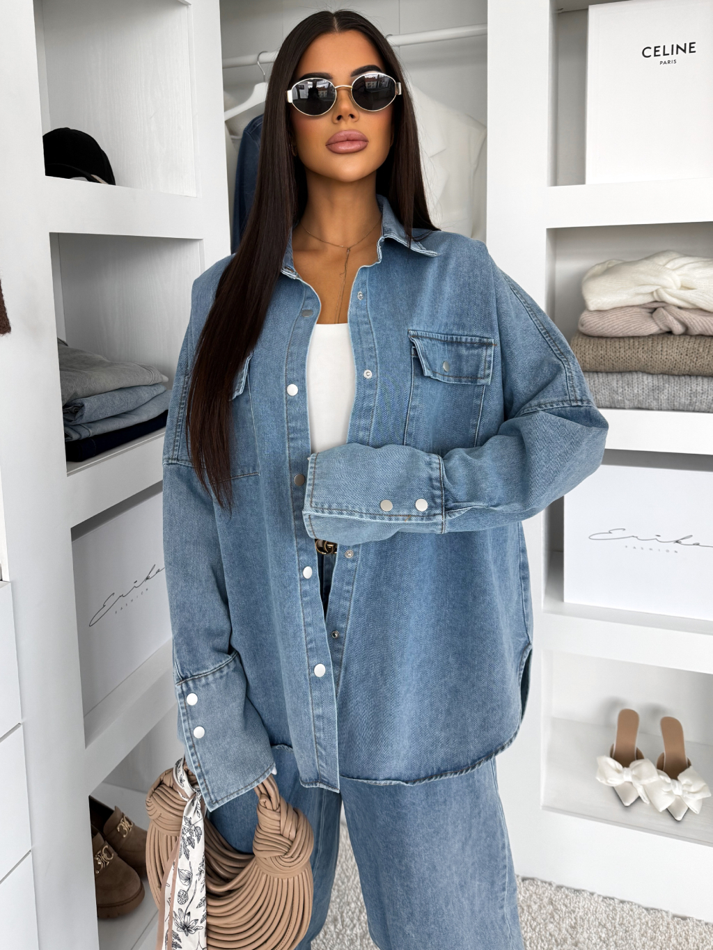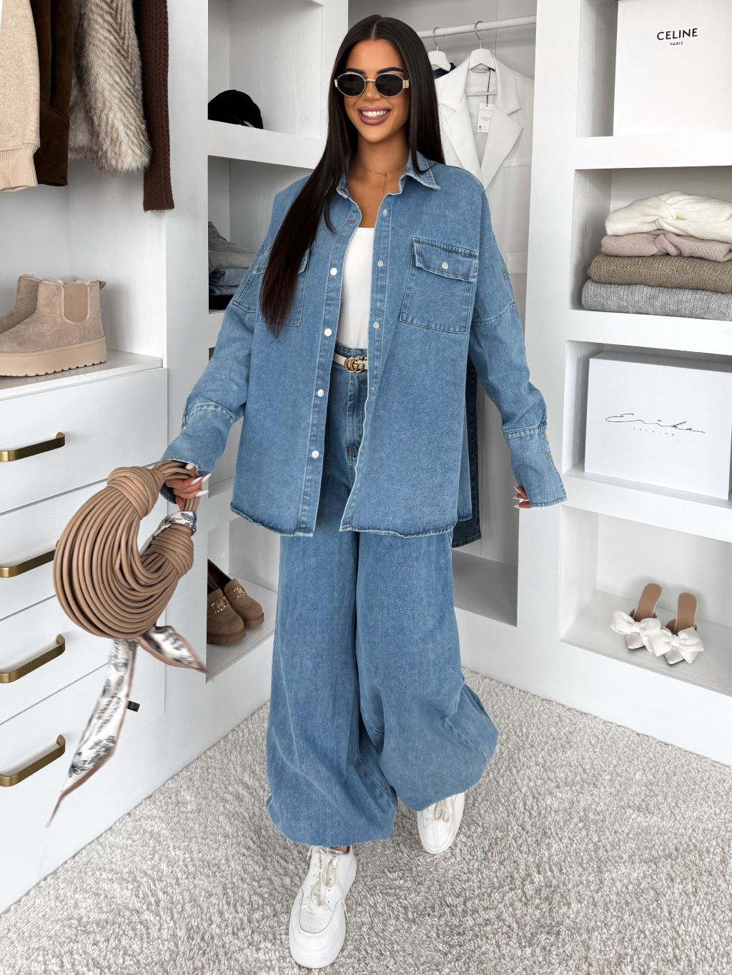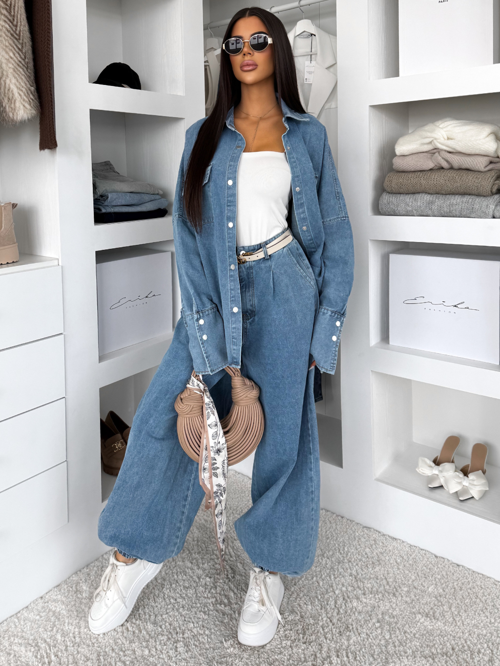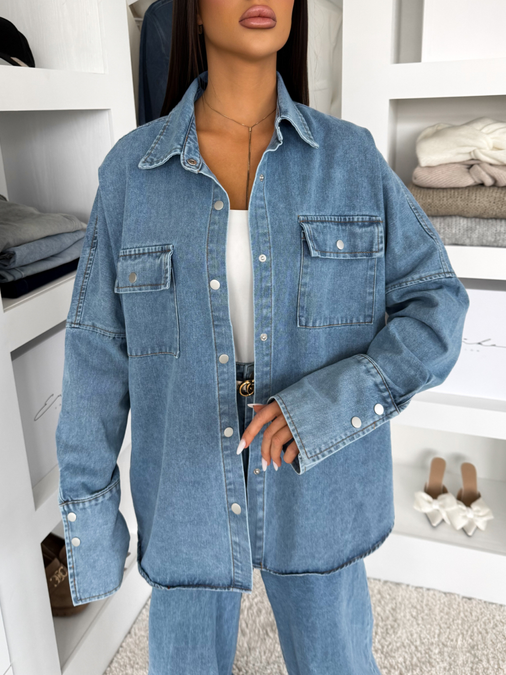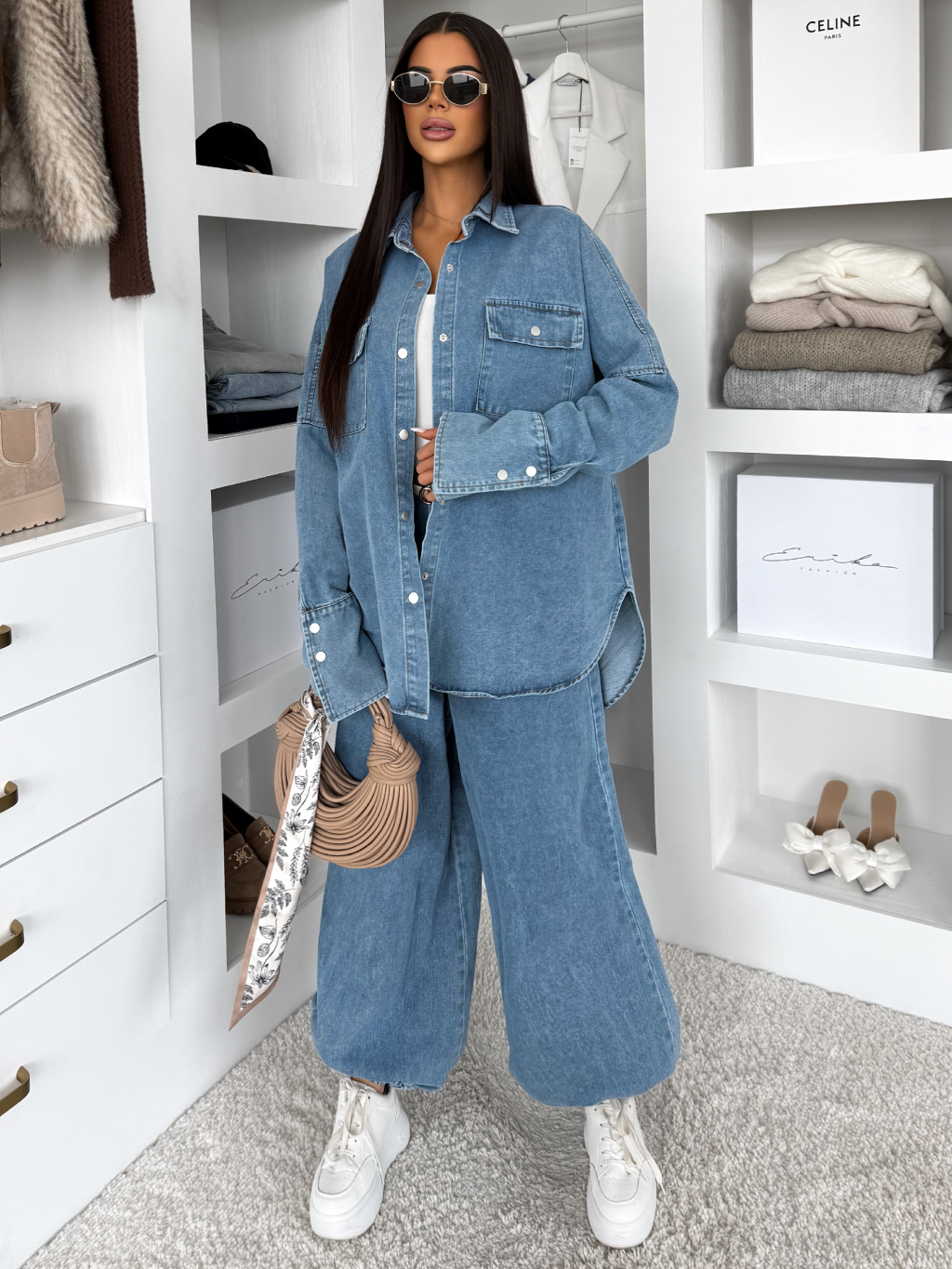 Modrý džínový dlouhý komplet BRELUM s košilí