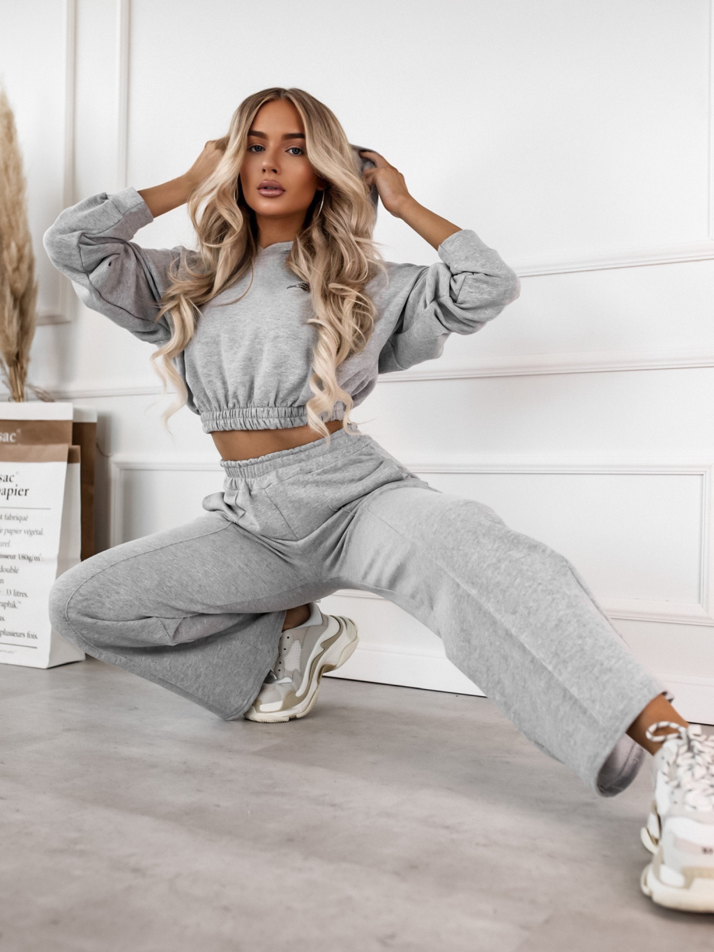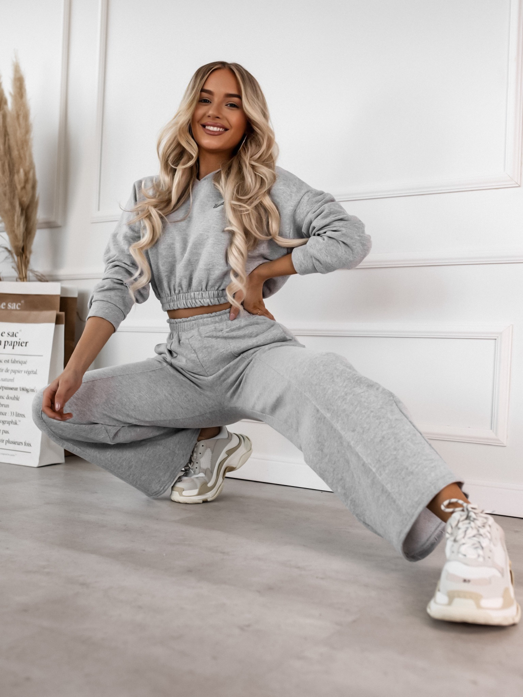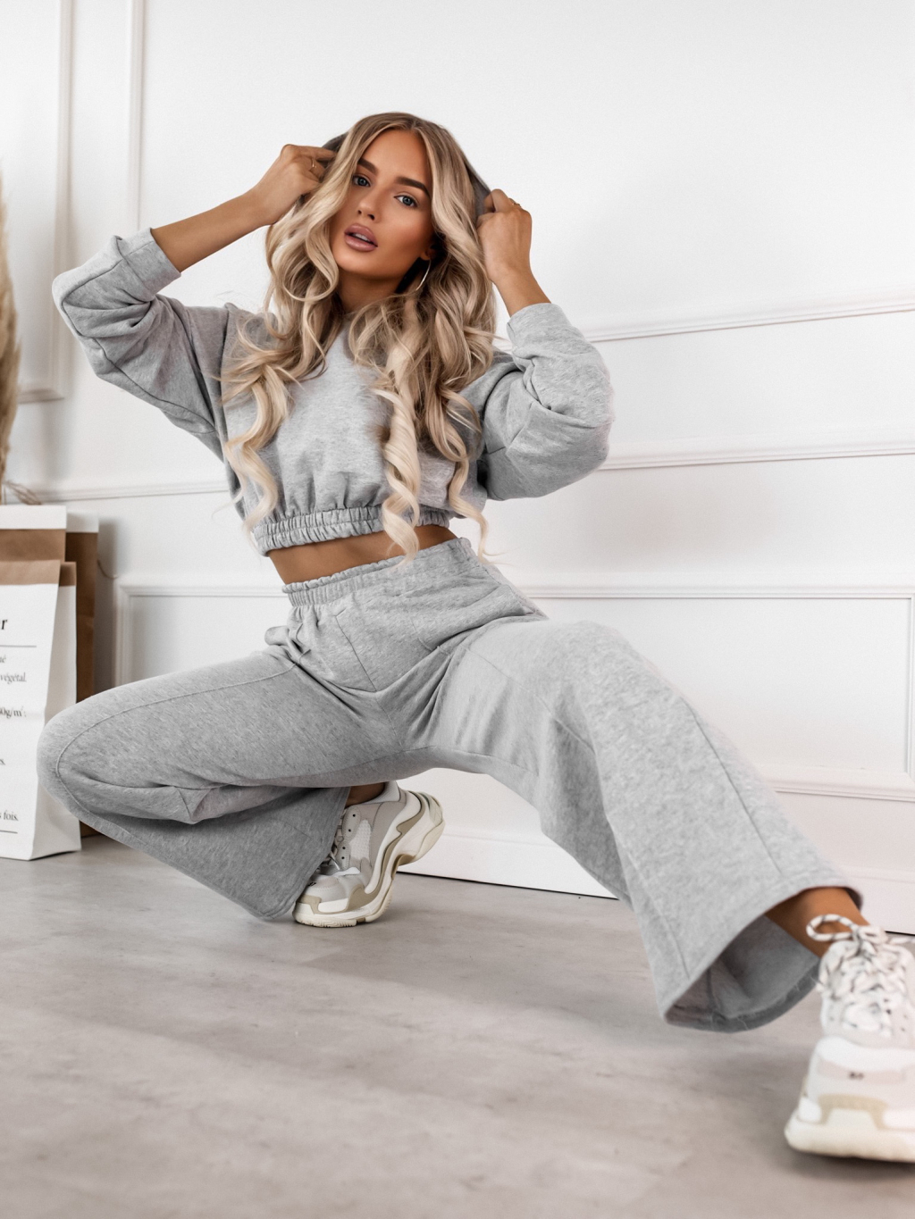 Šedá tepláková souprava COMPLIC s rozšířenými nohavicemi