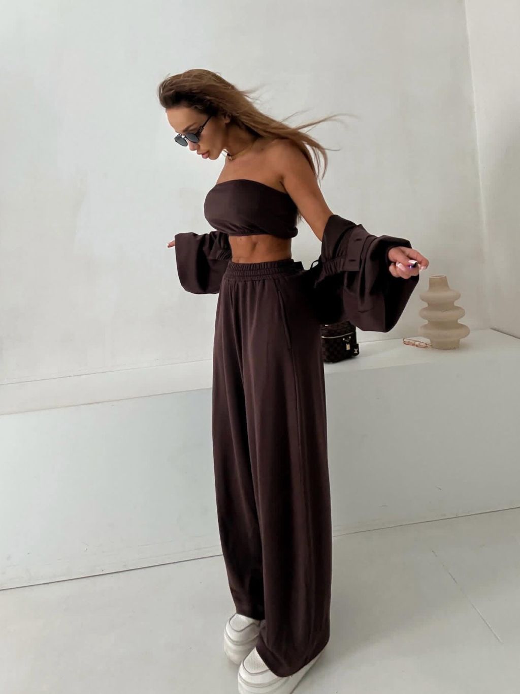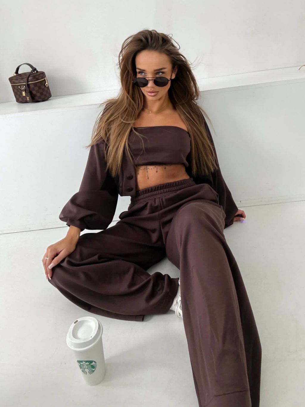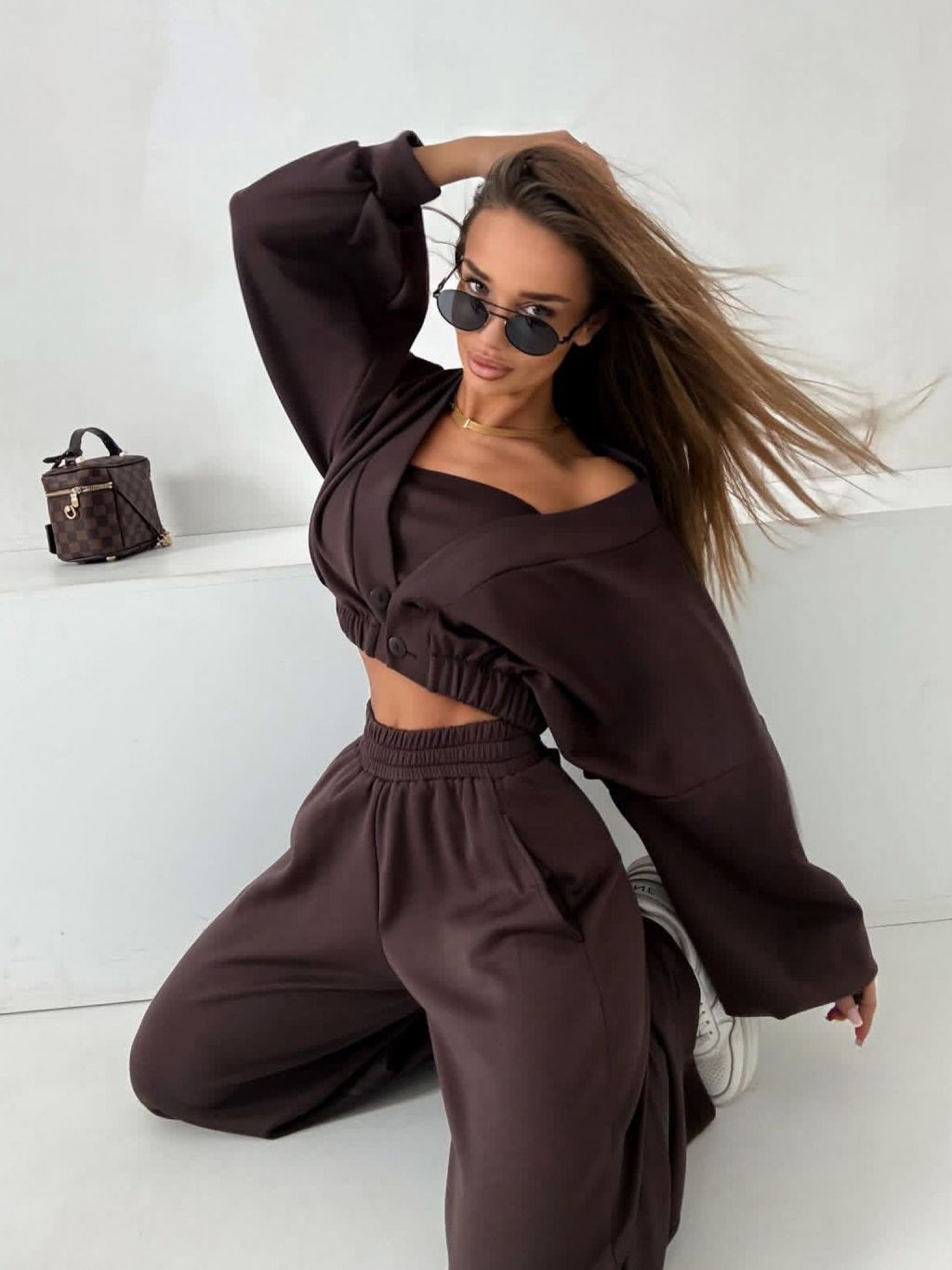 Tmavě hnědý mikinový stylový dlouhý komplet COMFRA