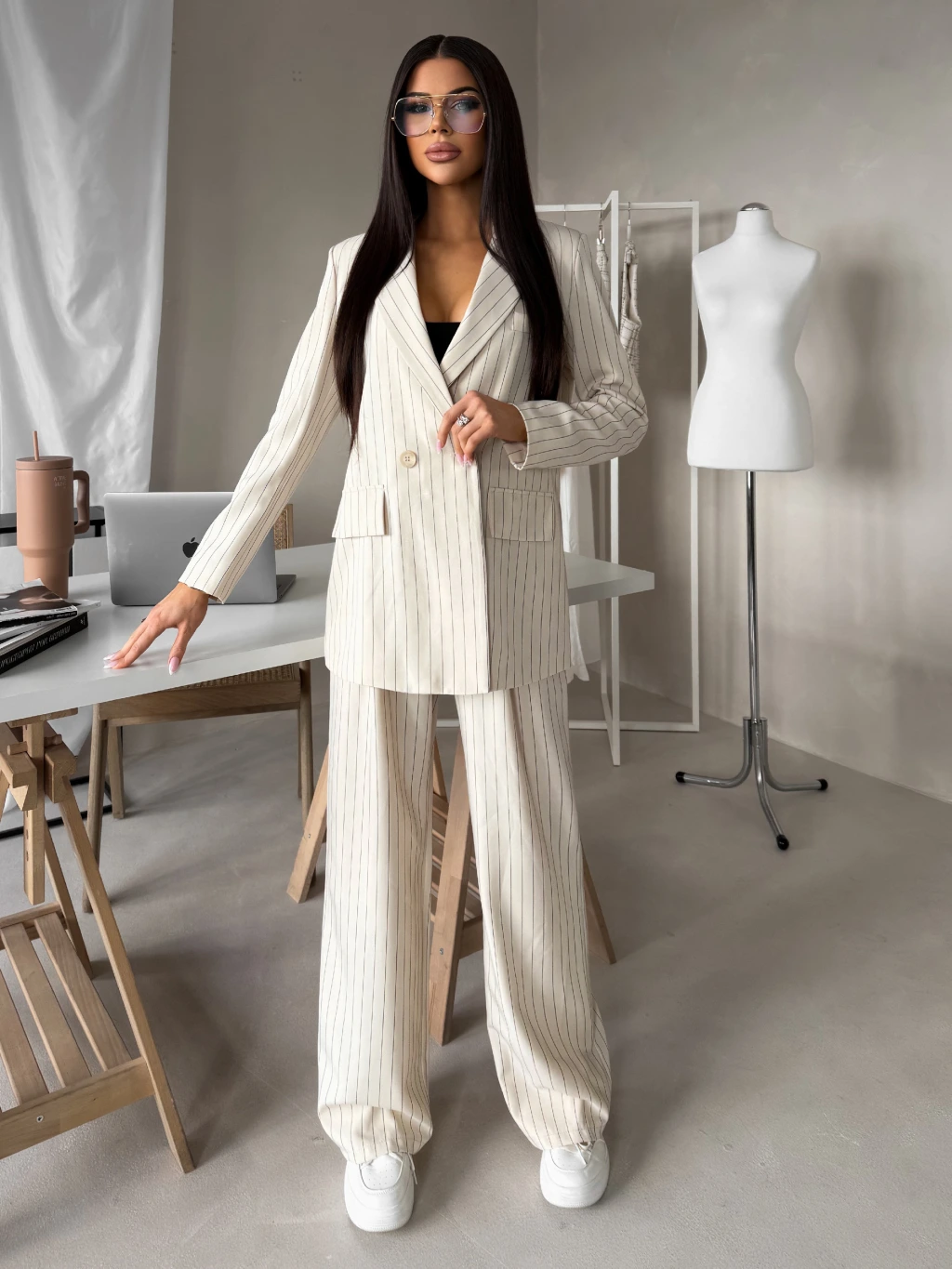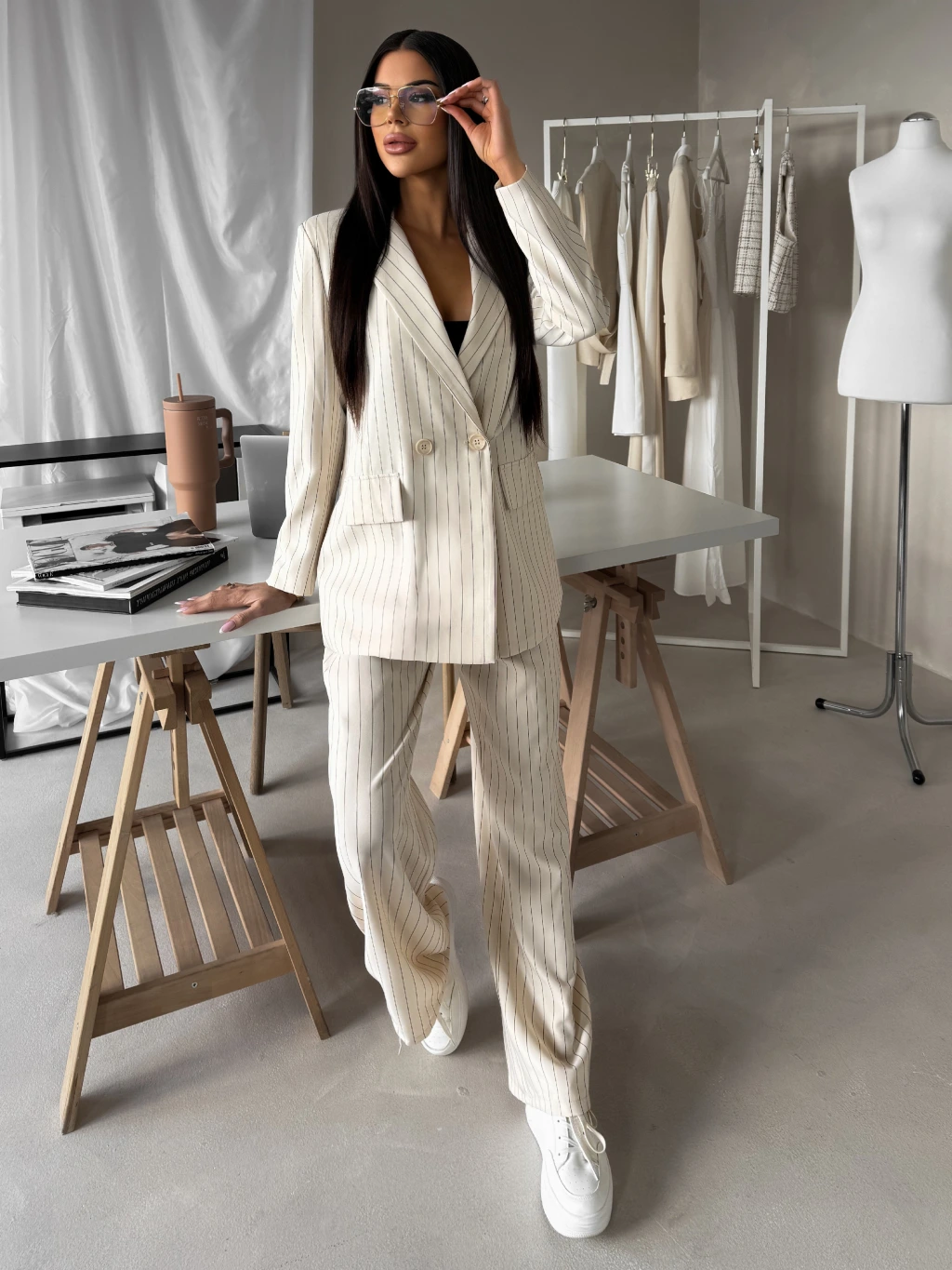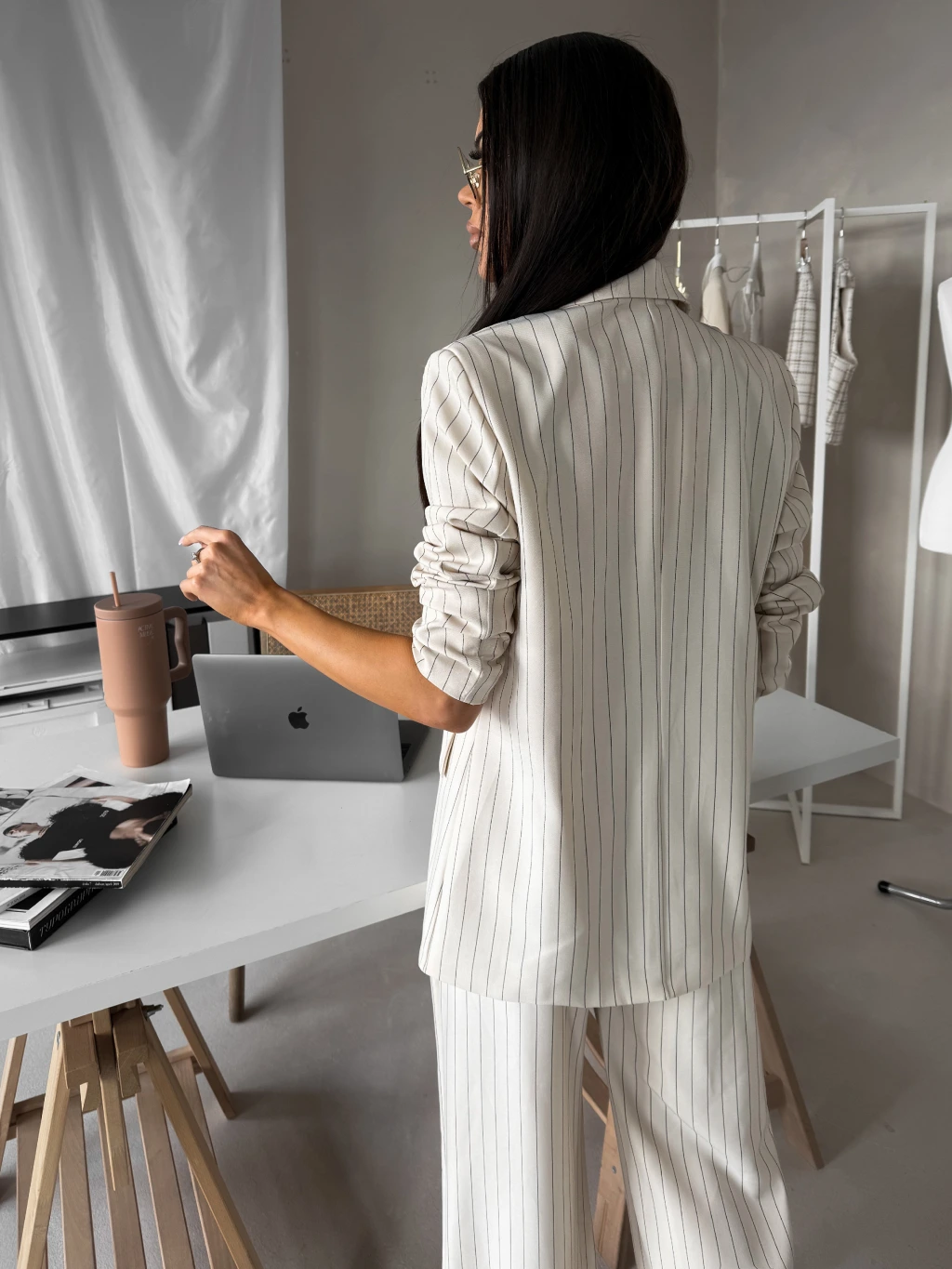 Krémové elegantní pruhované sako ORLENA