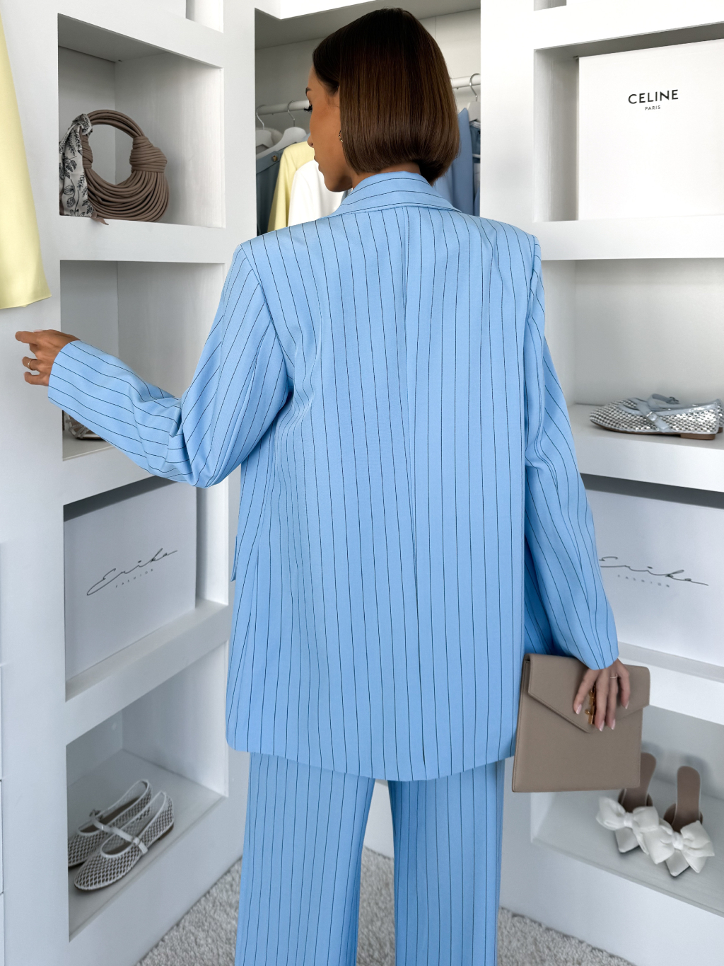 Světle modré elegantní pruhované oversize sako ORLENA