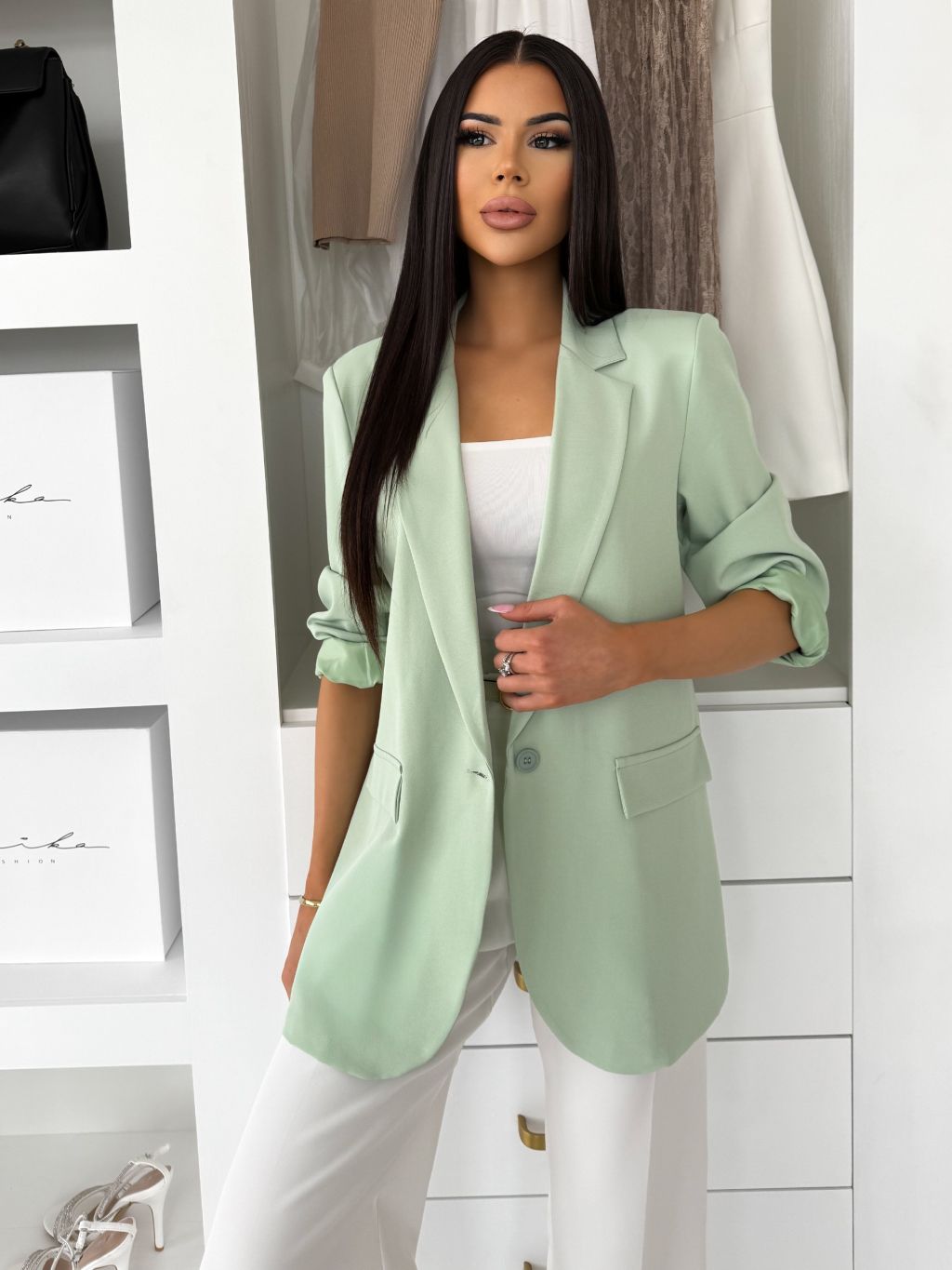 Světle zelené elegantní basic sako SIRONA