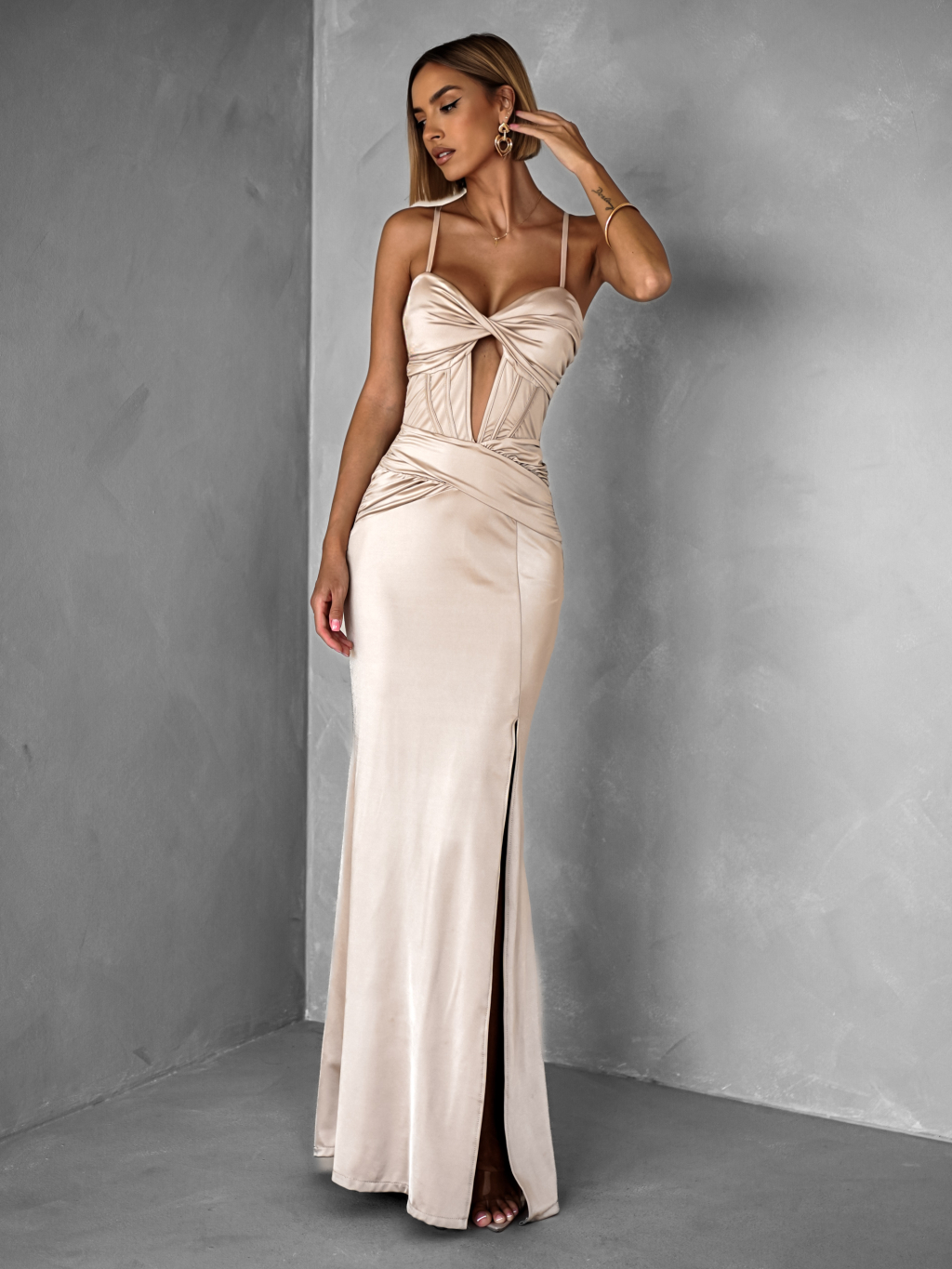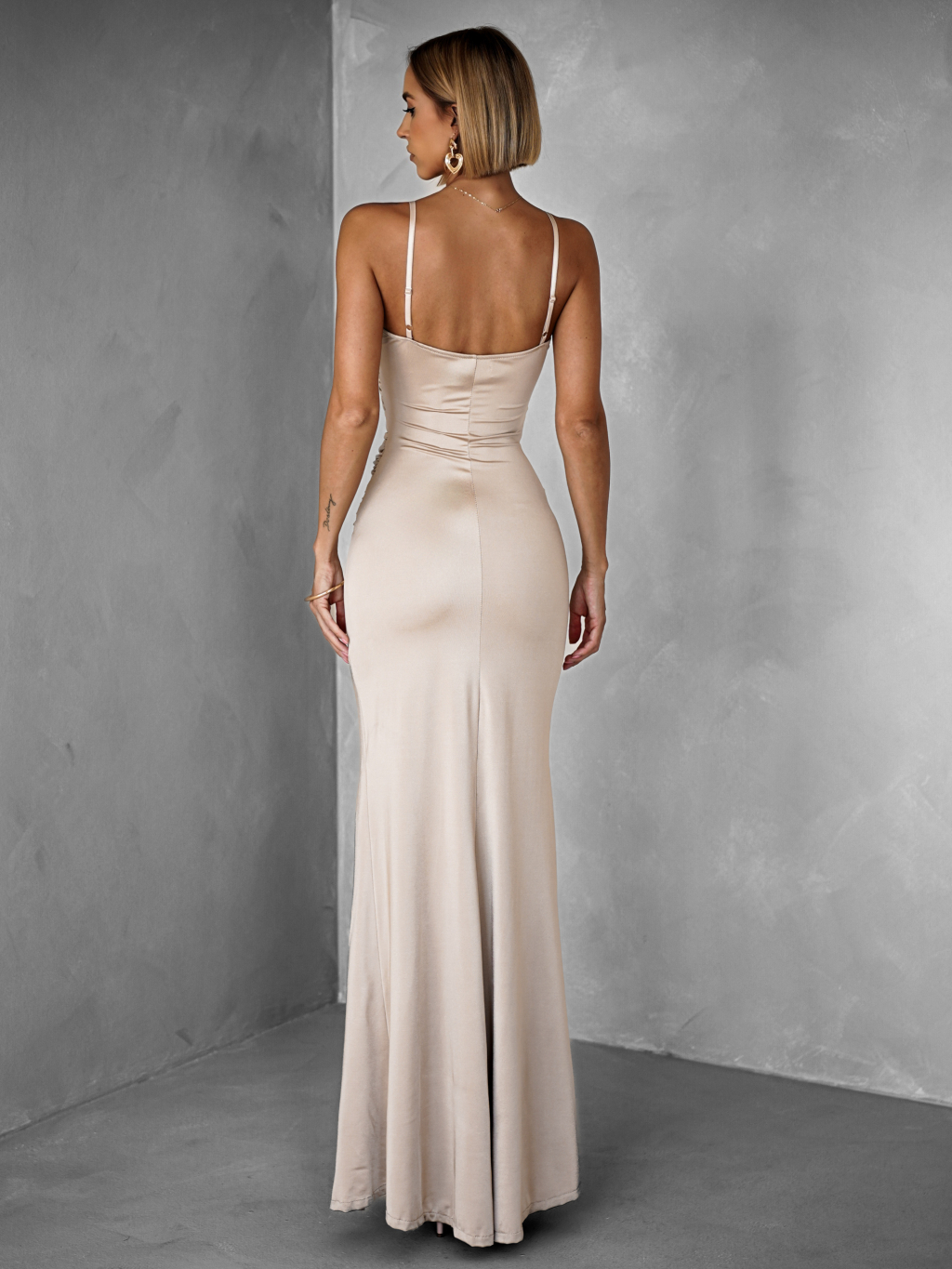 Béžové dlouhé společenské šaty LIMONA