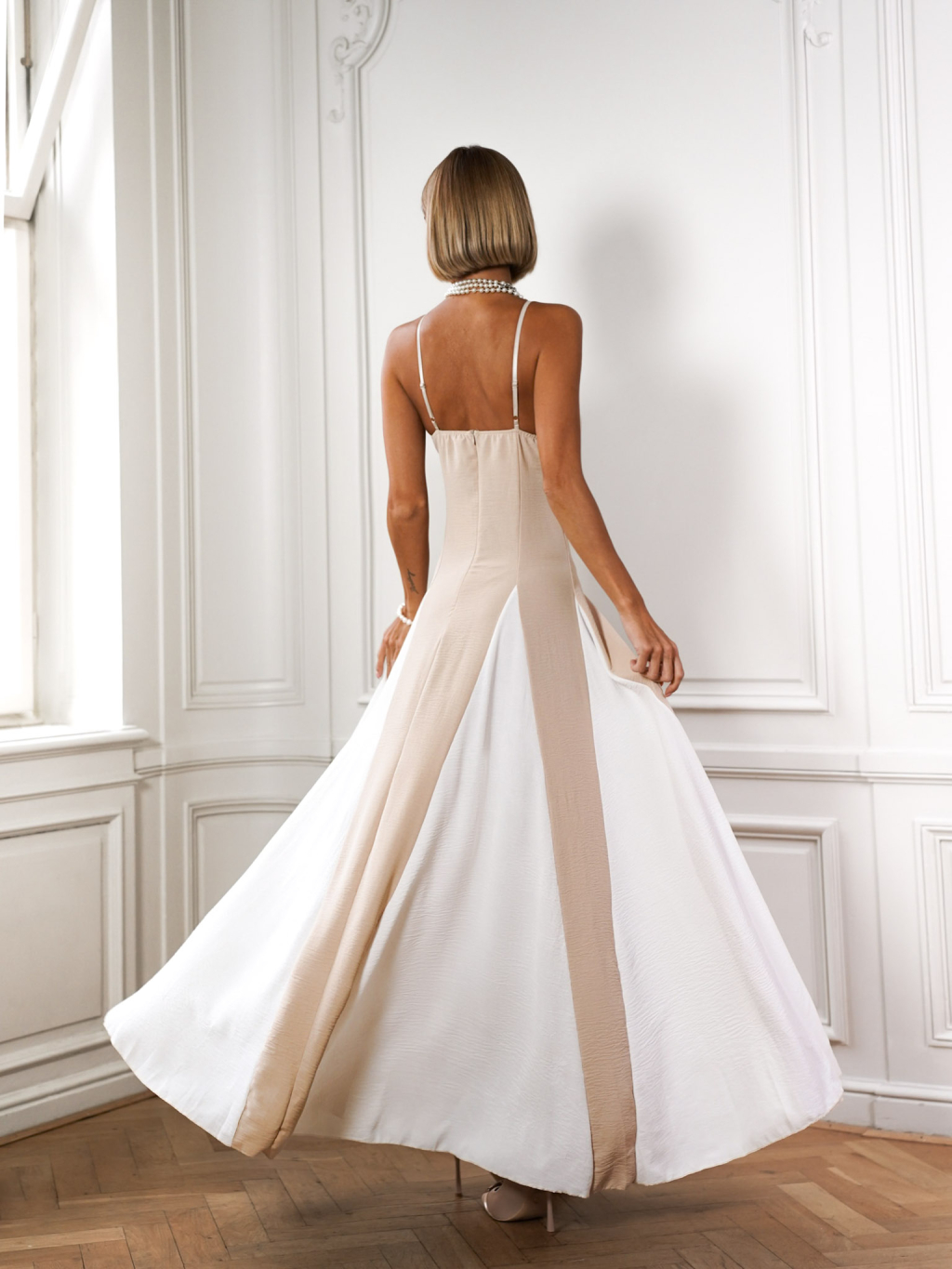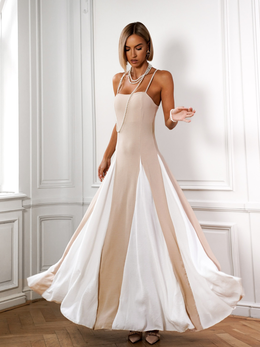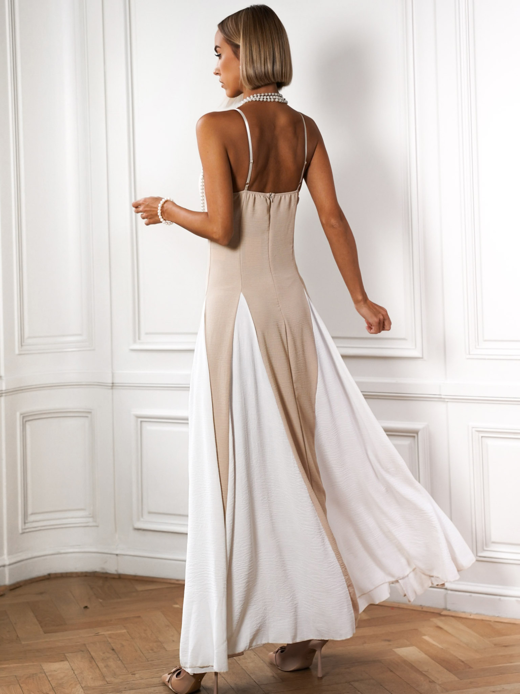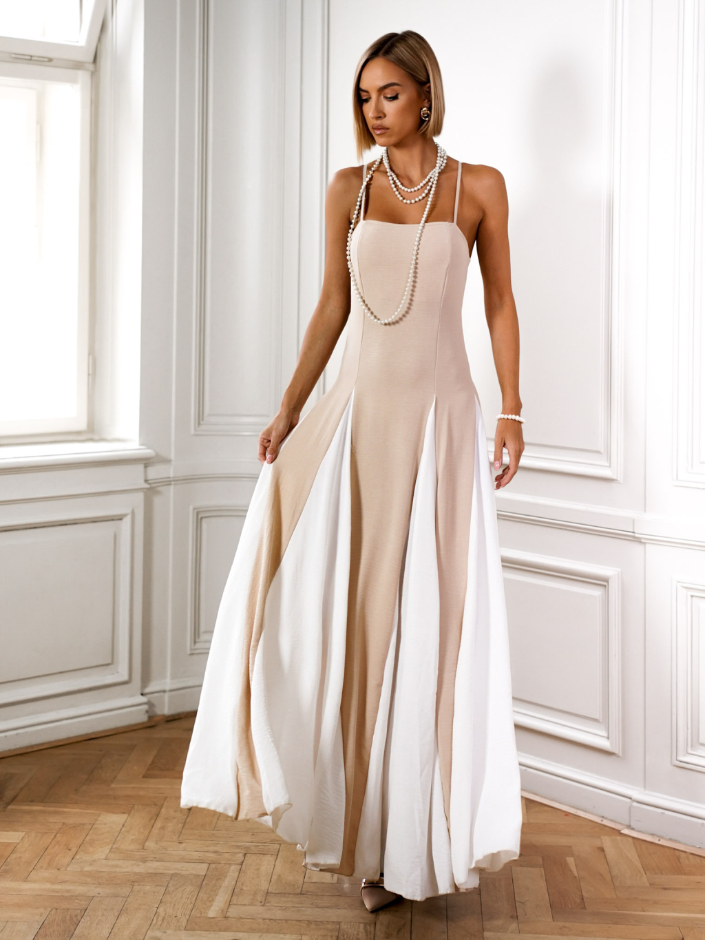 Béžové splývavé dlouhé šaty ELLKYE na ramínka