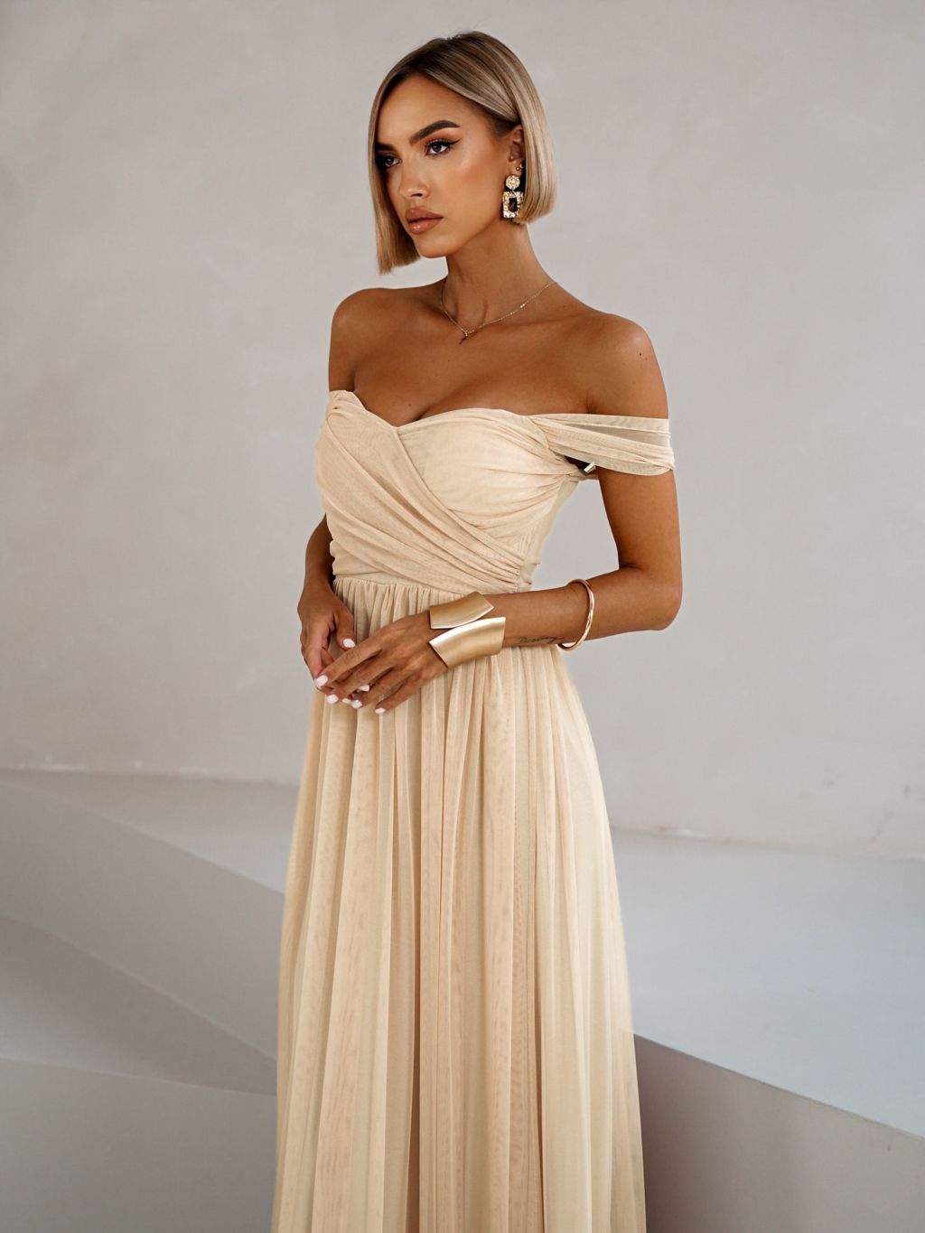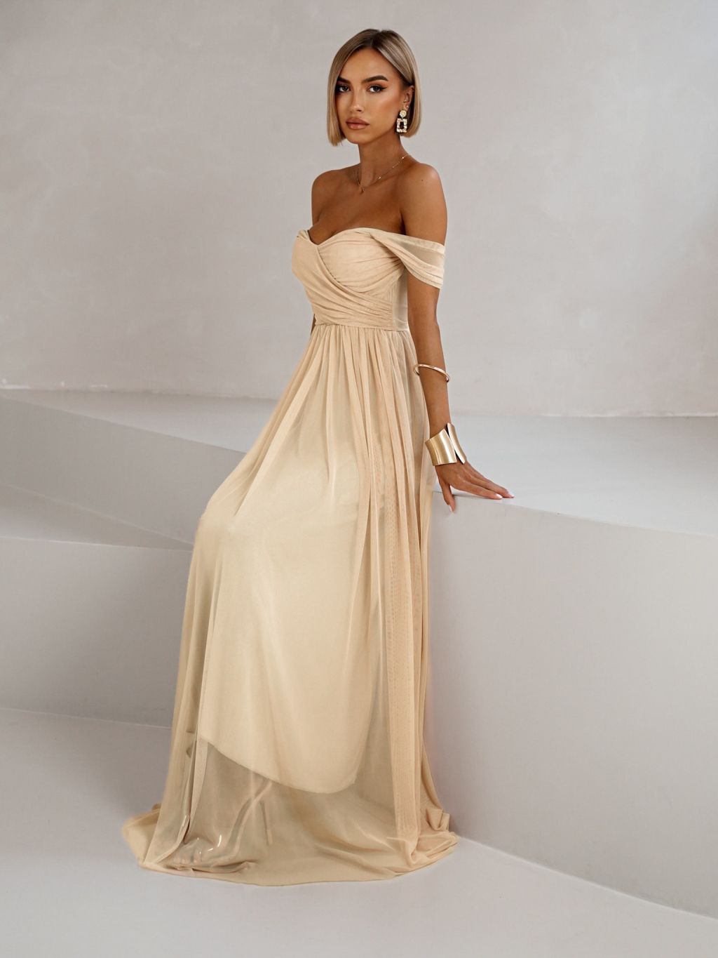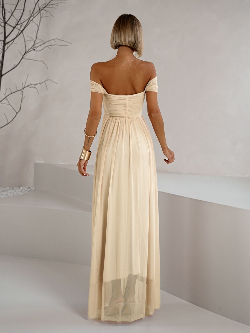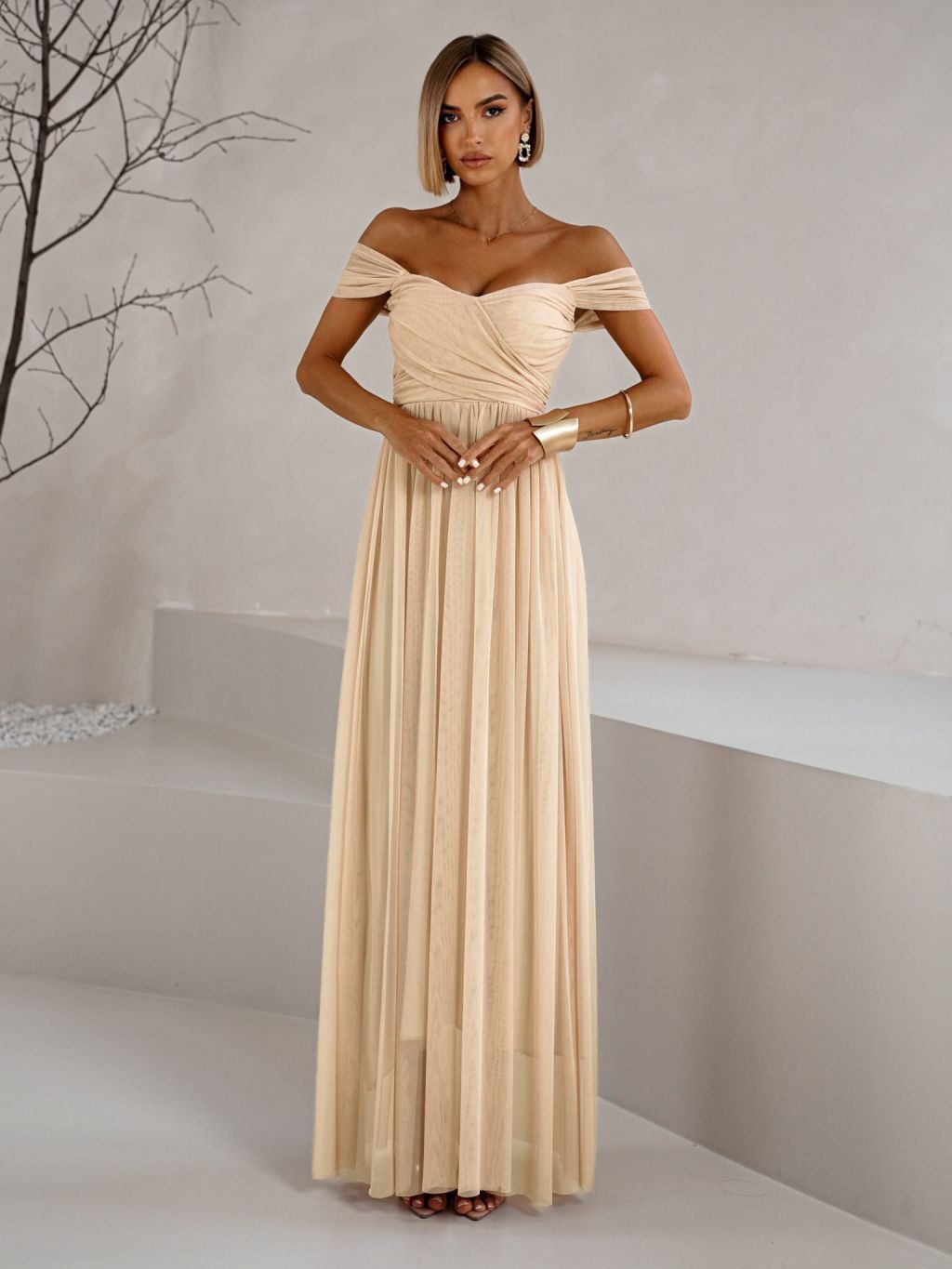 Béžové tylové společenské šaty BOSCO