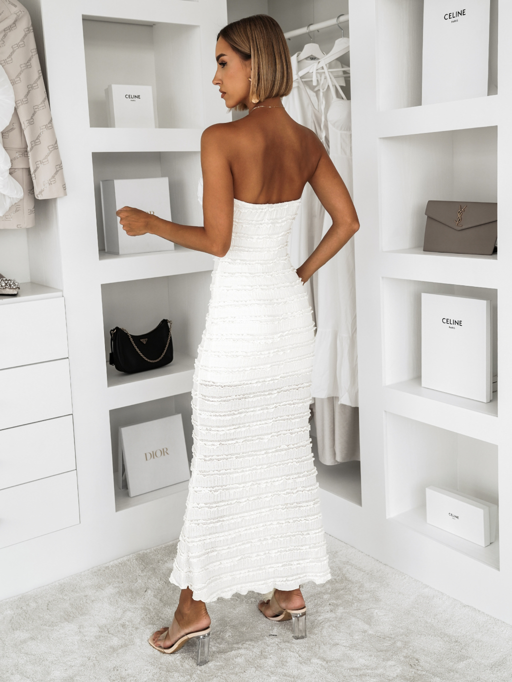 Bílé dlouhé maxi šaty SHEVIBE bez ramínek