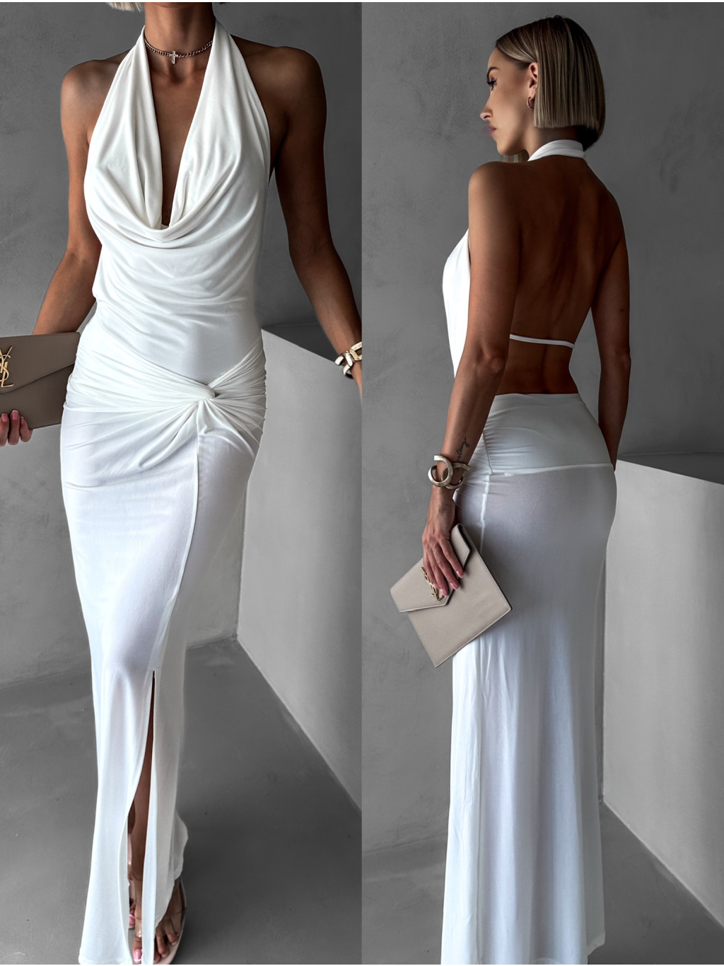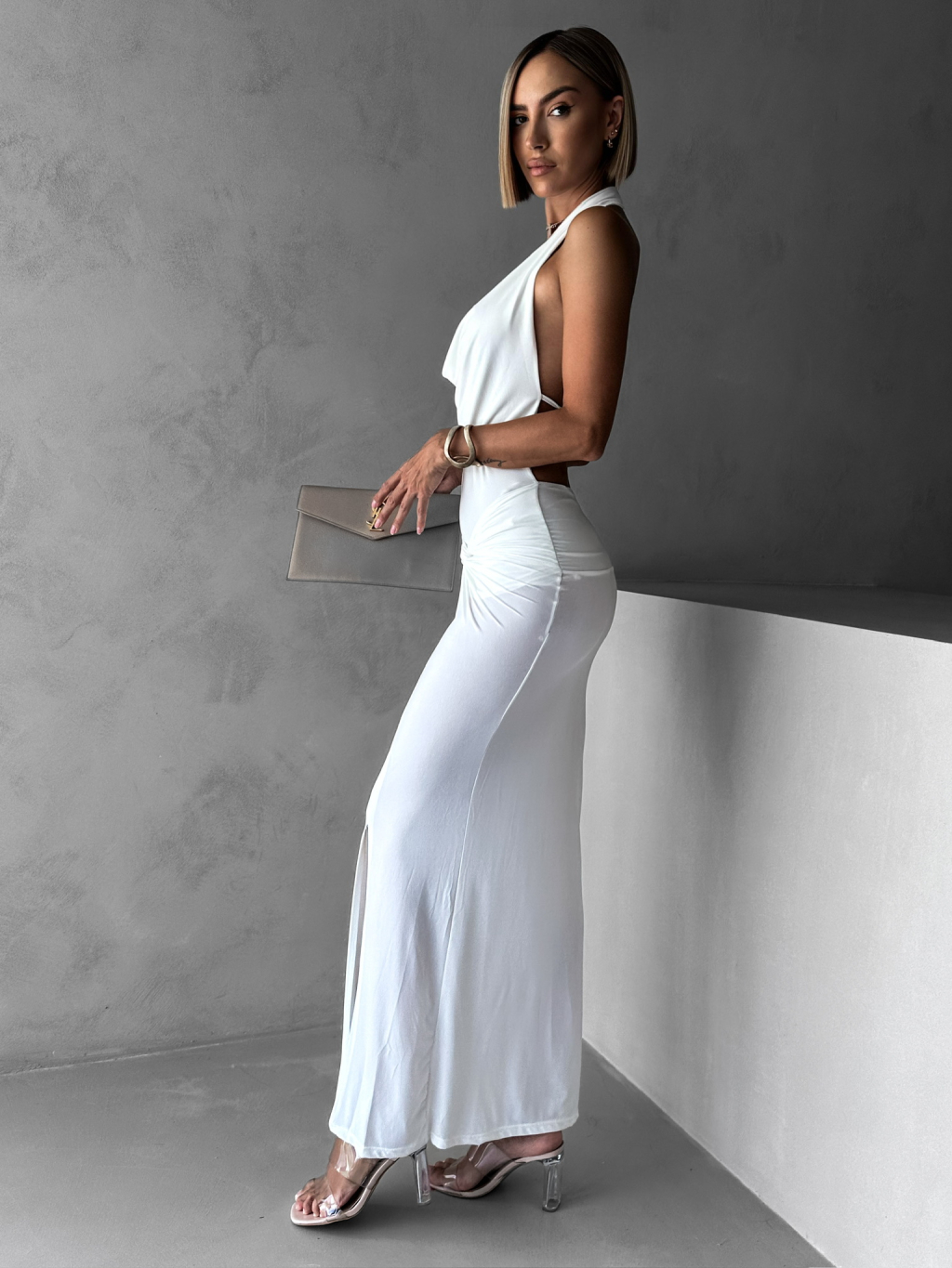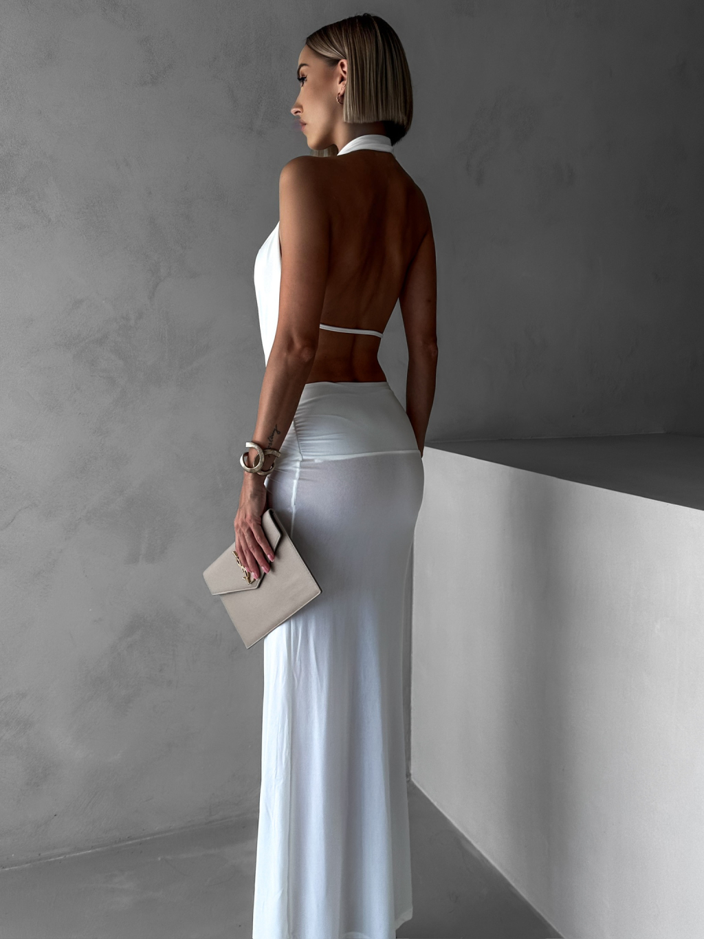 Bílé elegantní šaty RHIANY s odhalenými zády