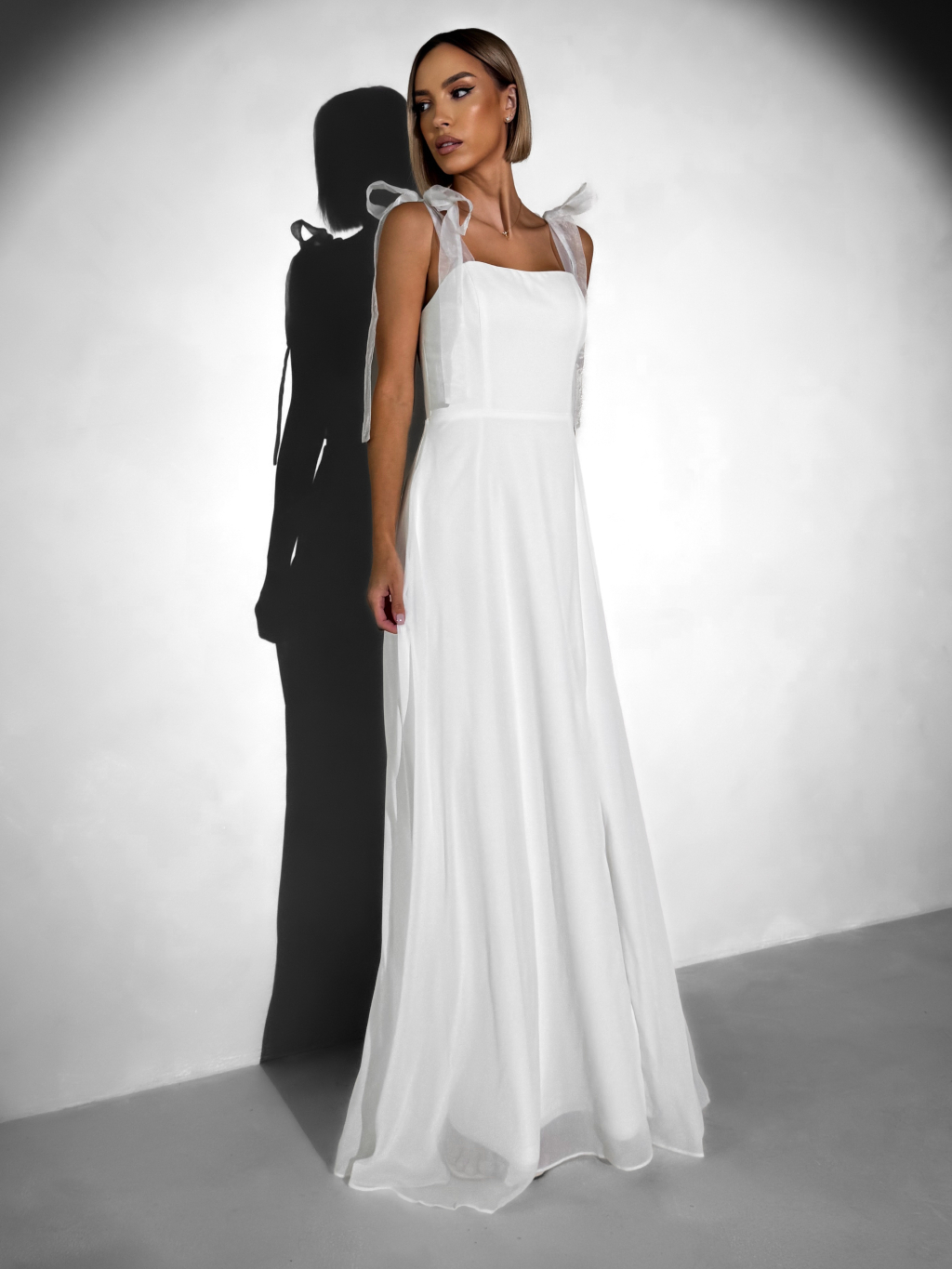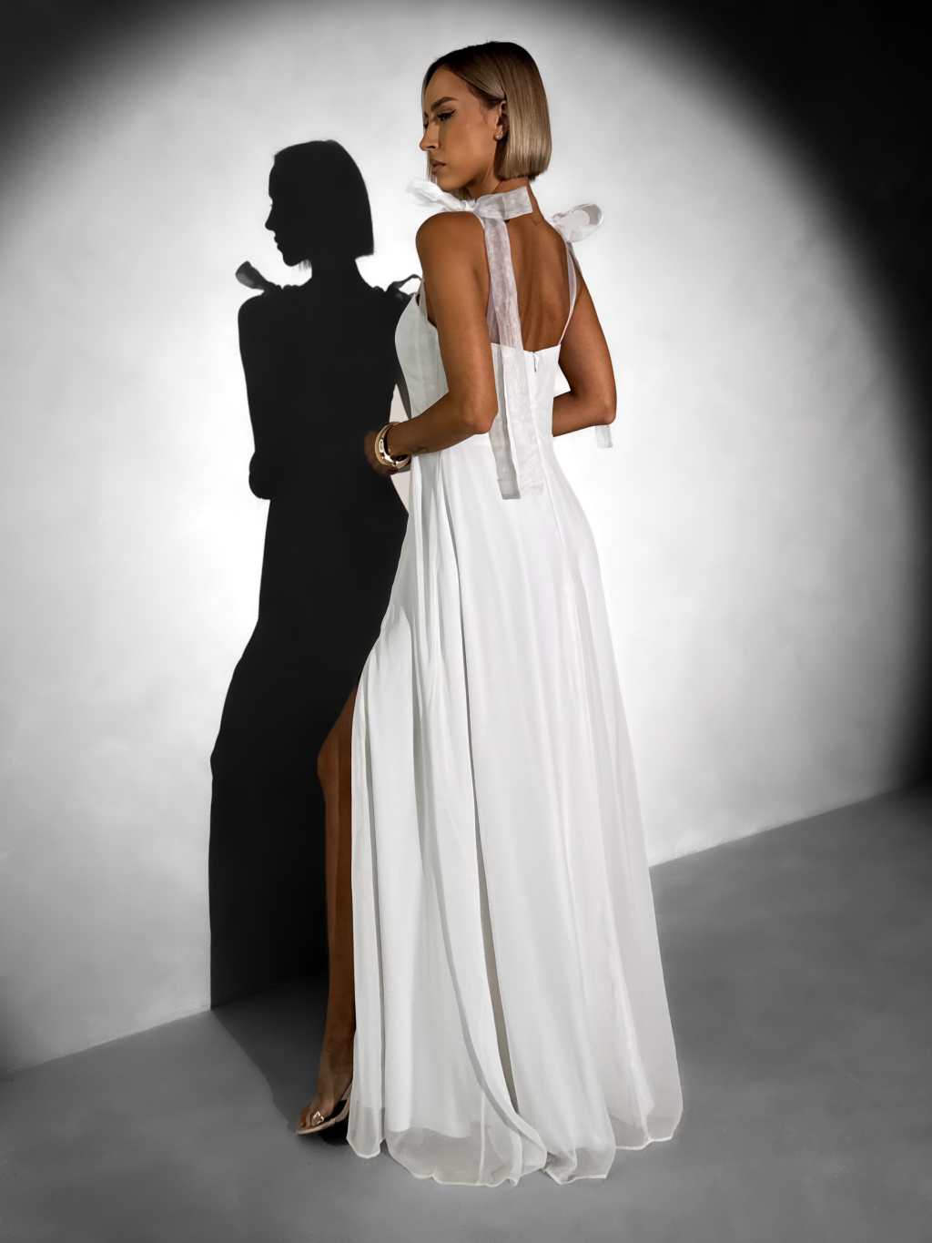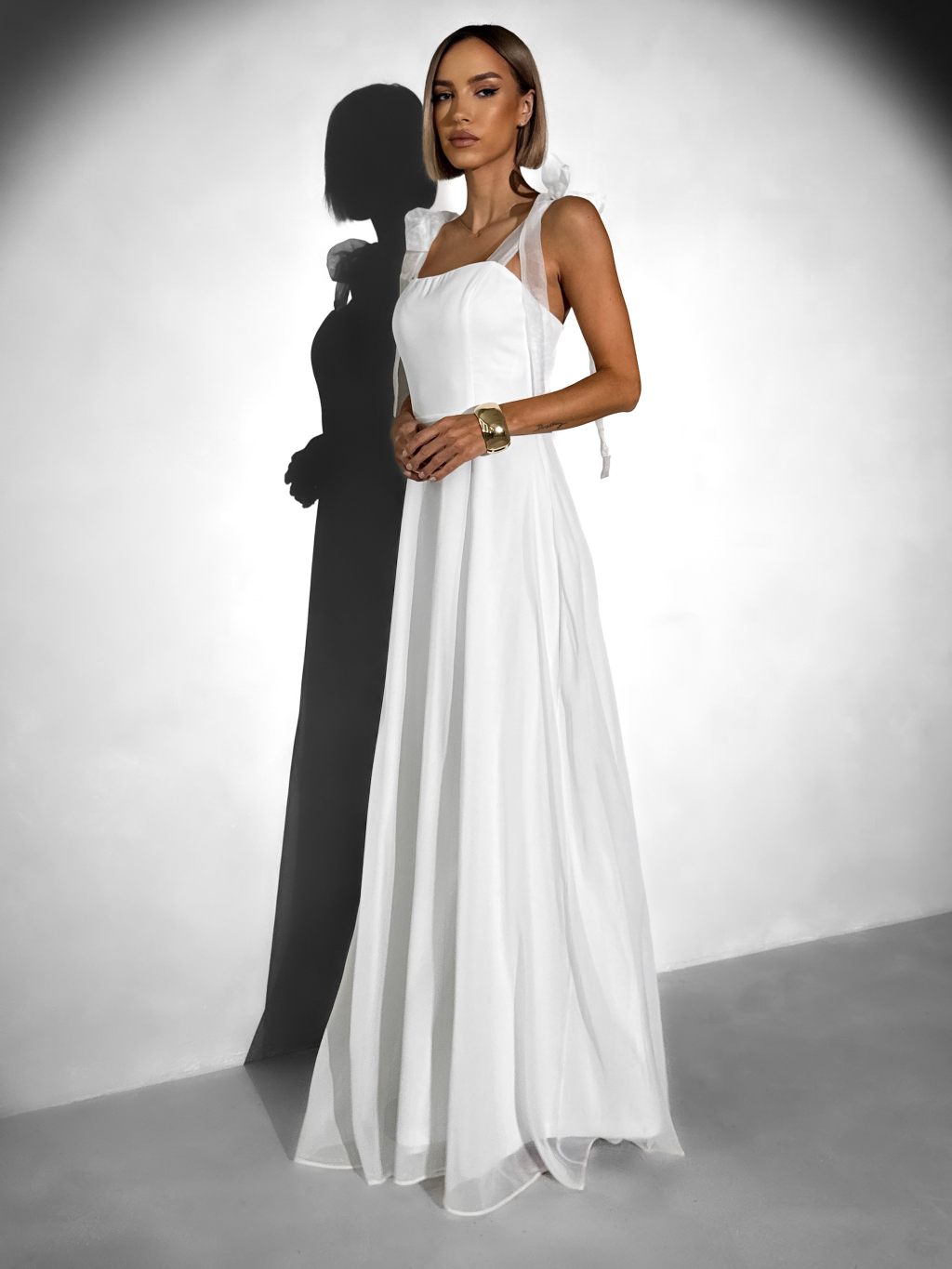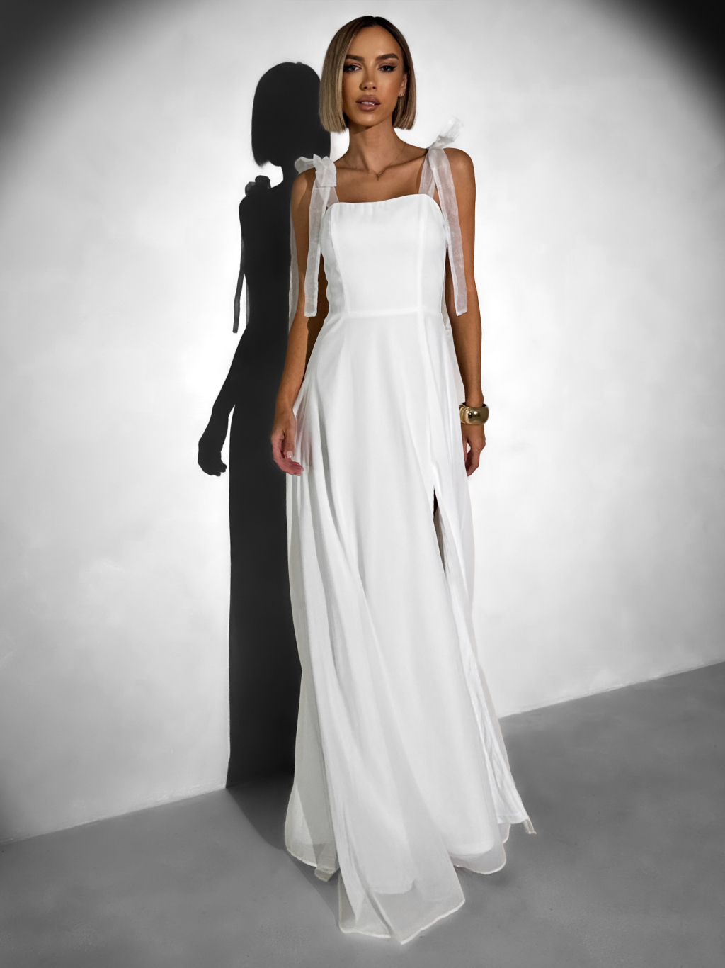Bílé společenské dlouhé šaty AMIREZA s rozparkem