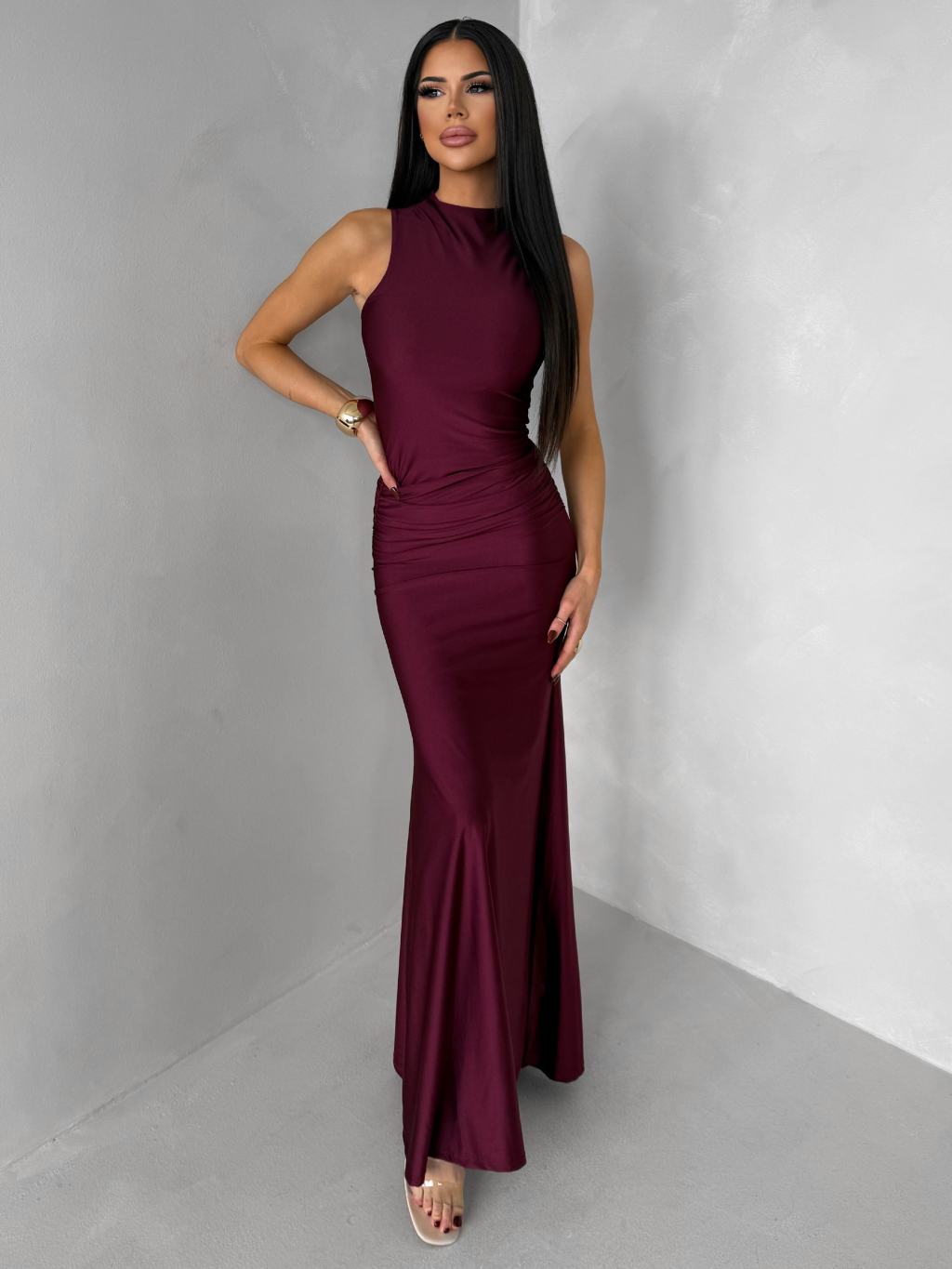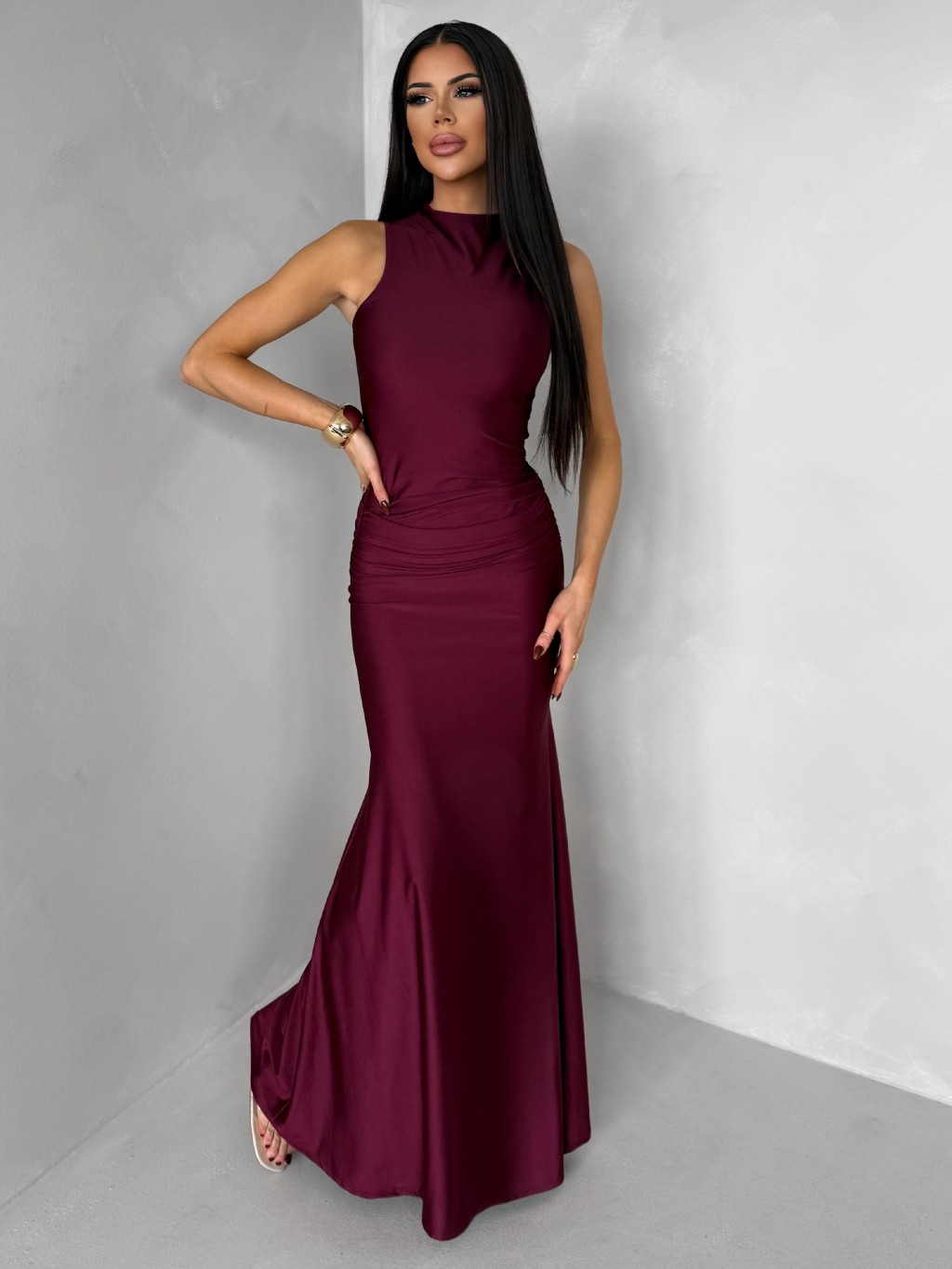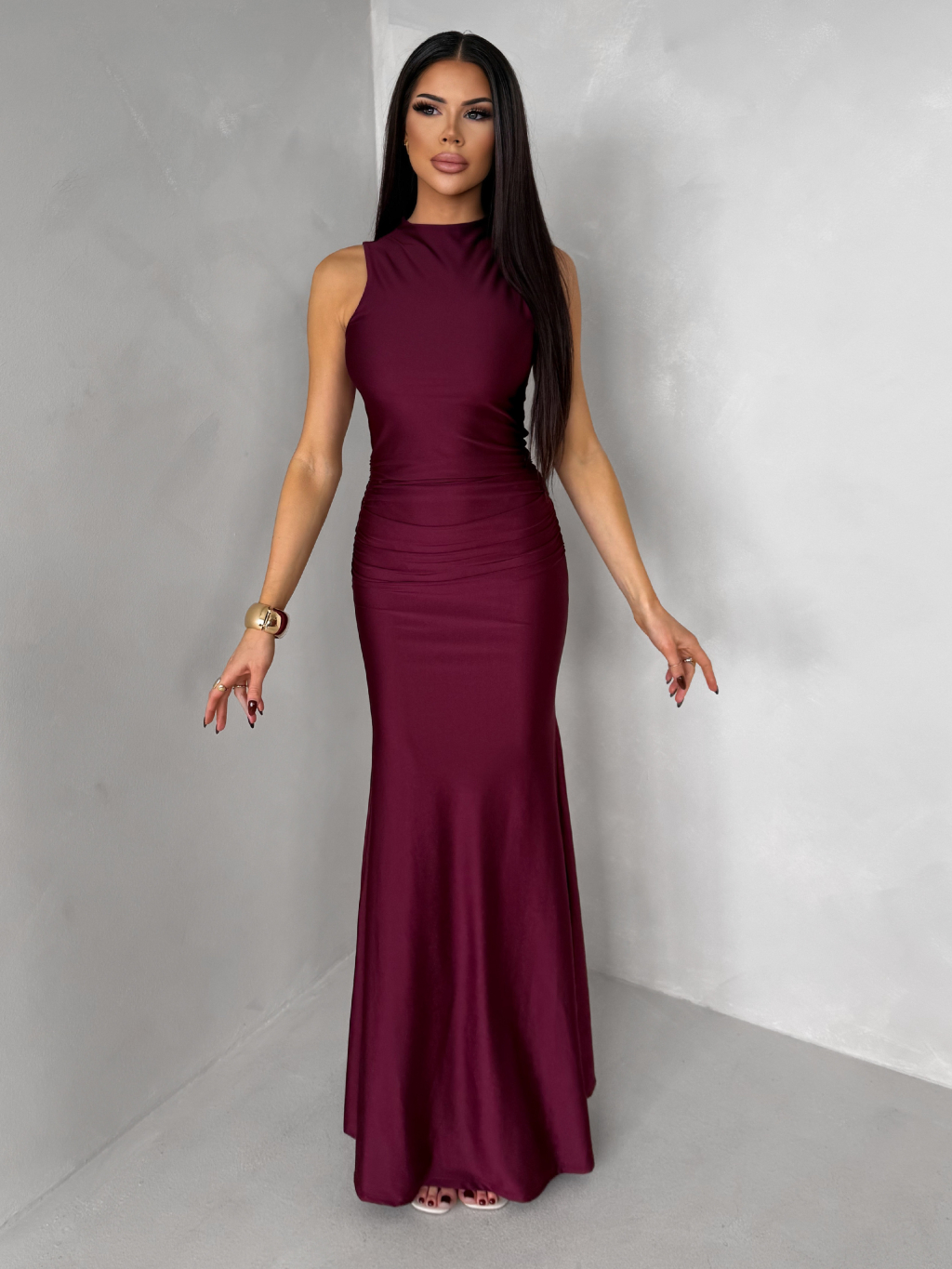 Bordó dlouhé společenské šaty LETERA s řasením
