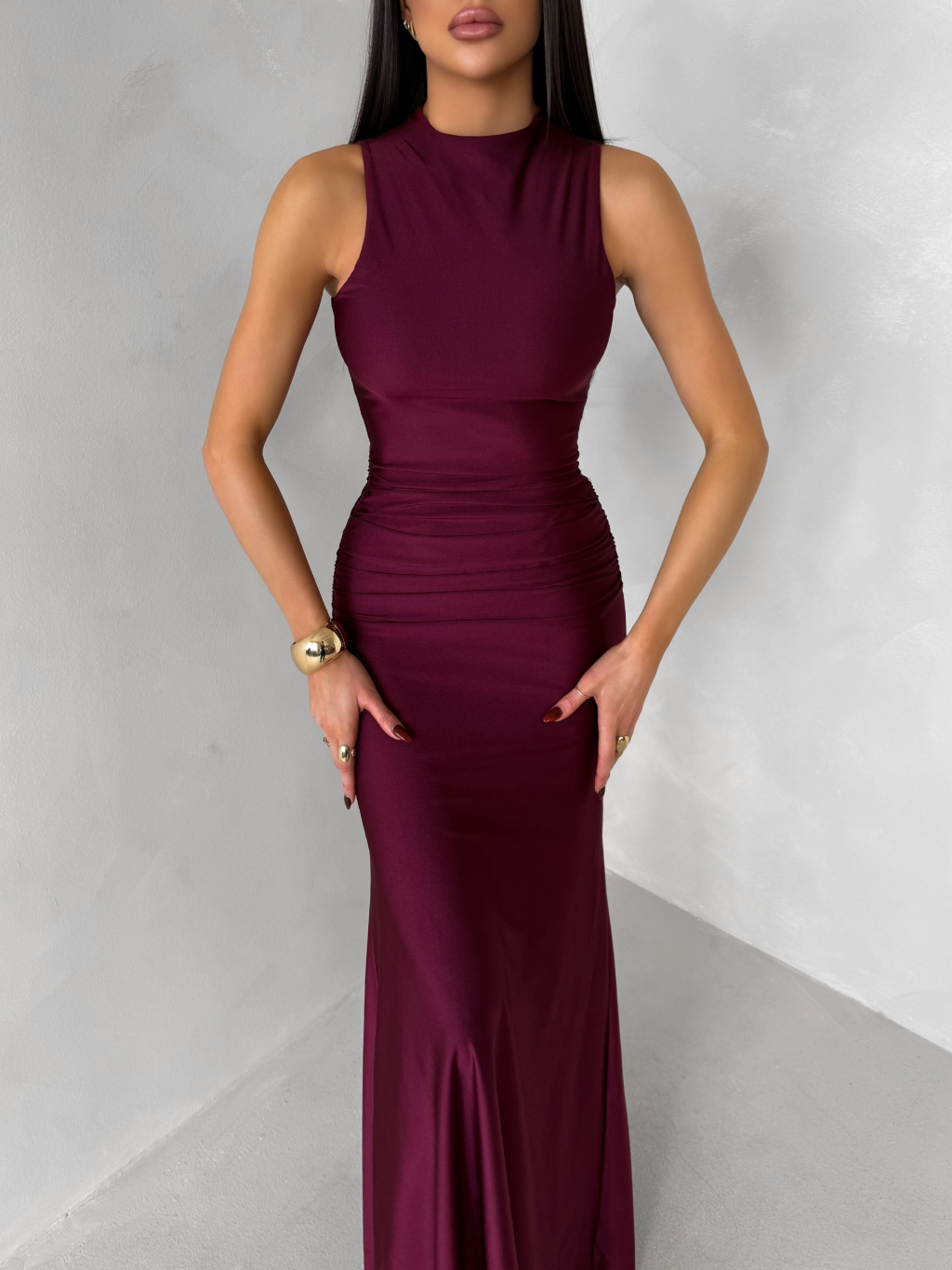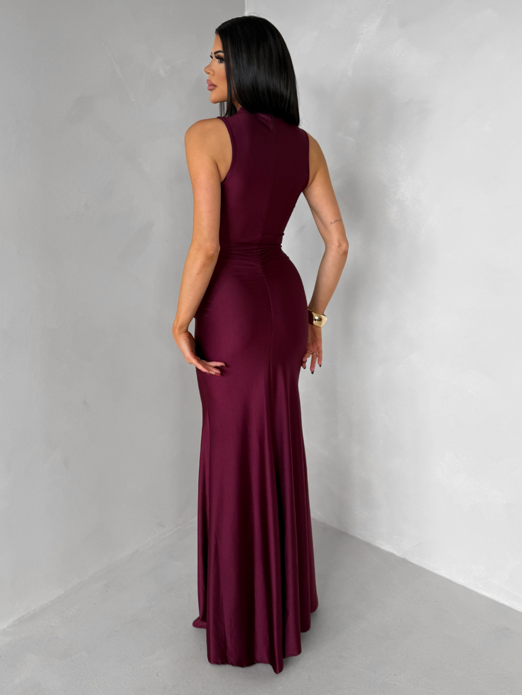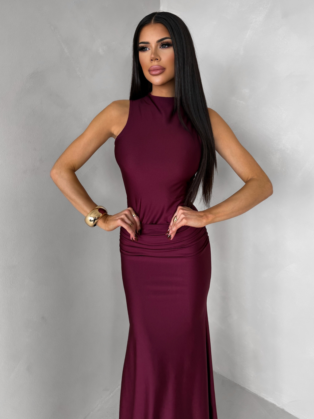 Bordó dlouhé společenské šaty LETERA s řasením