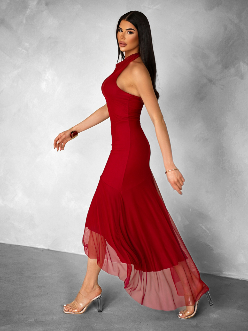Bordó společenské dlouhé šaty FLINTYE