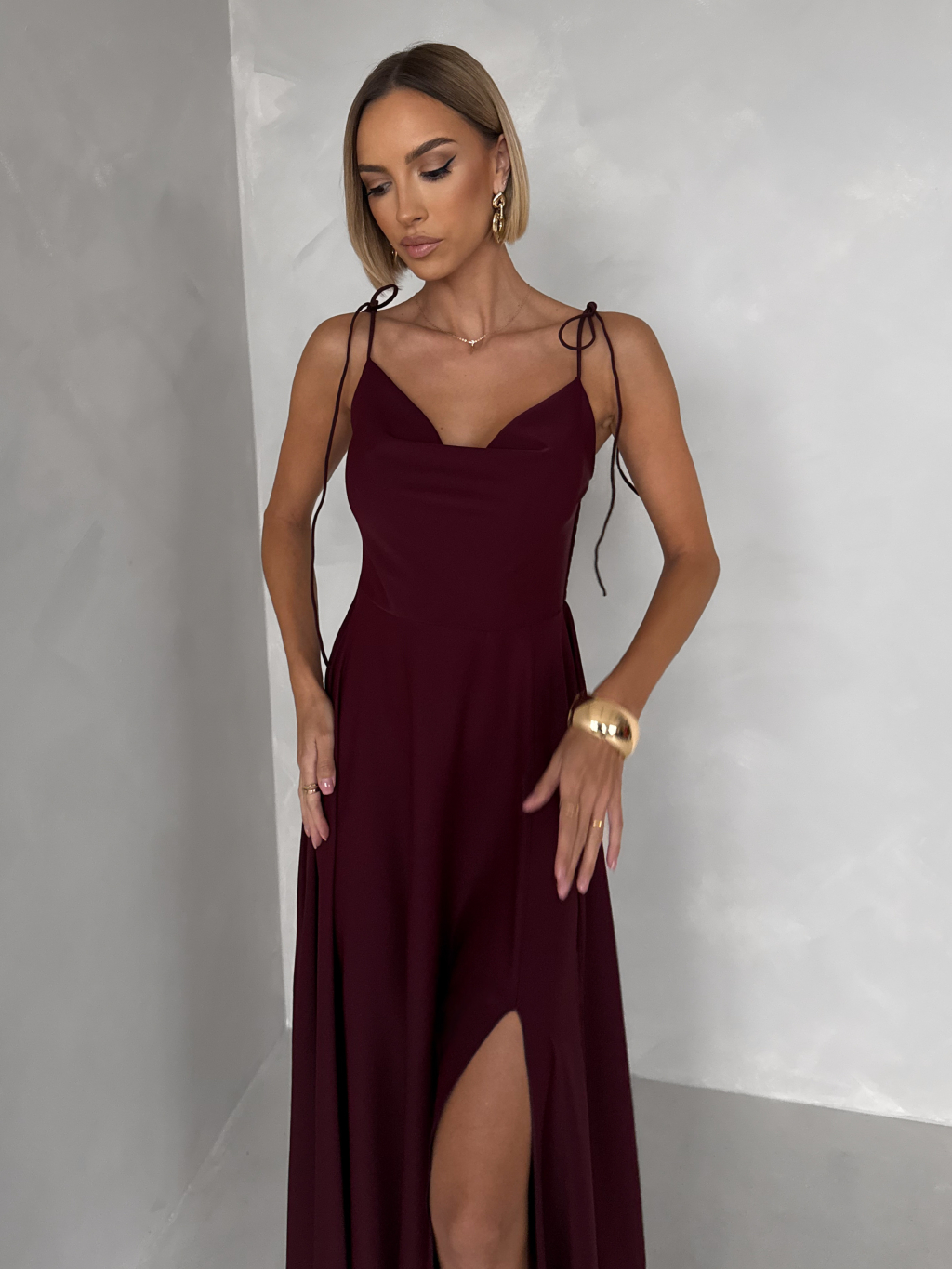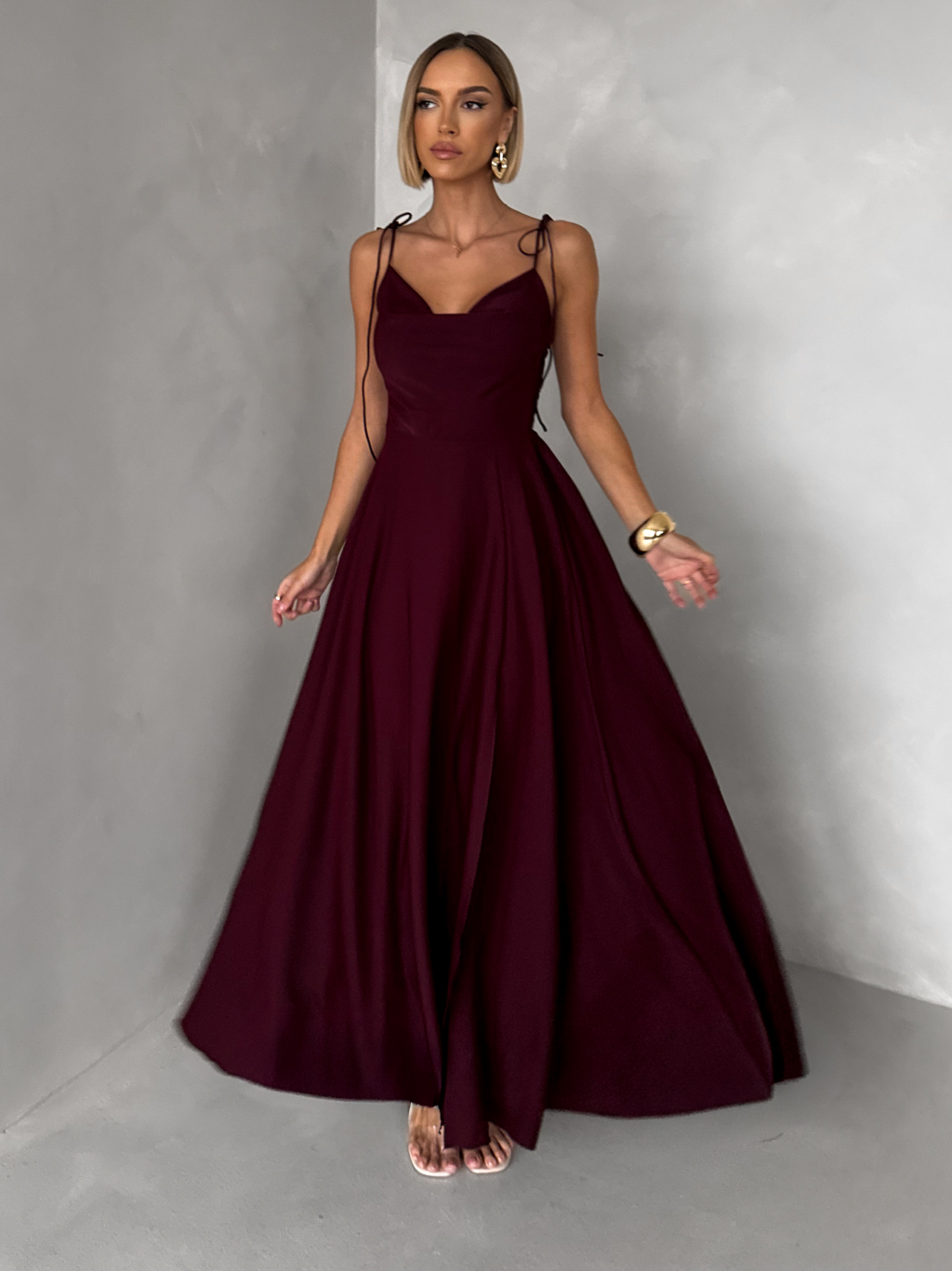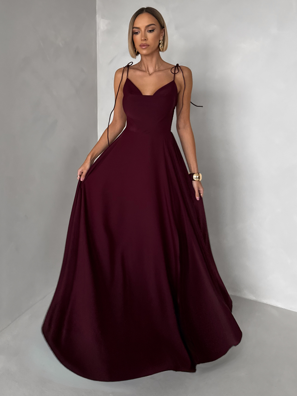 Bordó společenské dlouhé šaty LERDISEL na ramínka