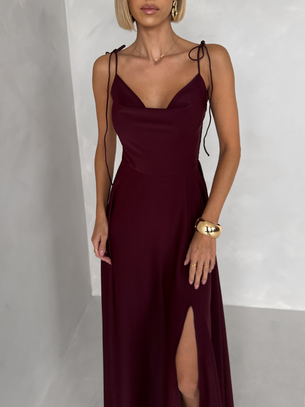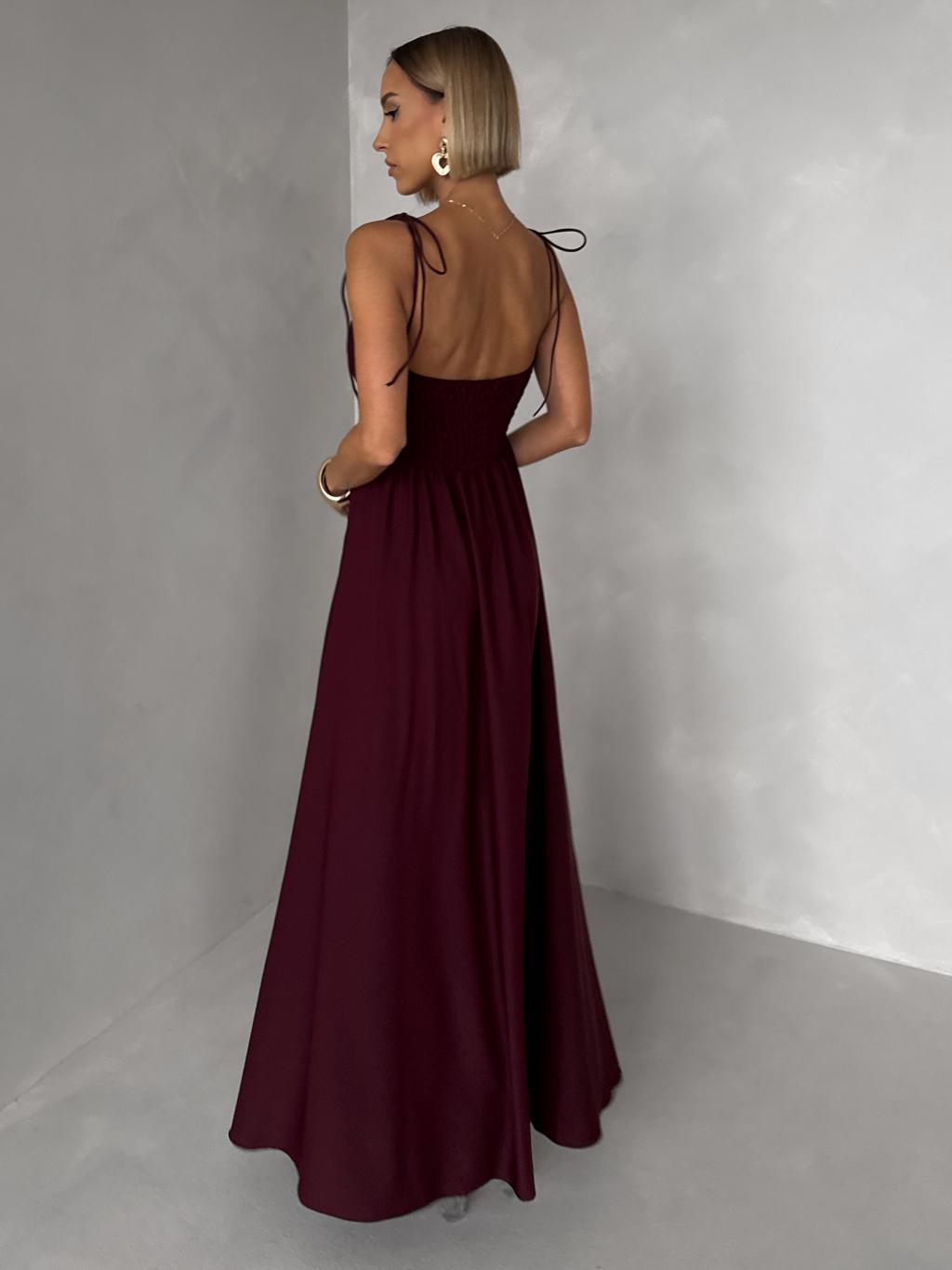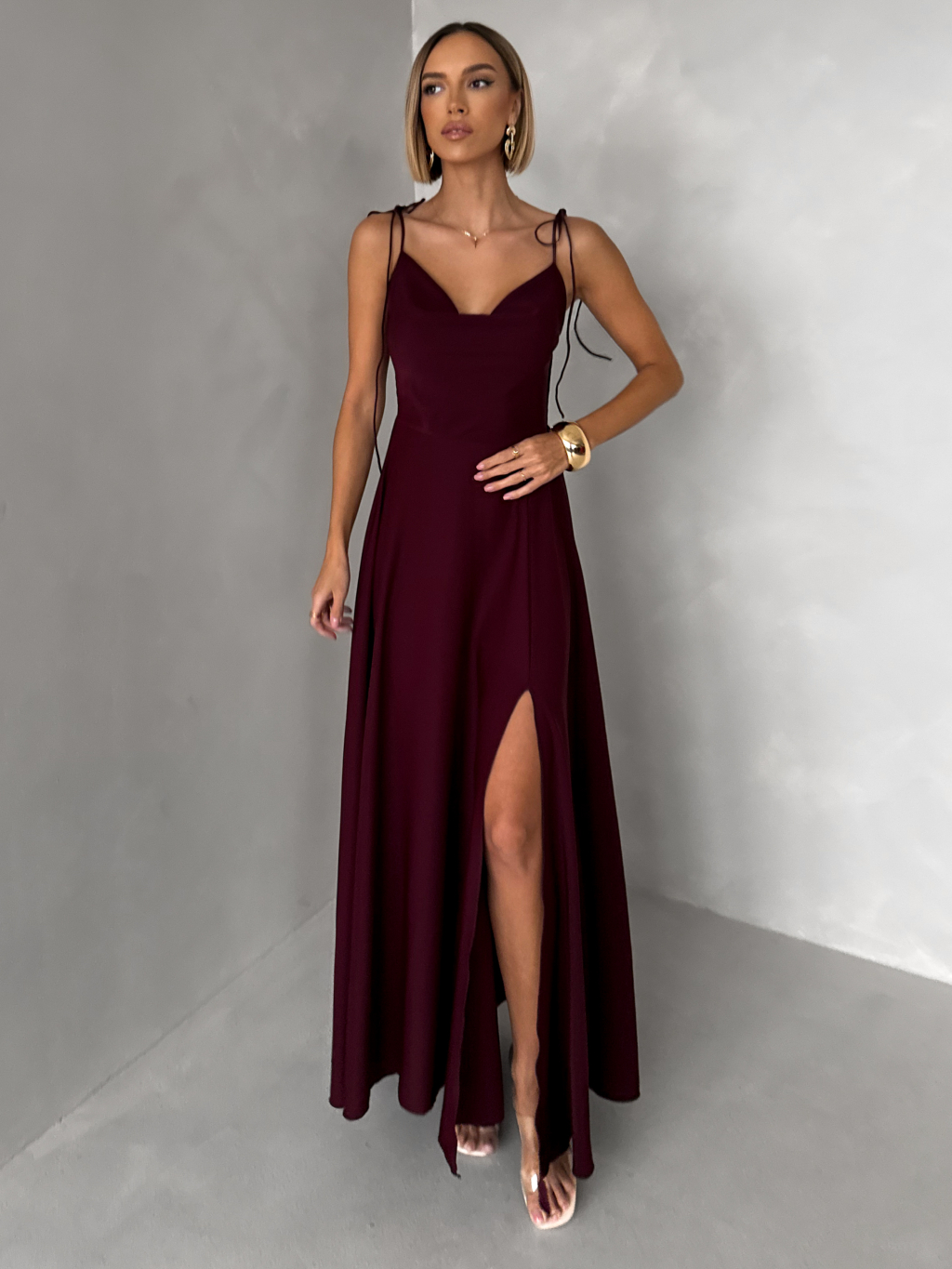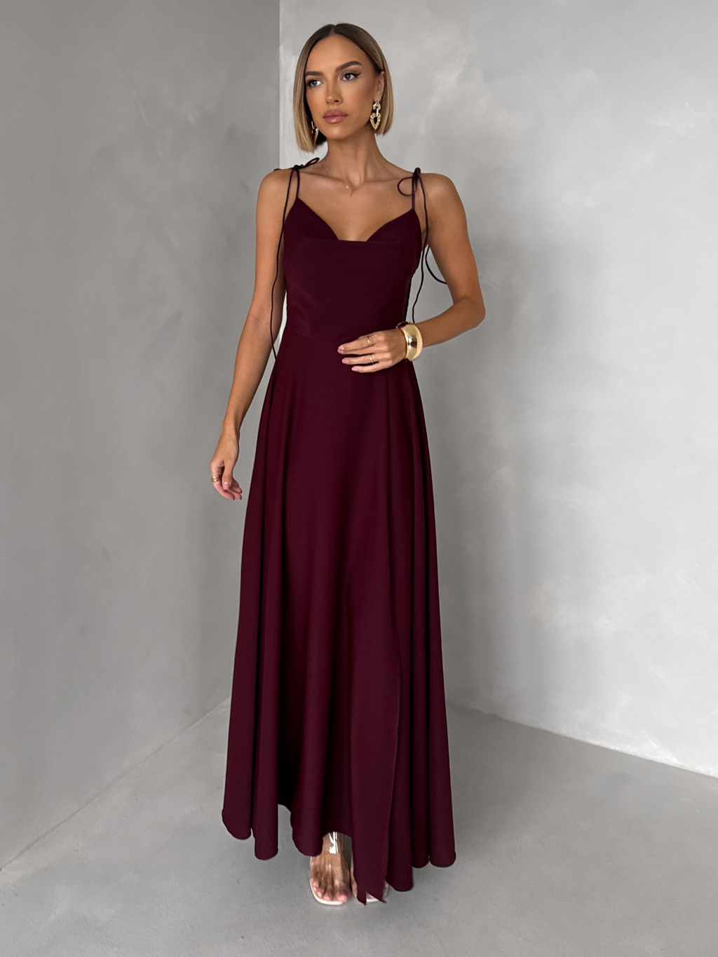 Bordó společenské dlouhé šaty LERDISEL na ramínka