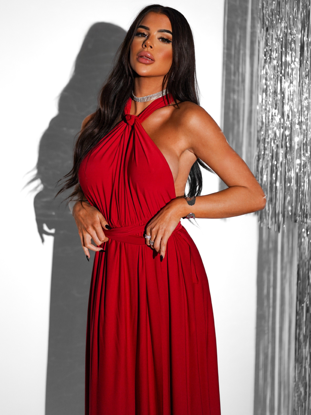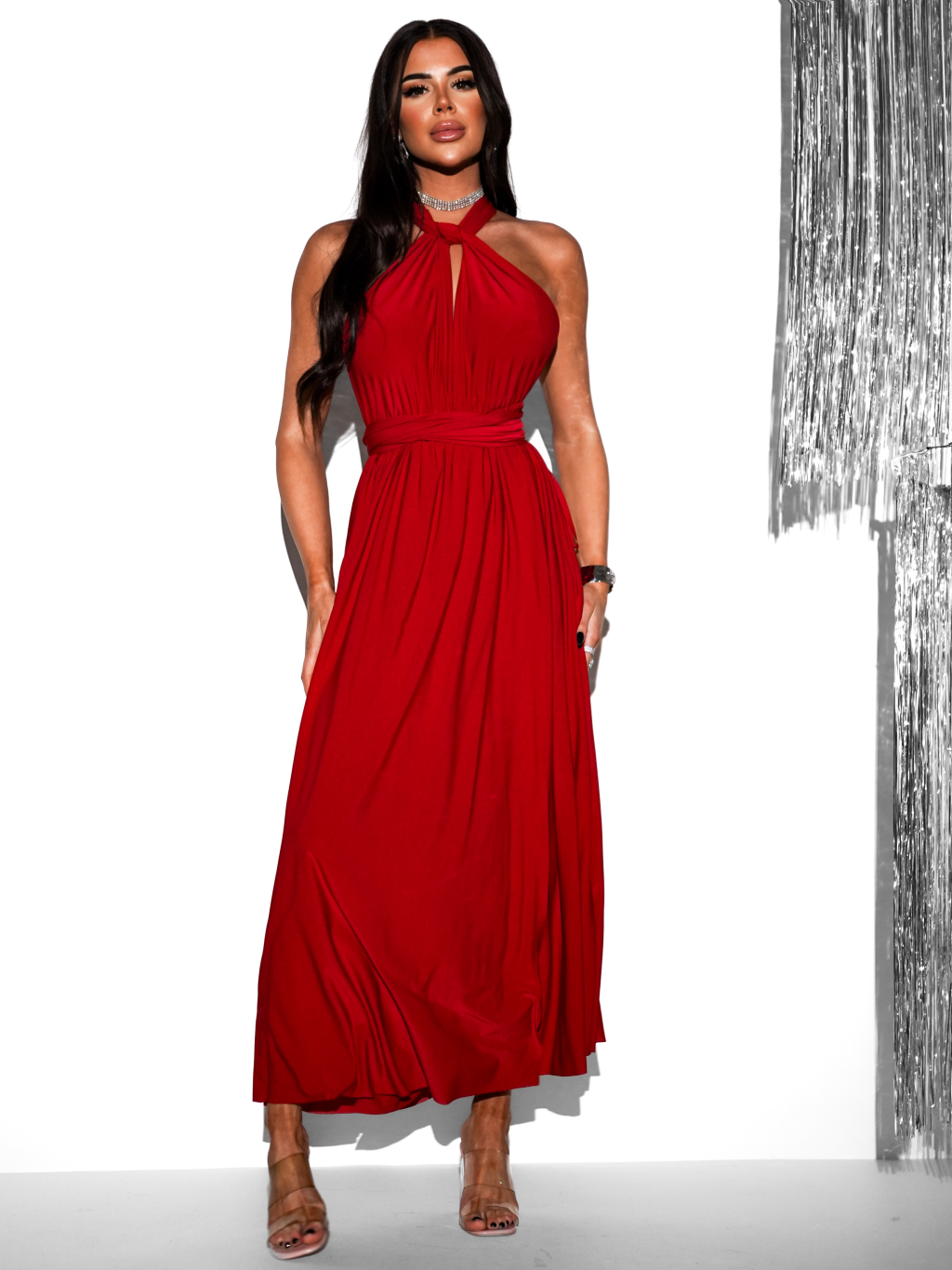 Bordó vázací variabilní šaty KATIE s rozparkem