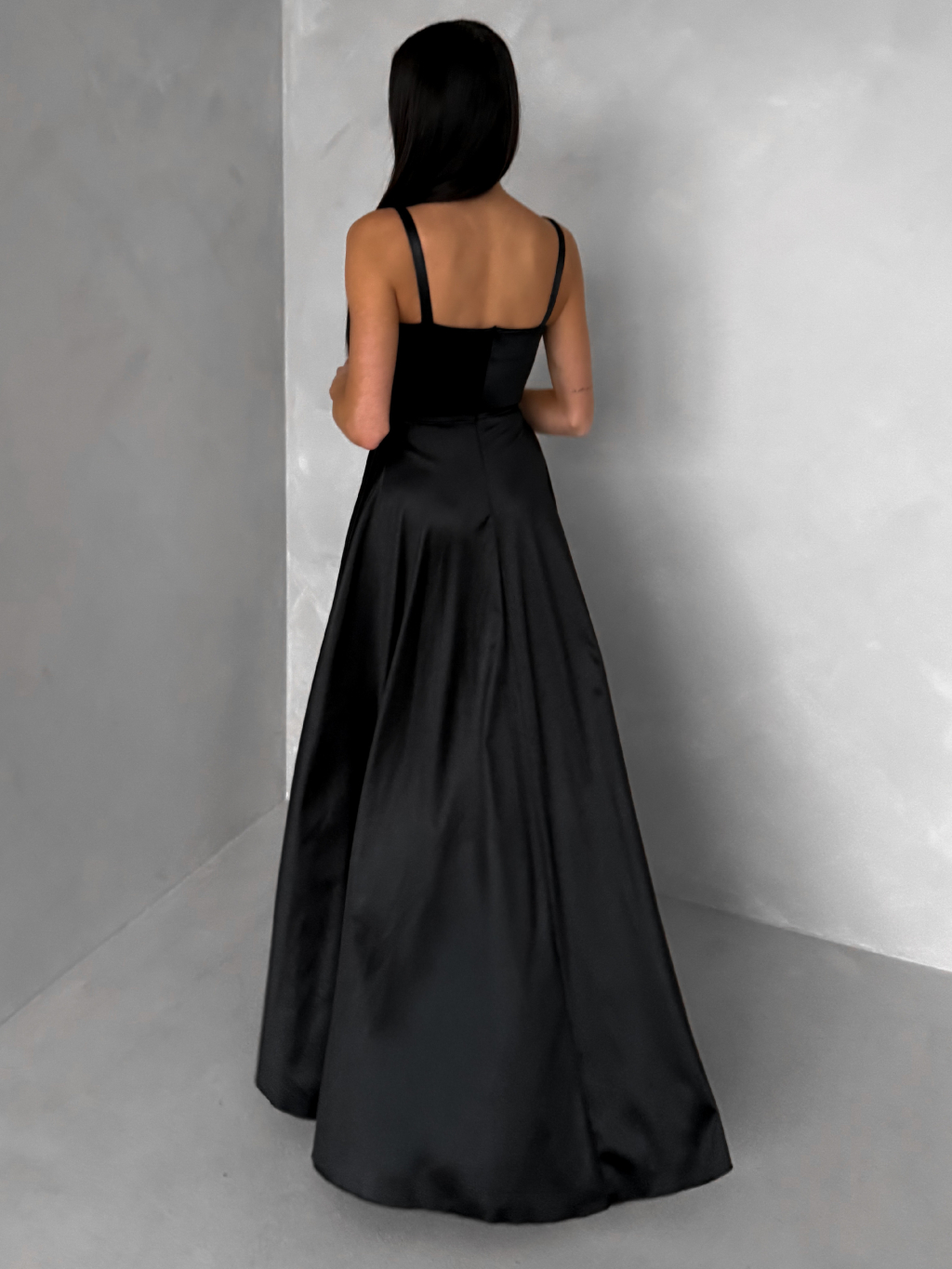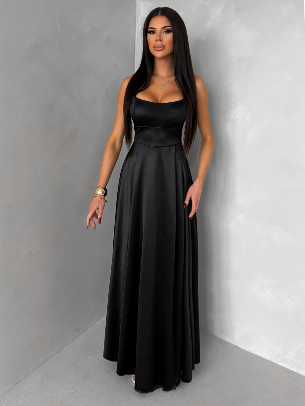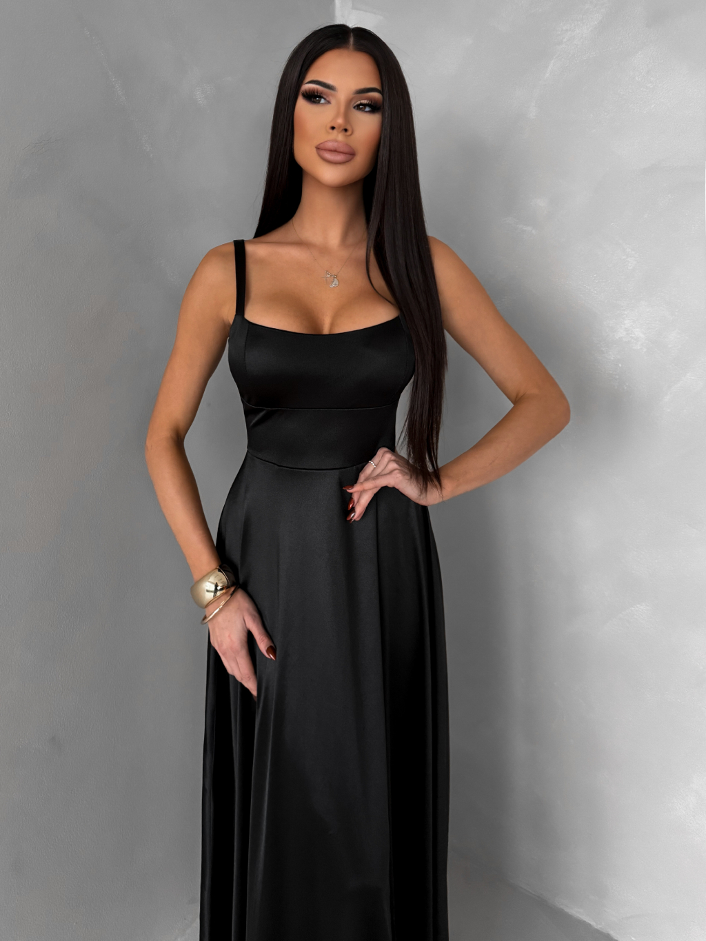 Černé dlouhé saténové společenské šaty HELSIN na ramínka