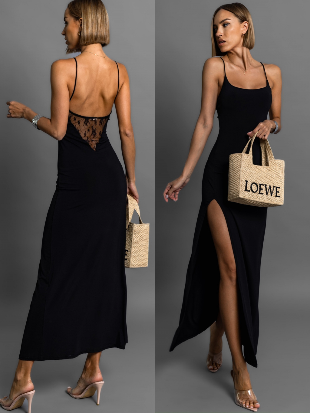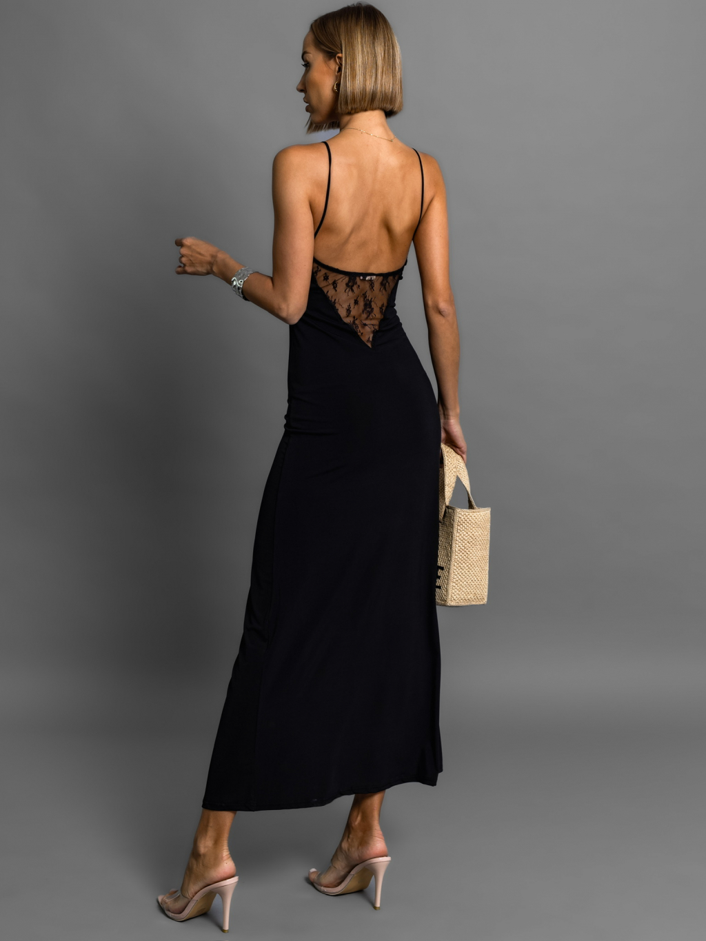 Černé dlouhé šaty TORBORG s krajkou na zádech
