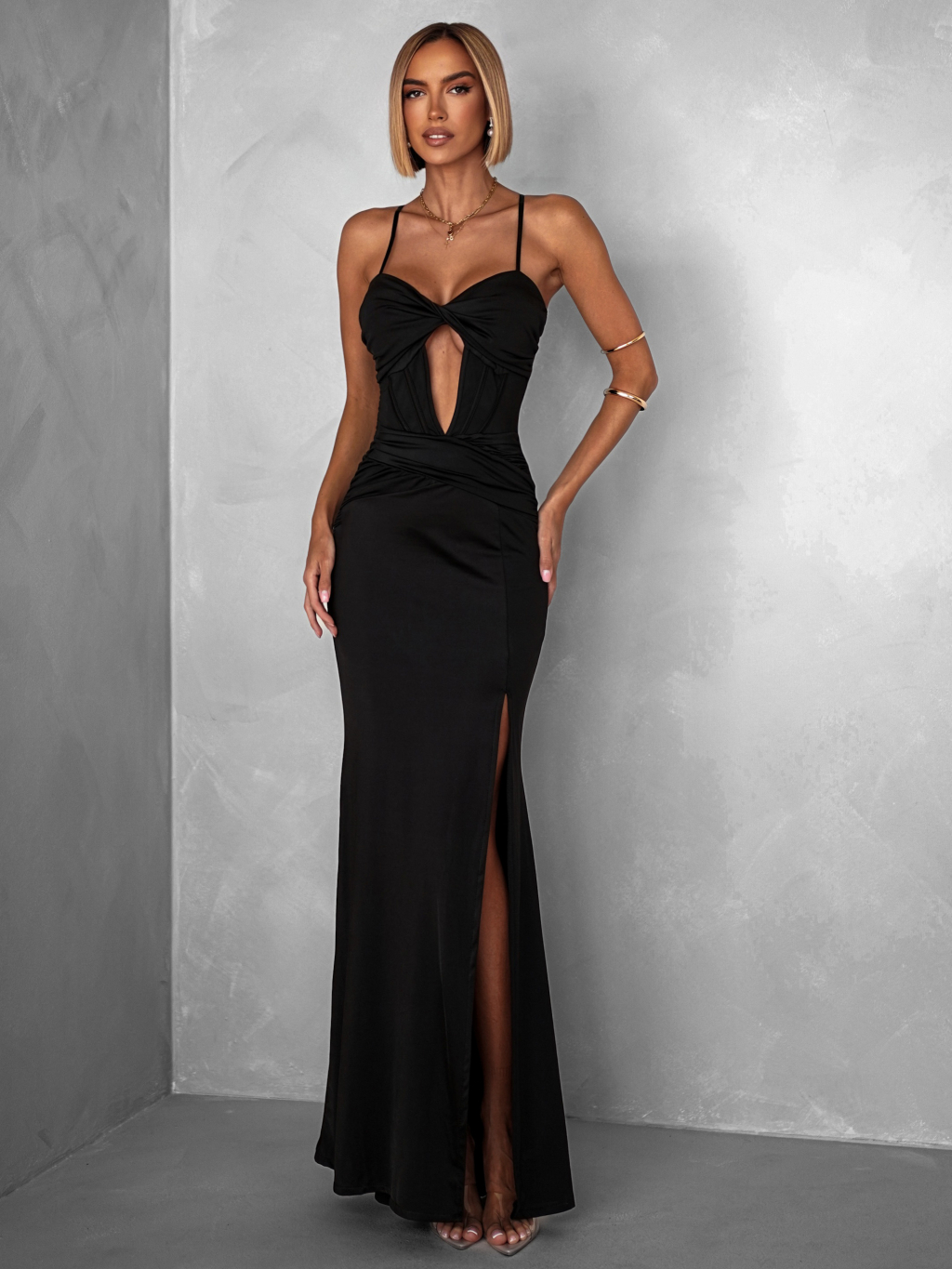 Černé dlouhé společenské šaty LIMONA s průstřihy