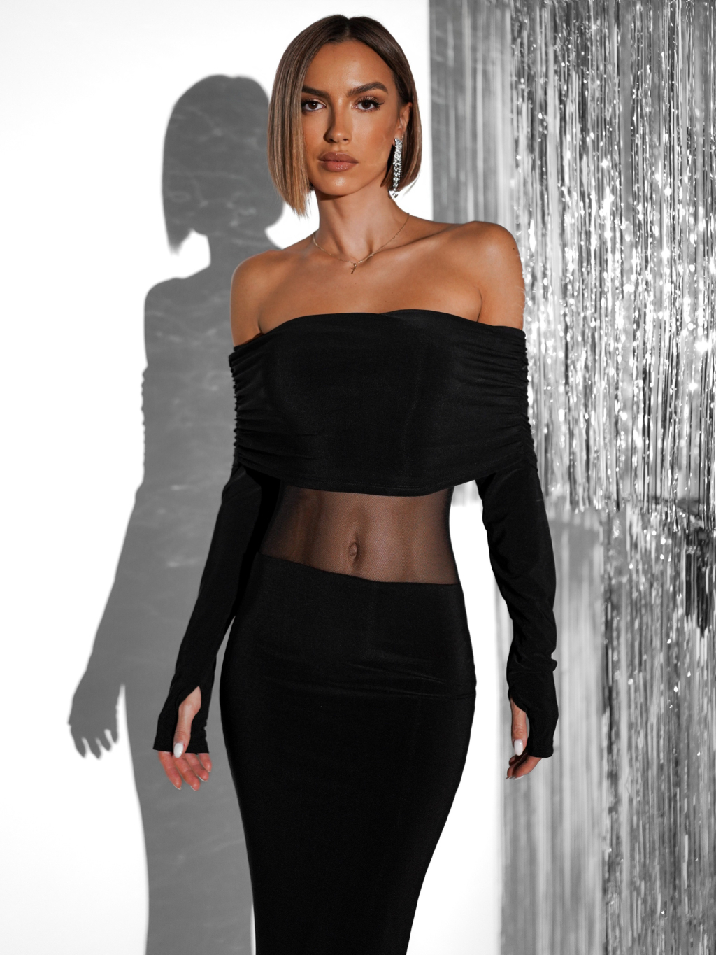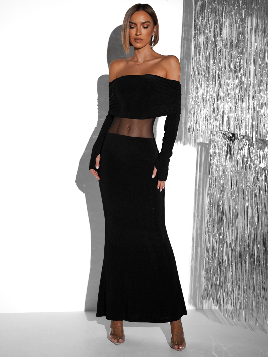 Černé elegantní dlouhé večerní šaty AMBERY
