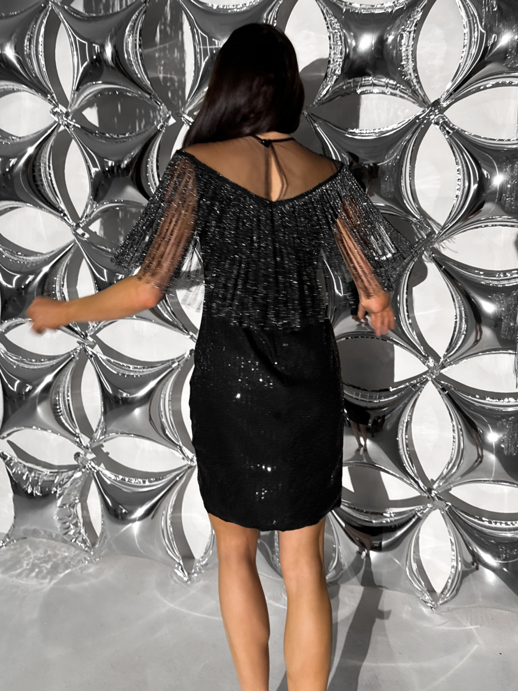 Černé elegantní flitrované šaty QUENIDA s třásněmi