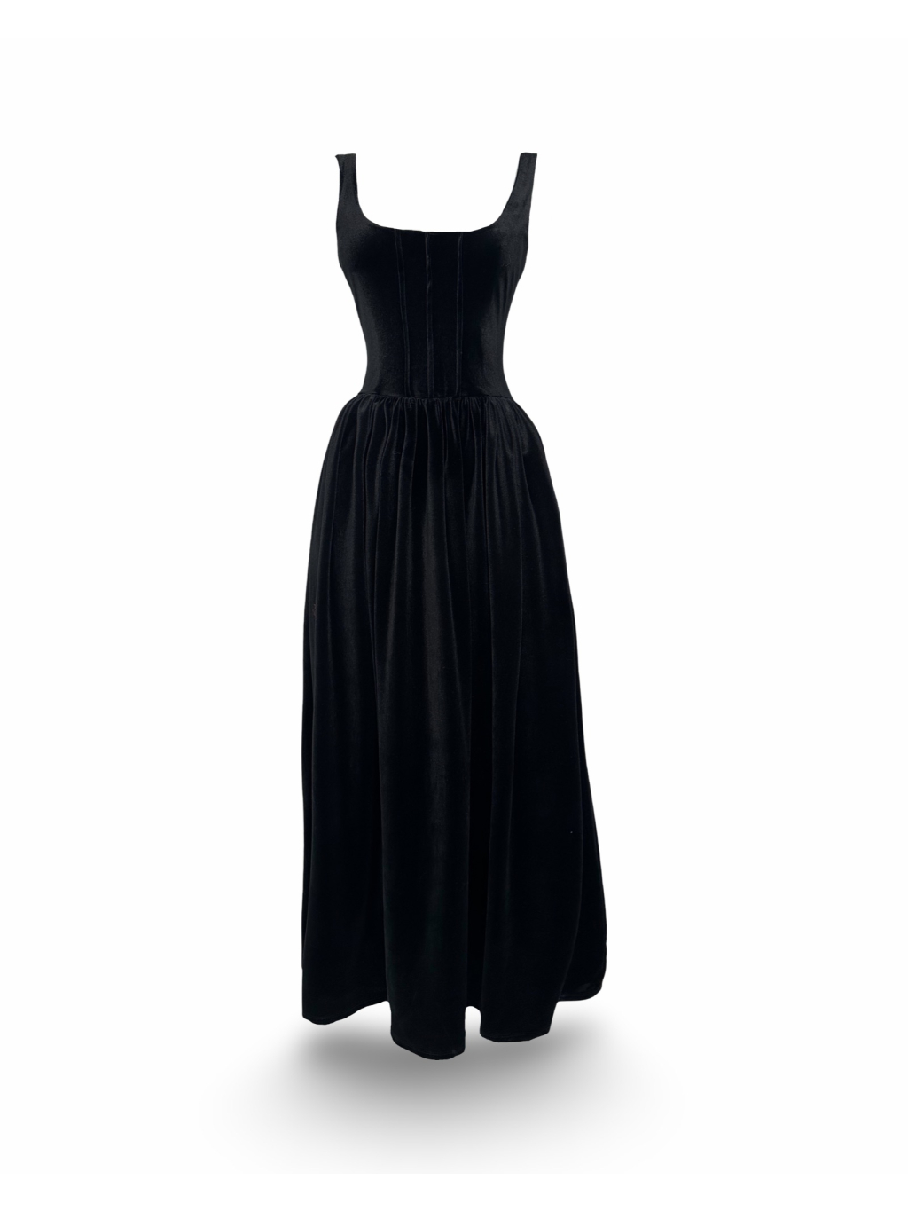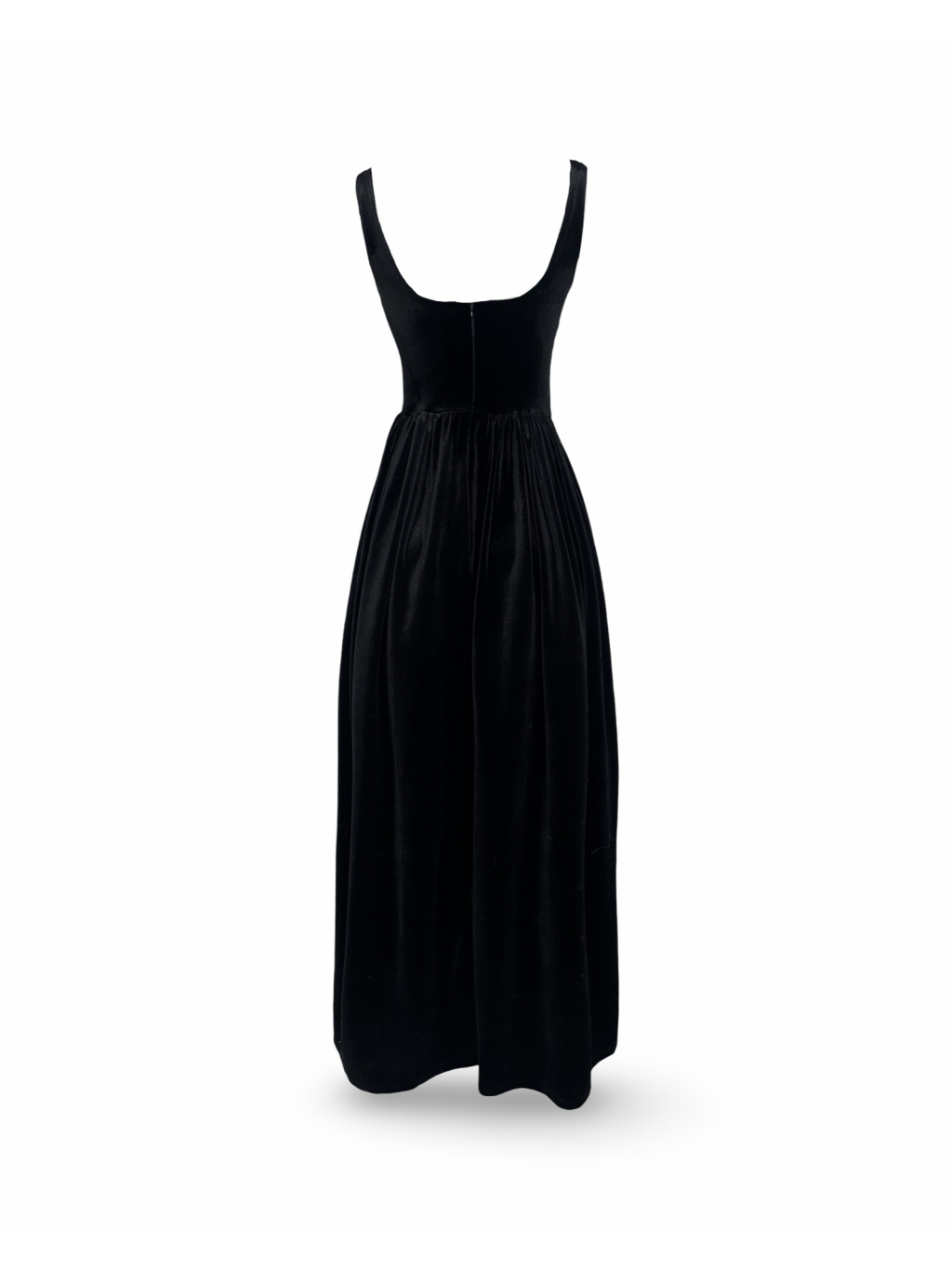 Černé elegantní sametové dlouhé šaty GAZMA s výstřihem