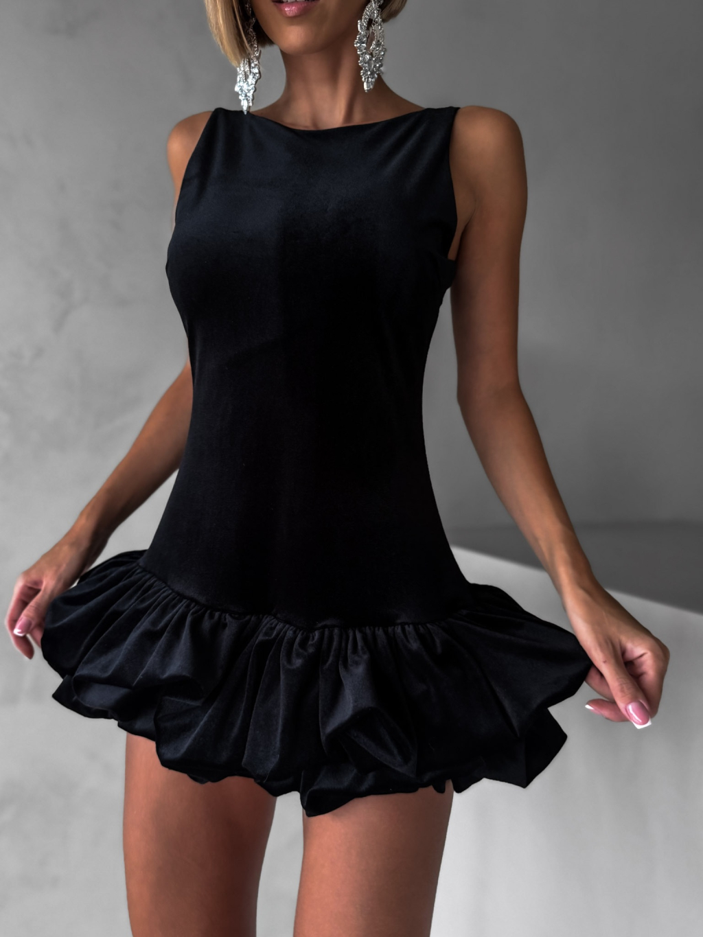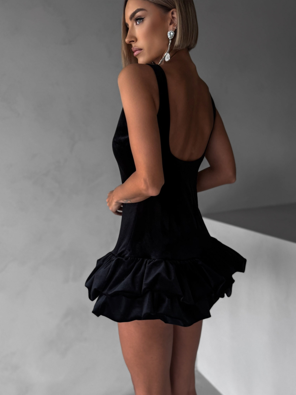 Černé sametové krátké šaty FRANCHO s všitými kraťásky