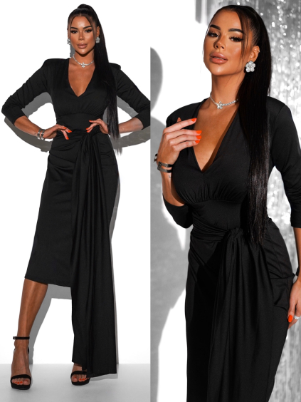 Černé saténové dlouhé šaty SYCHAEUS bez ramínek
