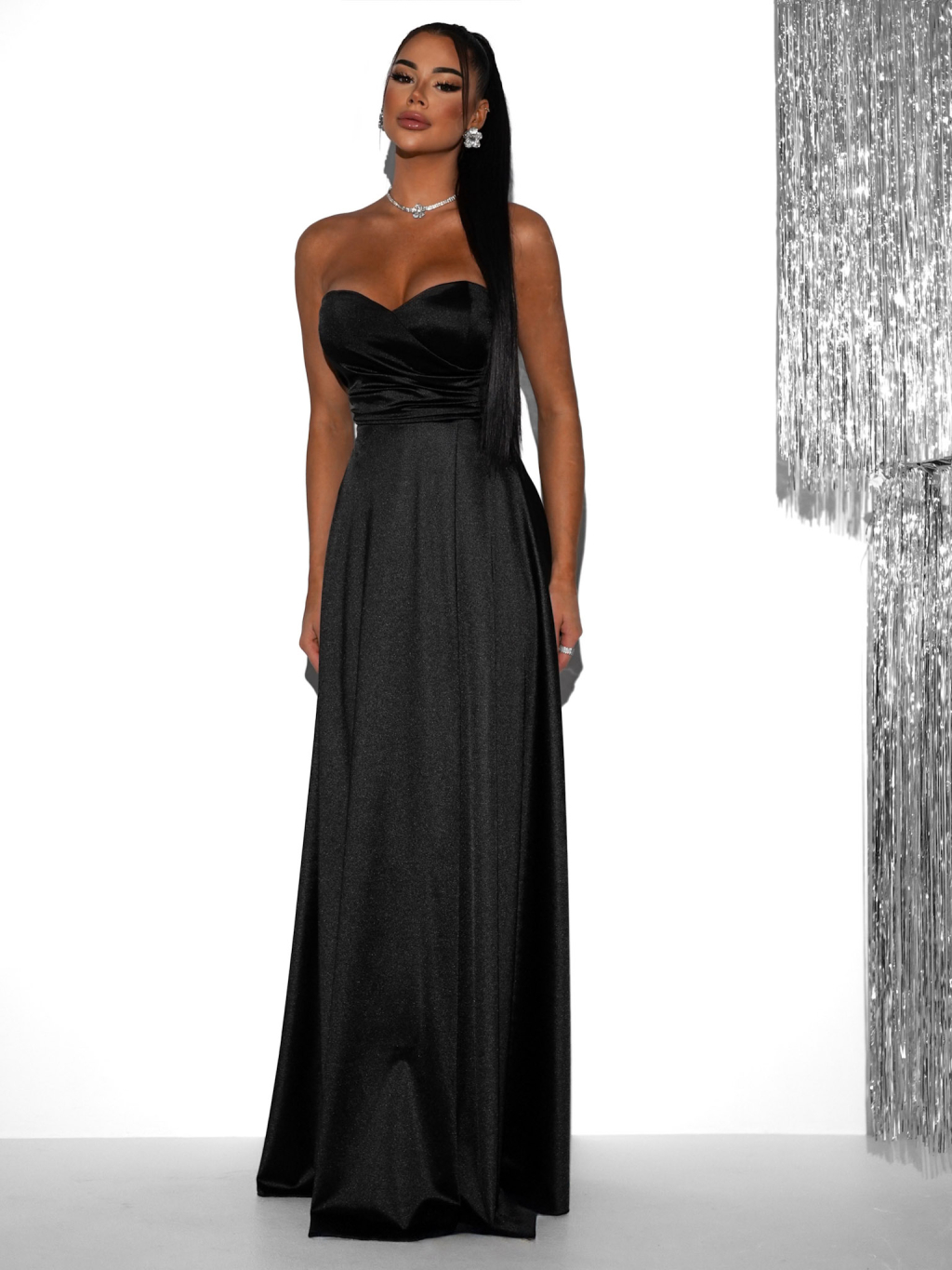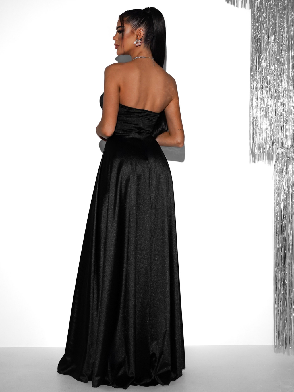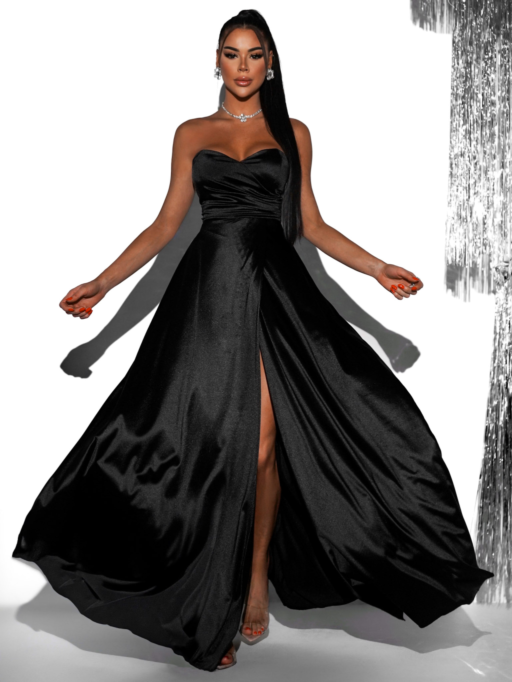 Černé saténové dlouhé šaty SYCHAEUS bez ramínek