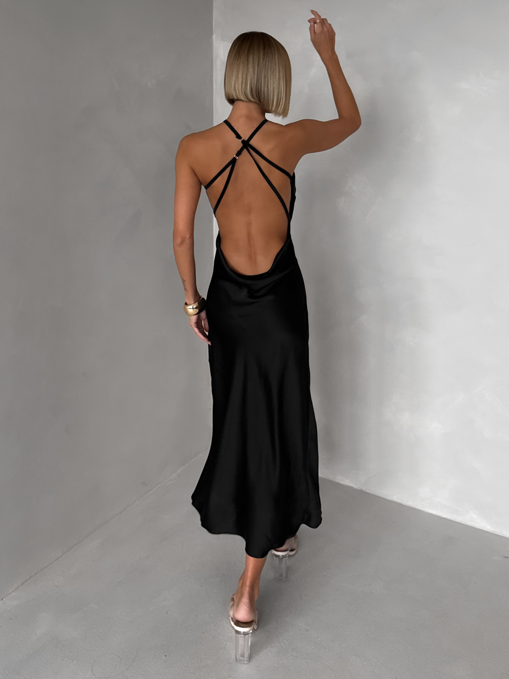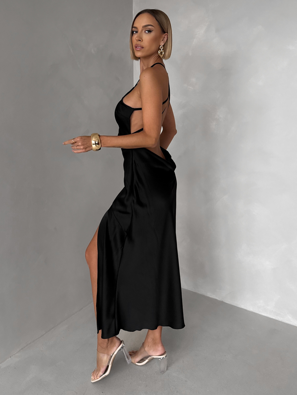 | Střih: | Odhalená záda, Pohodlné, Přiléhavé, S rozparkem, Sexy, Vypasované |