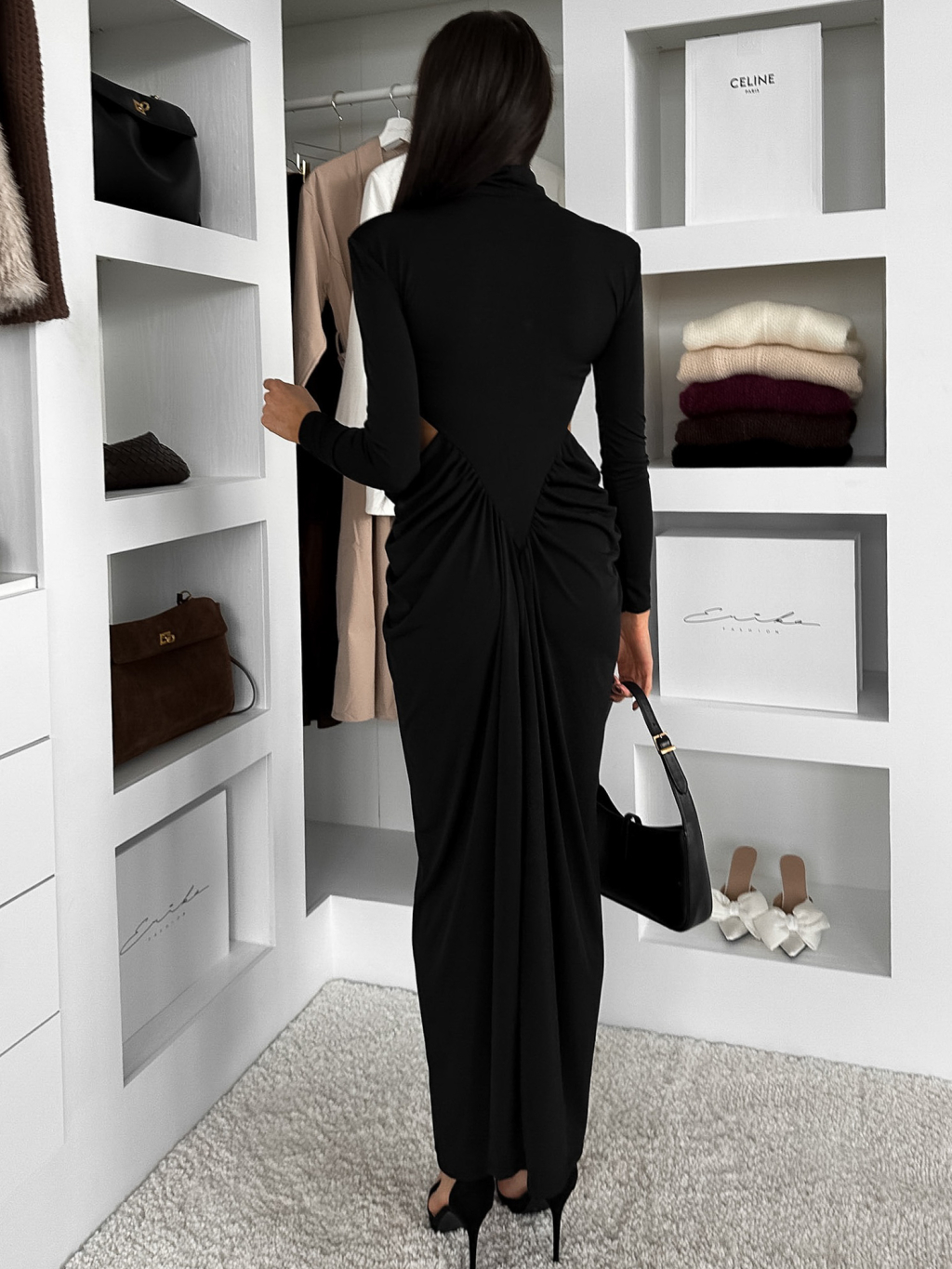 Černé společenské dlouhé šaty ESTAVION s průstřihy