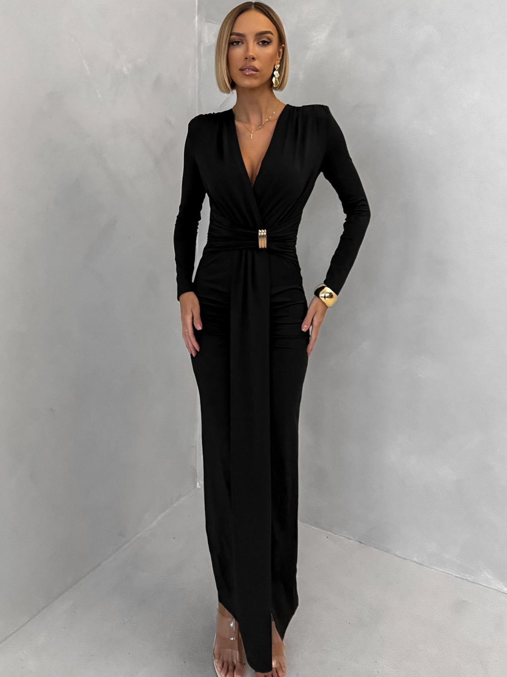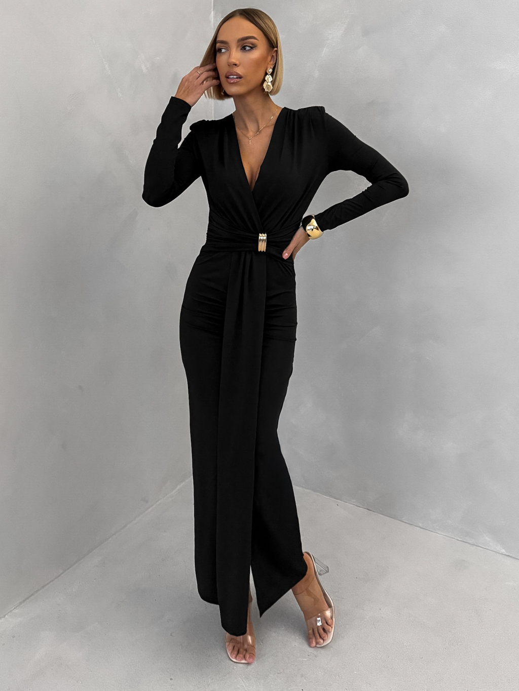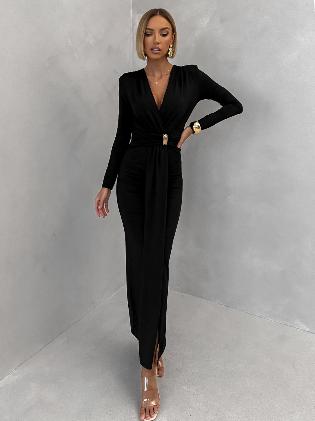 Černé společenské dlouhé šaty FAYLORI s výstřihem